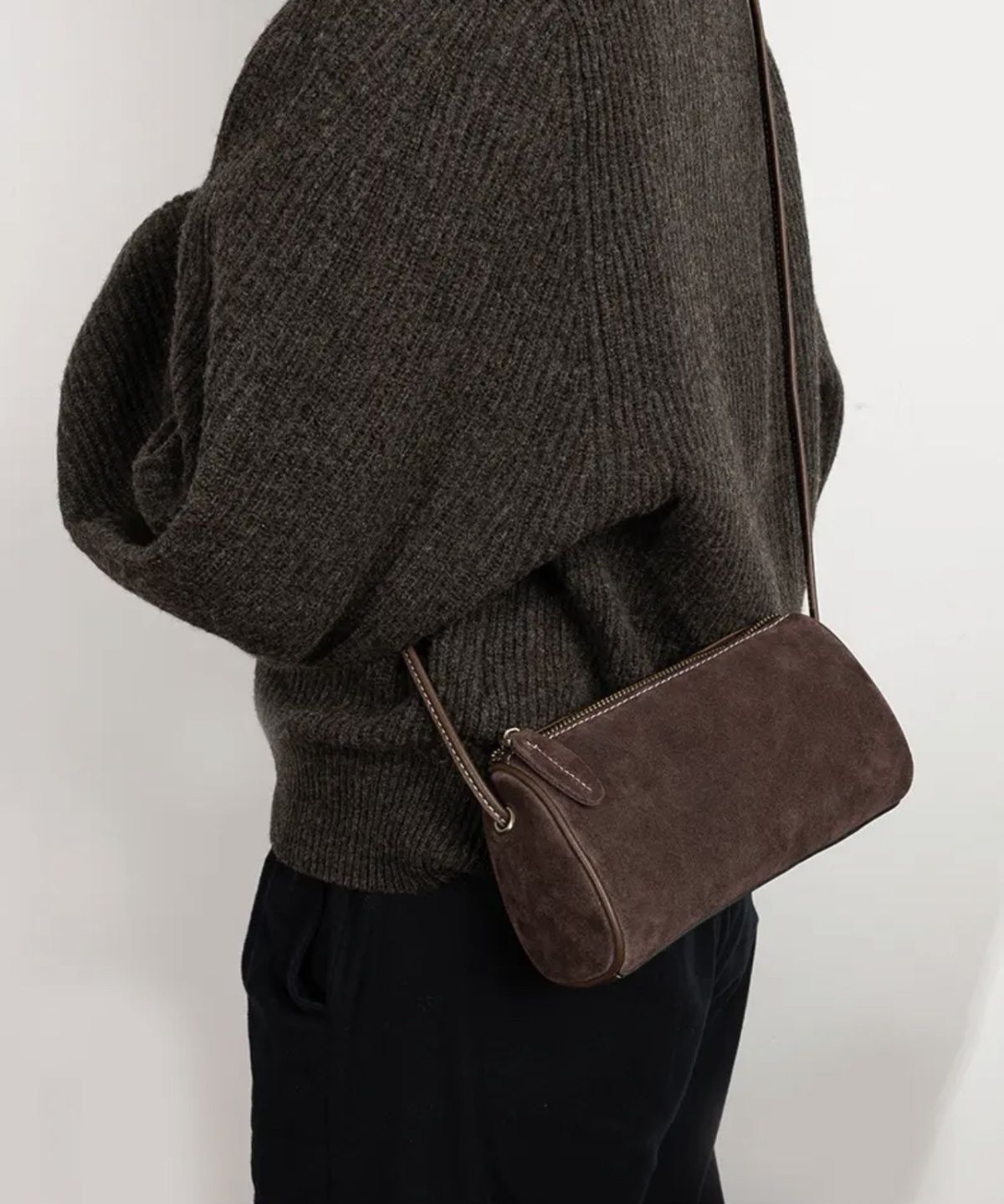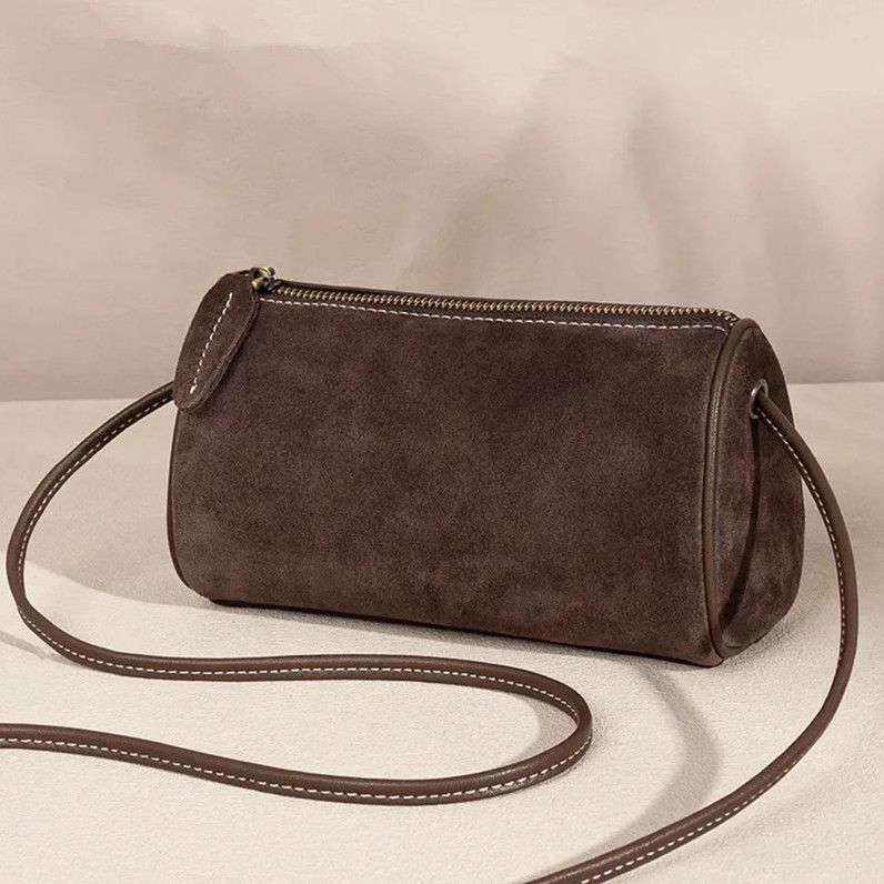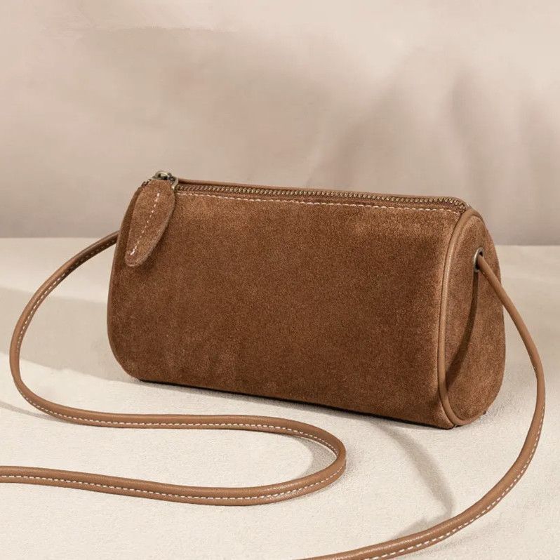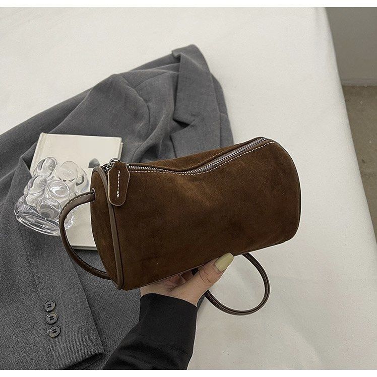 2025 New High-End Texture Satchel Shoulder Frosted Crossbody Bag Niche Retro Cylindrical Travel Casual Women's Bag