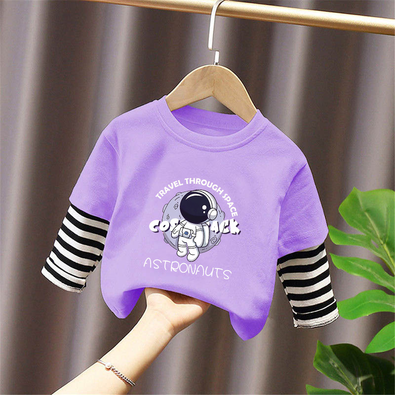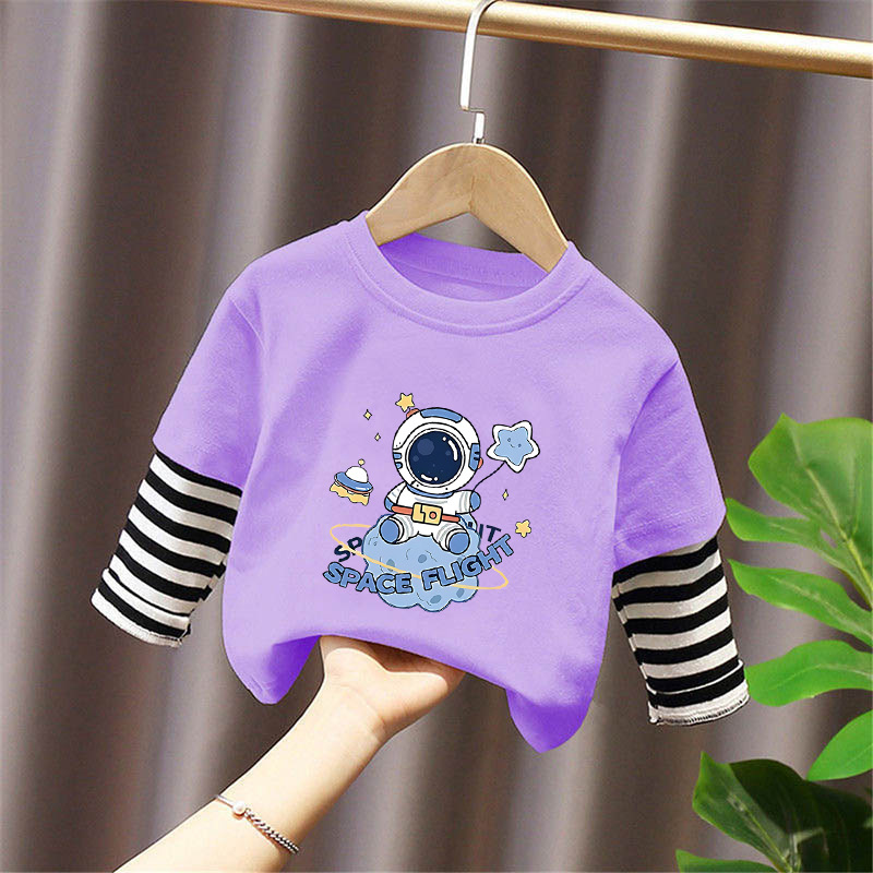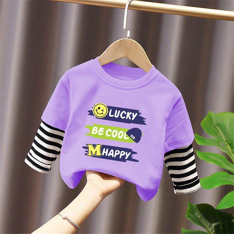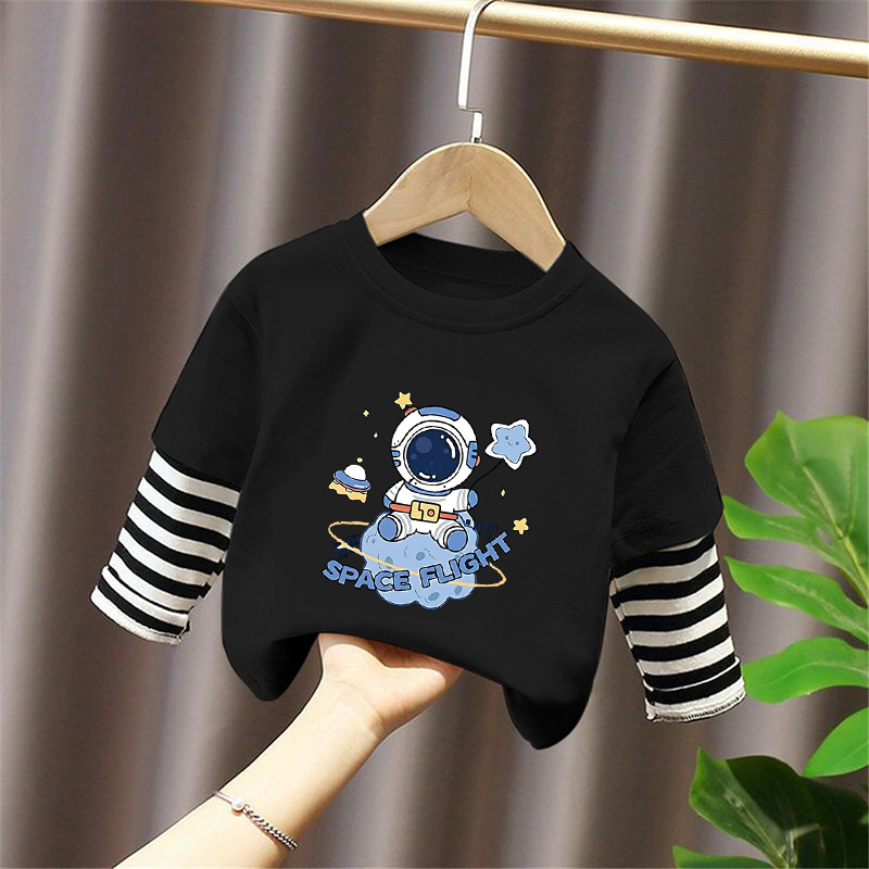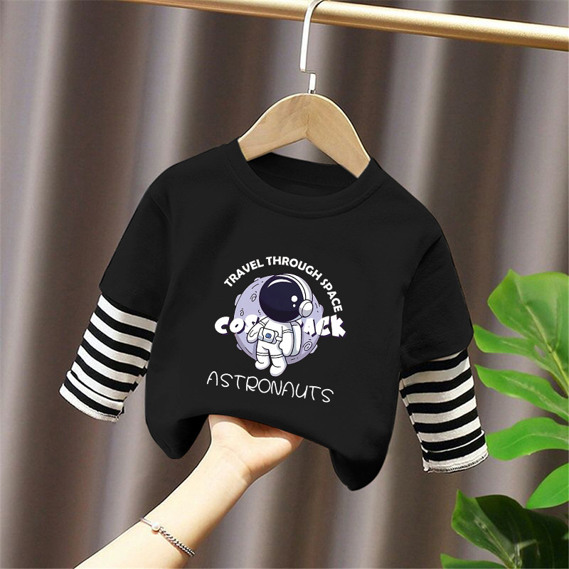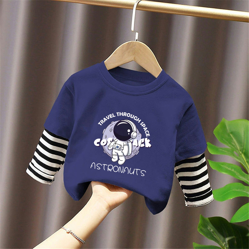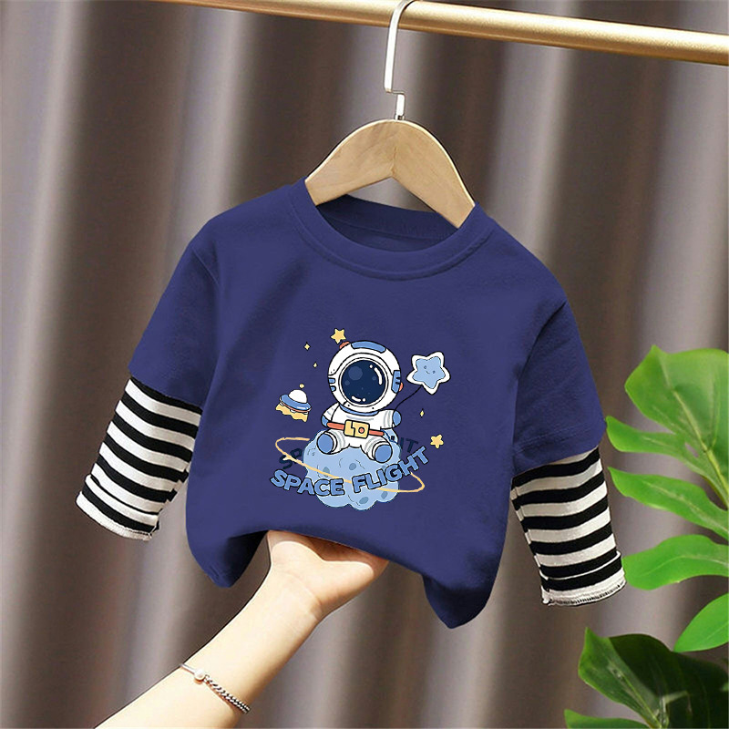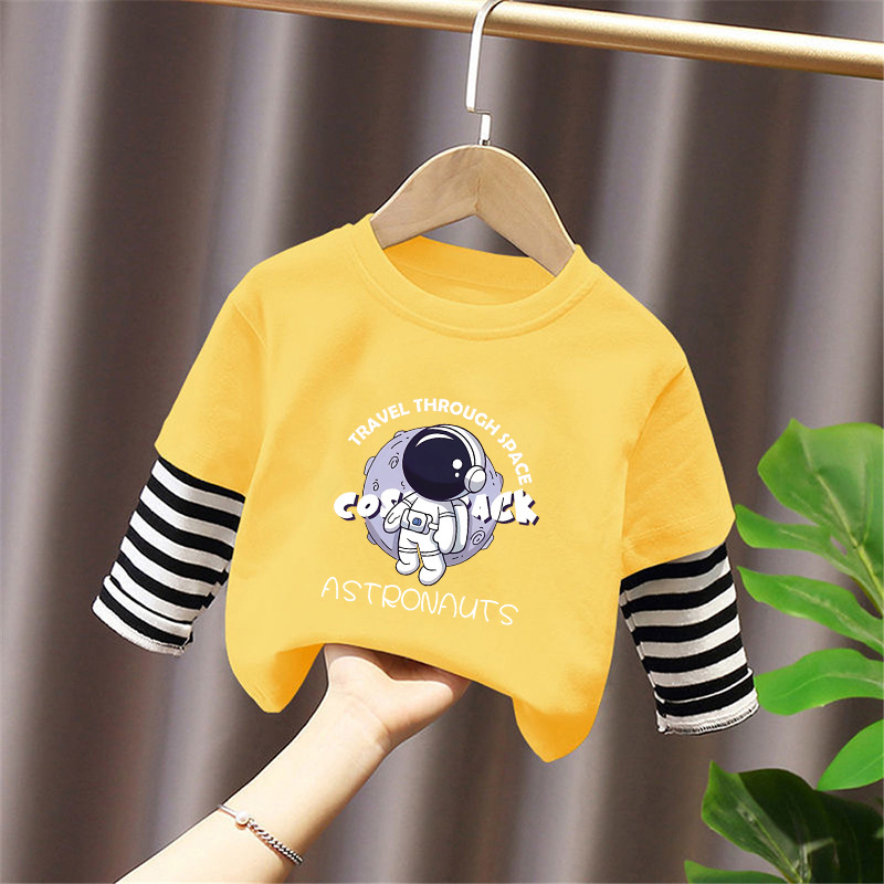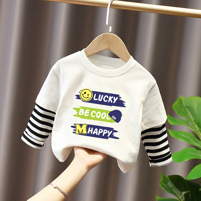 100% Cotton Boys' Fake Two-Piece Long-Sleeved T-Shirt Spring and Autum New Style Kidsren's Baby Fashionable Versatile Casual Tops