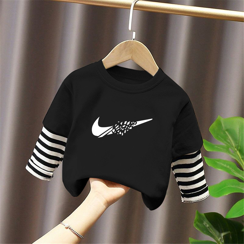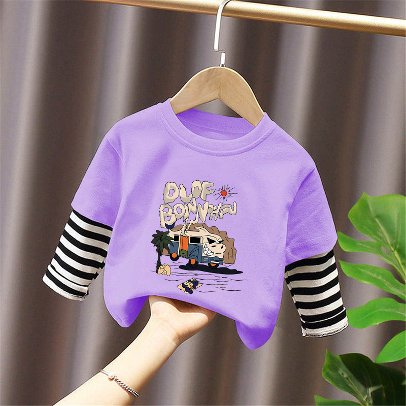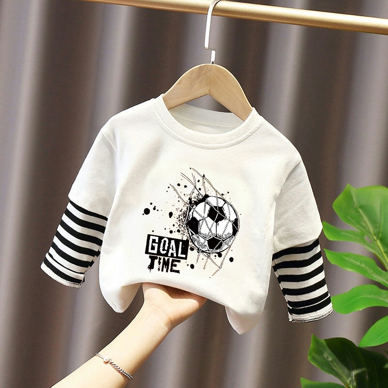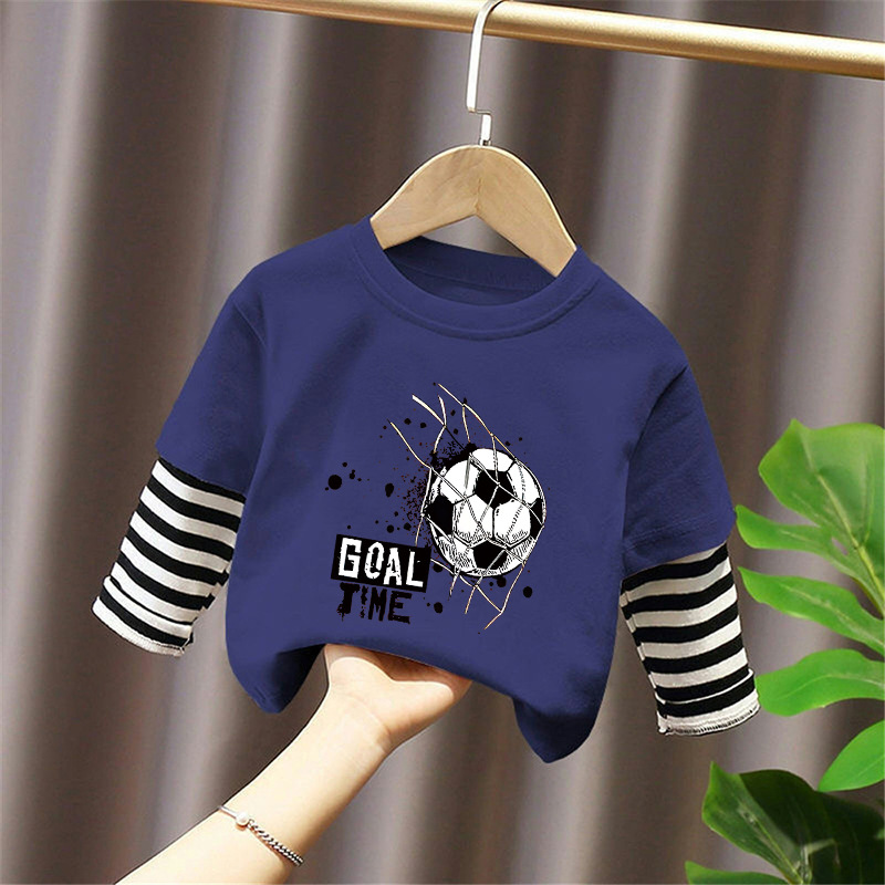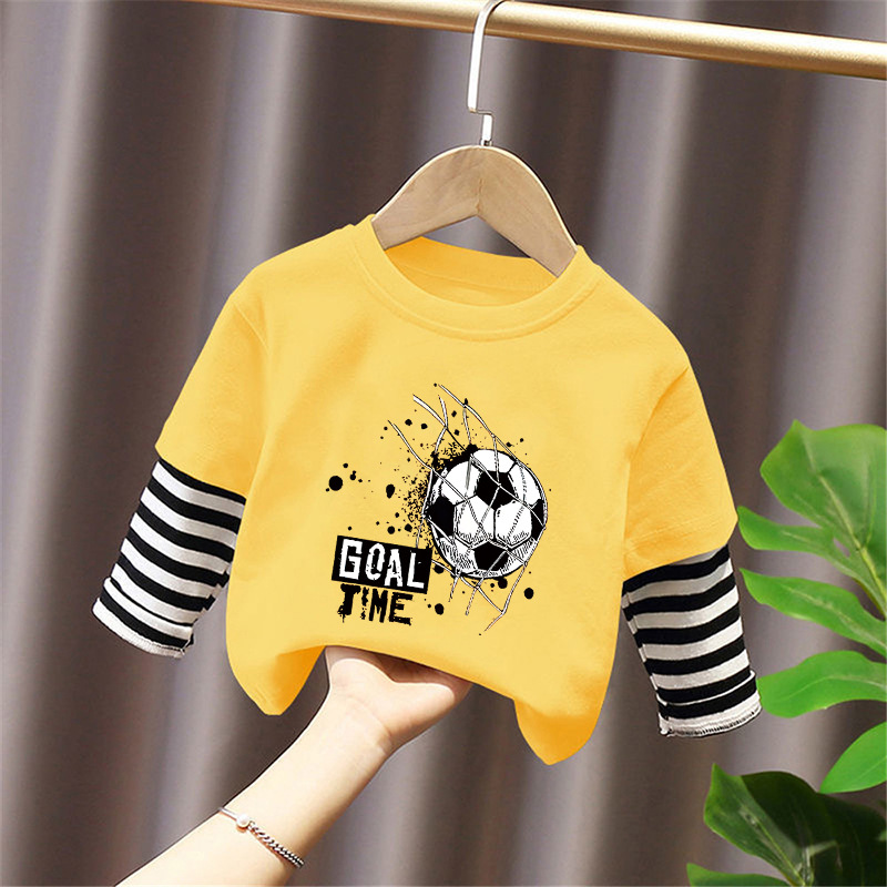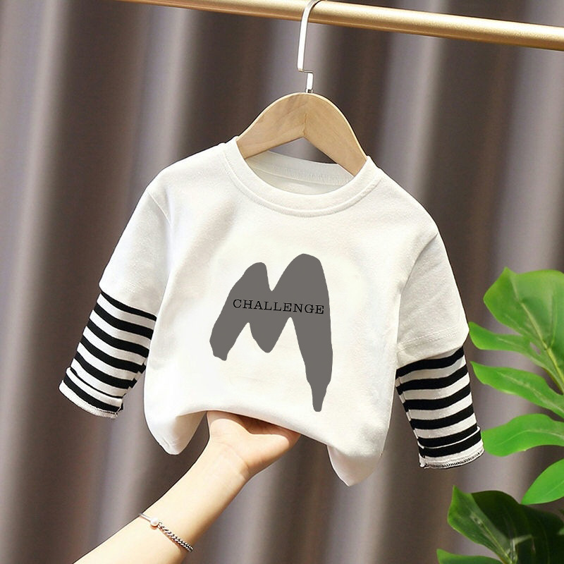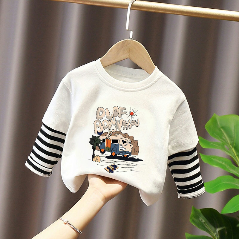 Boys' Long-Sleeve T-Shirt Children's Base Shirt Autumn Toddler Pure Cotton Autumn Outfit Baby Spring and Autumn Thin Style Boys' Faux Two-Piece T-Shirt