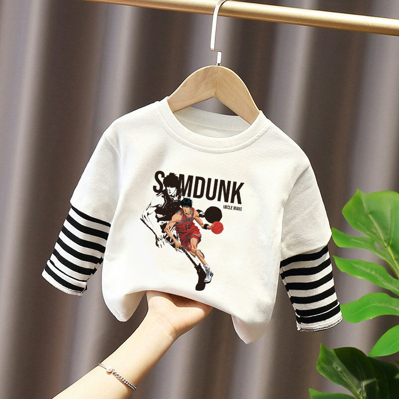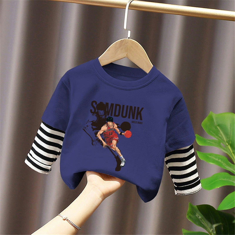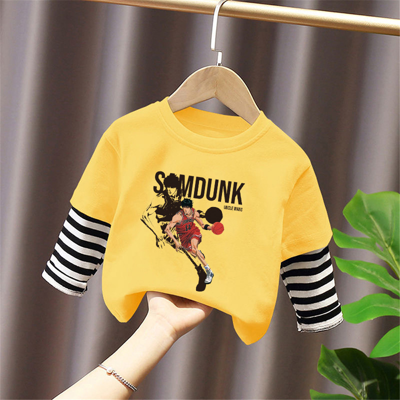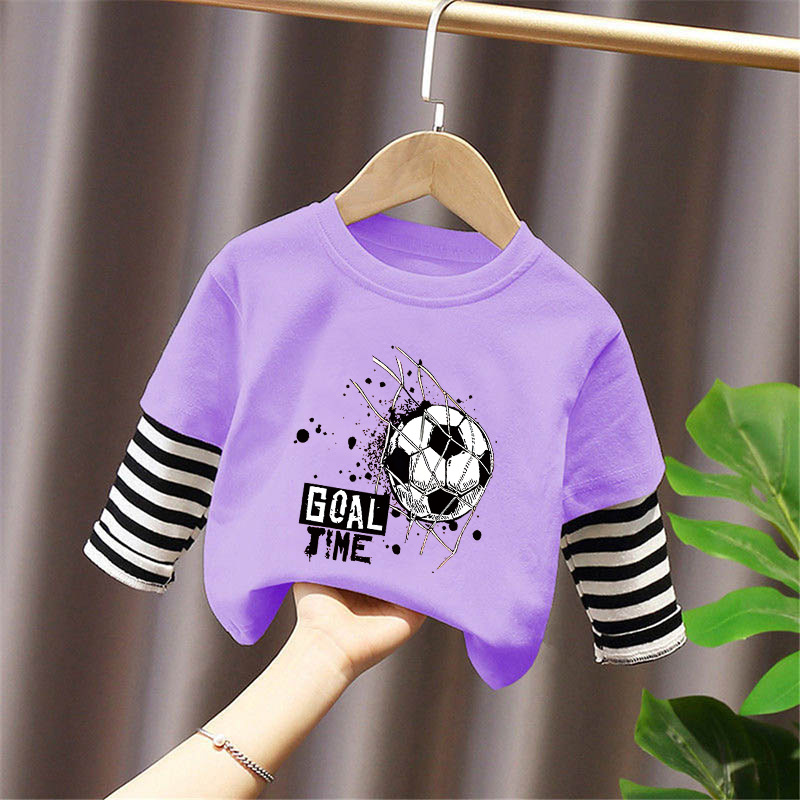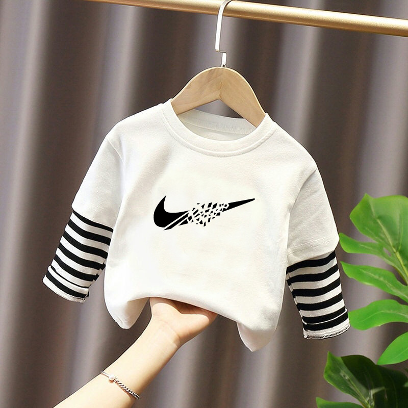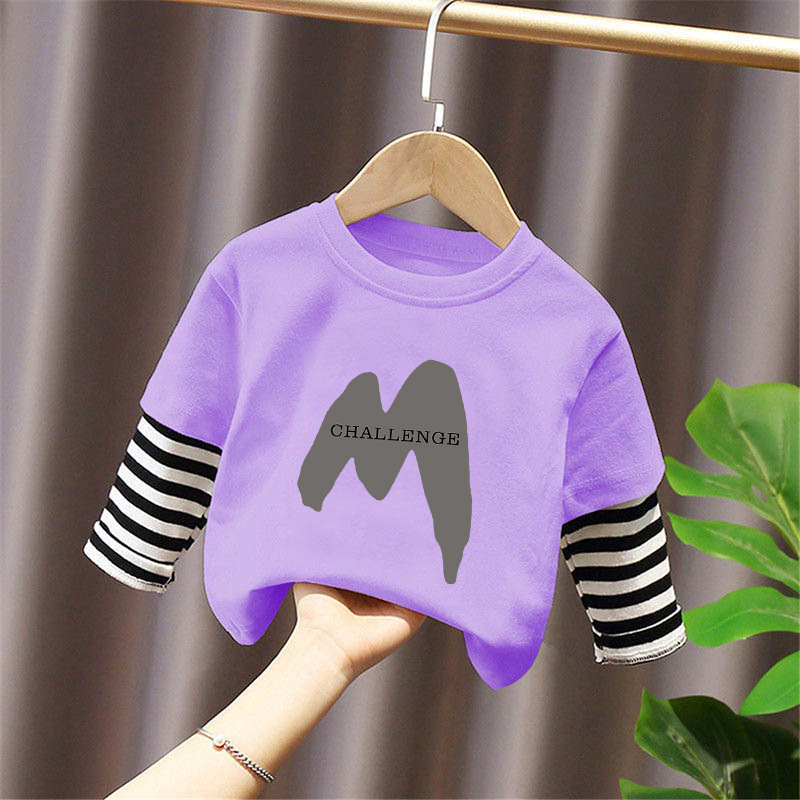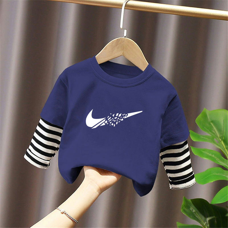 Boys' Long-Sleeve T-Shirt Children's Base Shirt Autumn Toddler Pure Cotton Autumn Outfit Baby Spring and Autumn Thin Style Boys' Faux Two-Piece T-Shirt