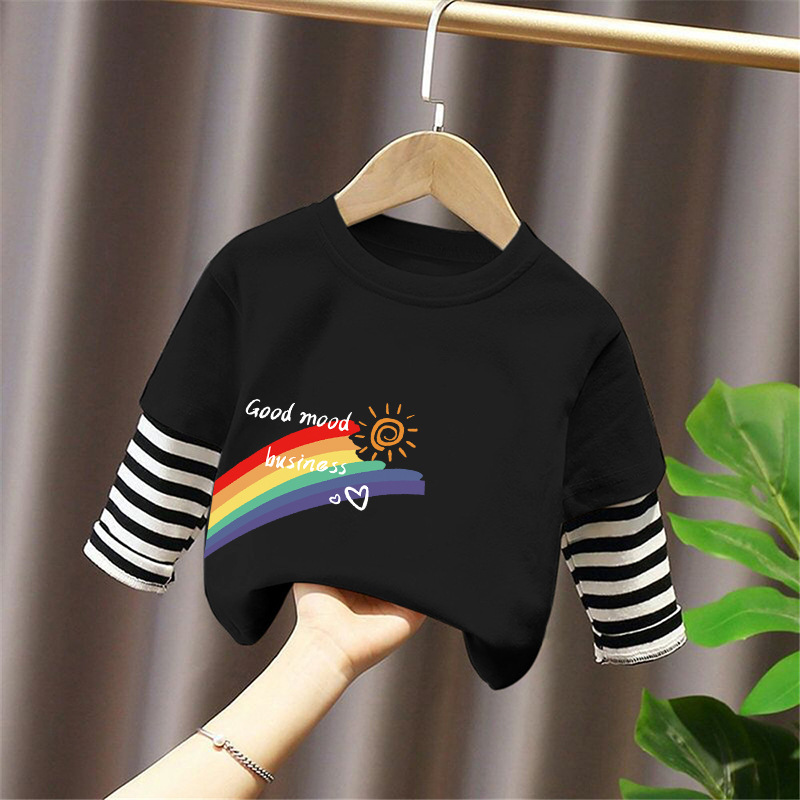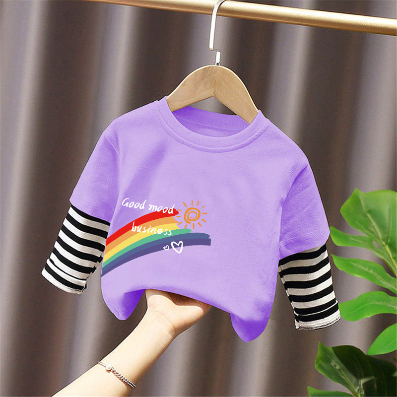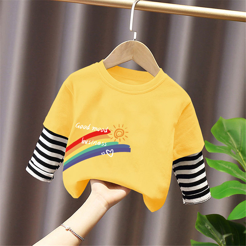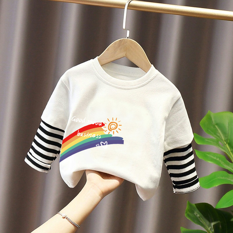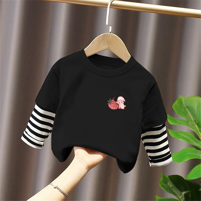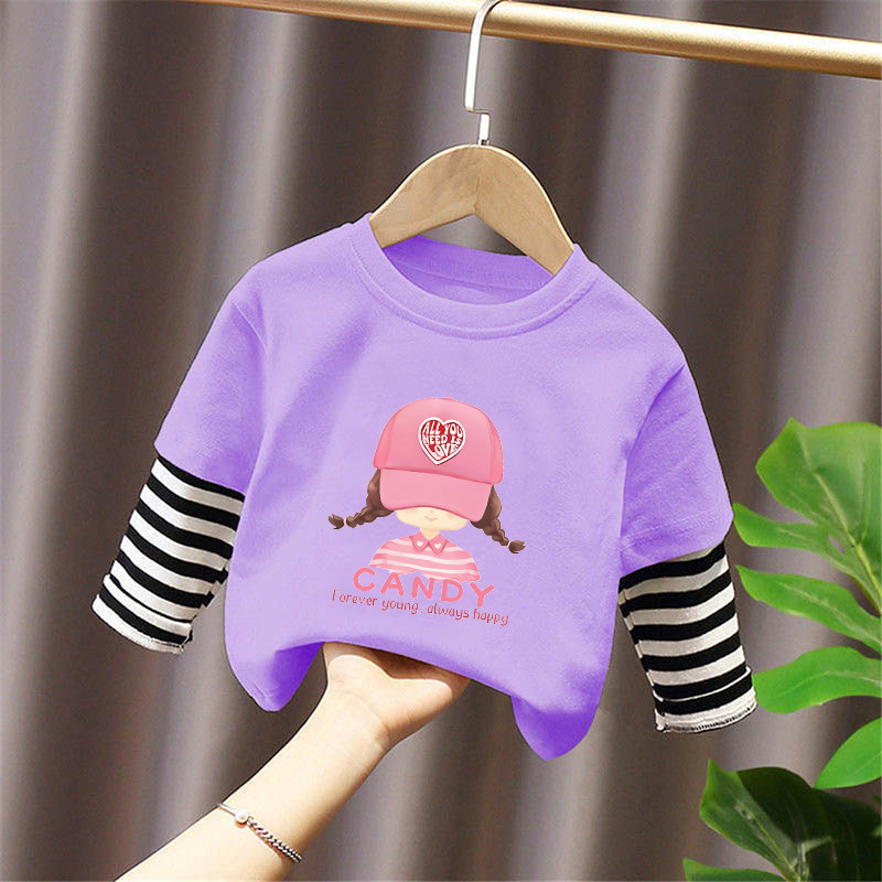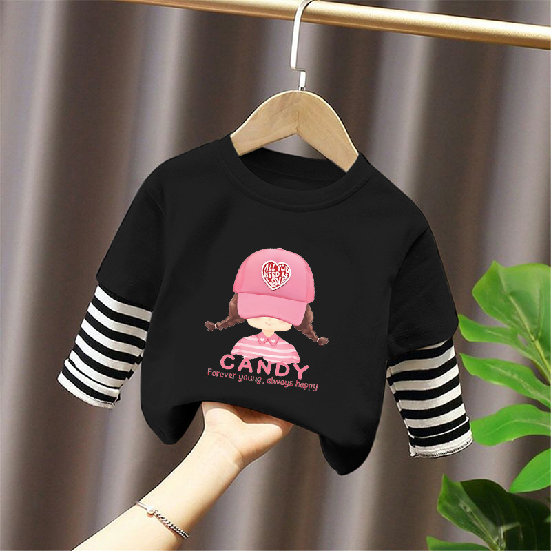 Girls' Pure Cotton Long-Sleeve T-Shirt, Faux Two-Piece Top, Stylish Children's Base Shirt, Medium and Large Children's Wear, 2025 Spring and Autumn New Model
