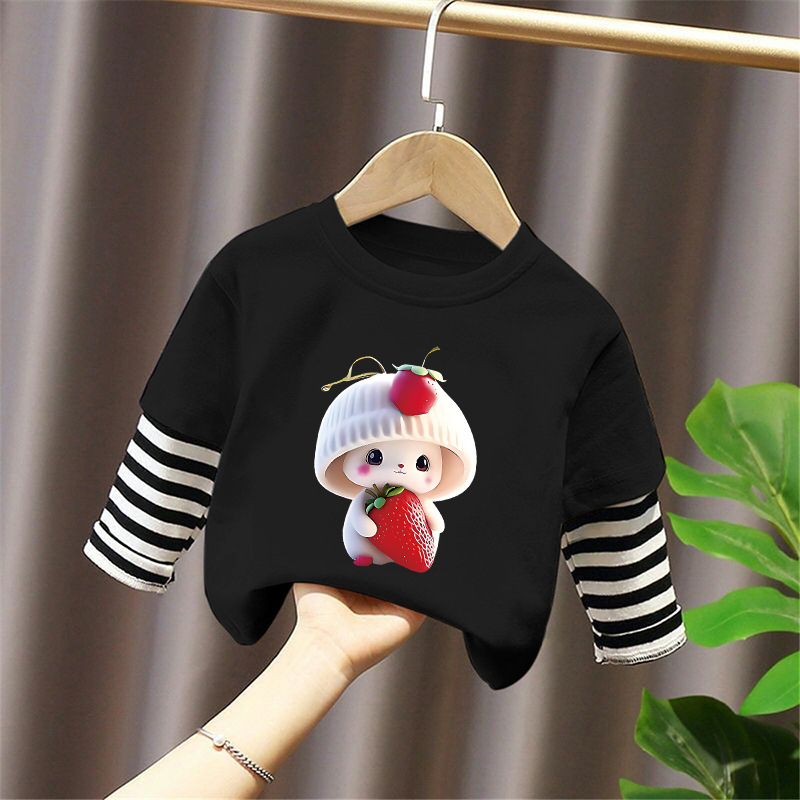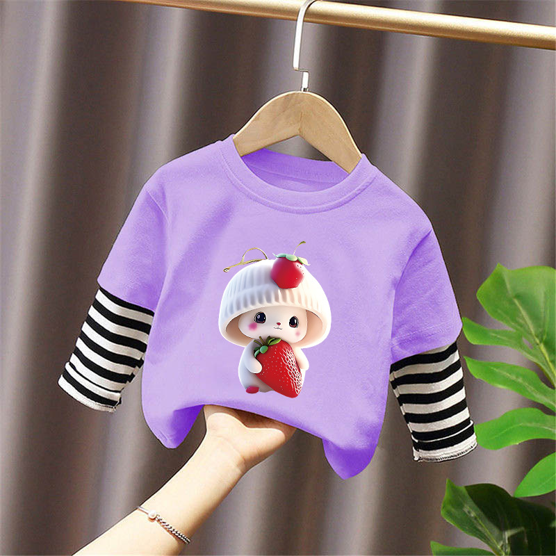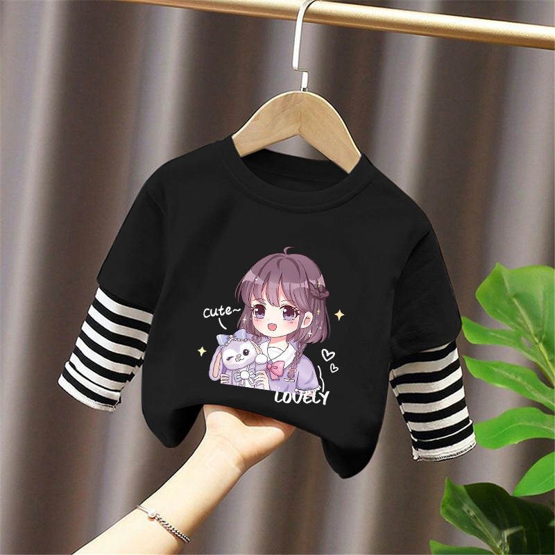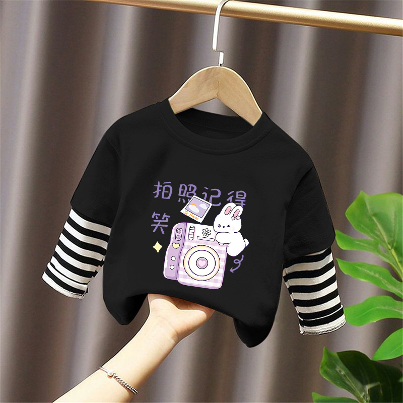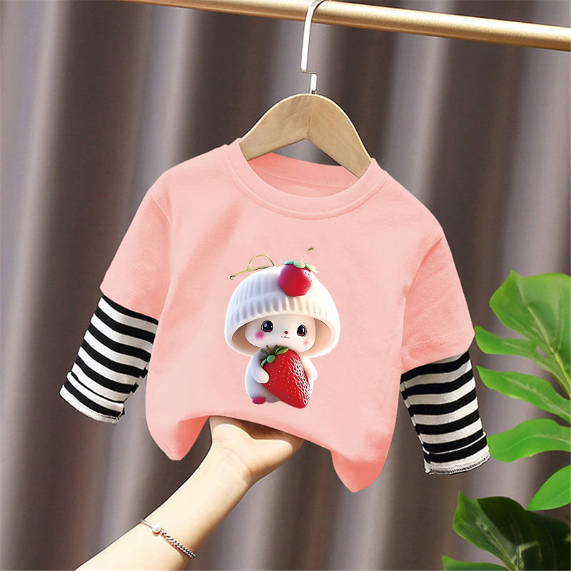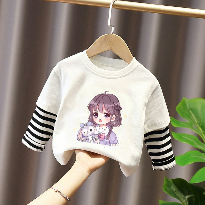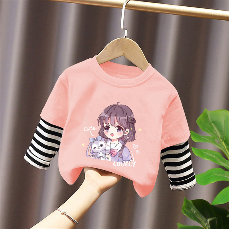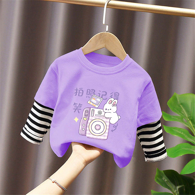 Girls' Base Layer Pure Cotton Autumn Outfit 2025 New Children's Faux Two-Piece Long-Sleeve T-Shirt for Spring and Autumn, Suitable for Older Children
