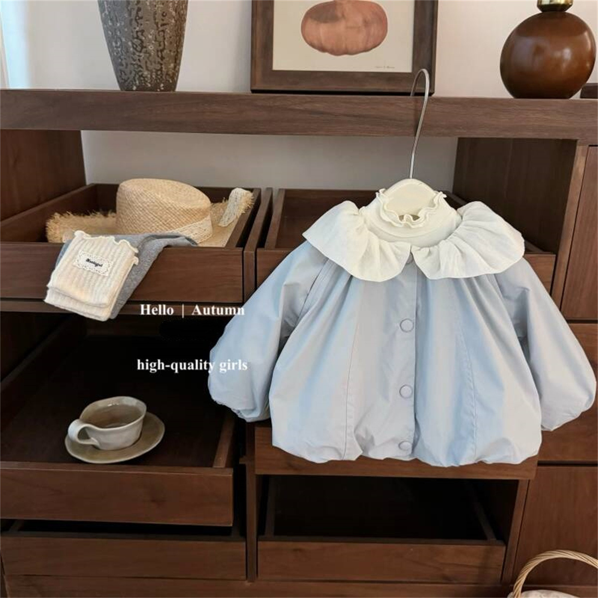 | Color | Blue coat | Color | Gray leggings |