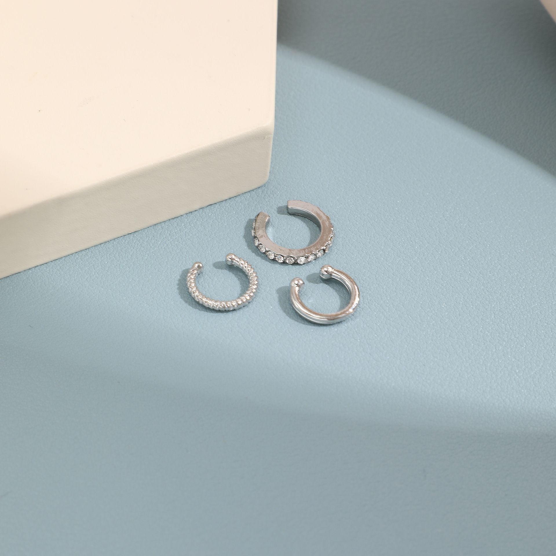 European and American Cross-Border Best-Selling Diamond-Encrusted C-Shaped Non-Pierced Ear Bone Clip for Women, Stylish and Elegant, Compact Ear Clip 3-Piece Set