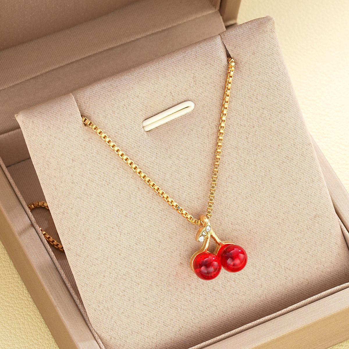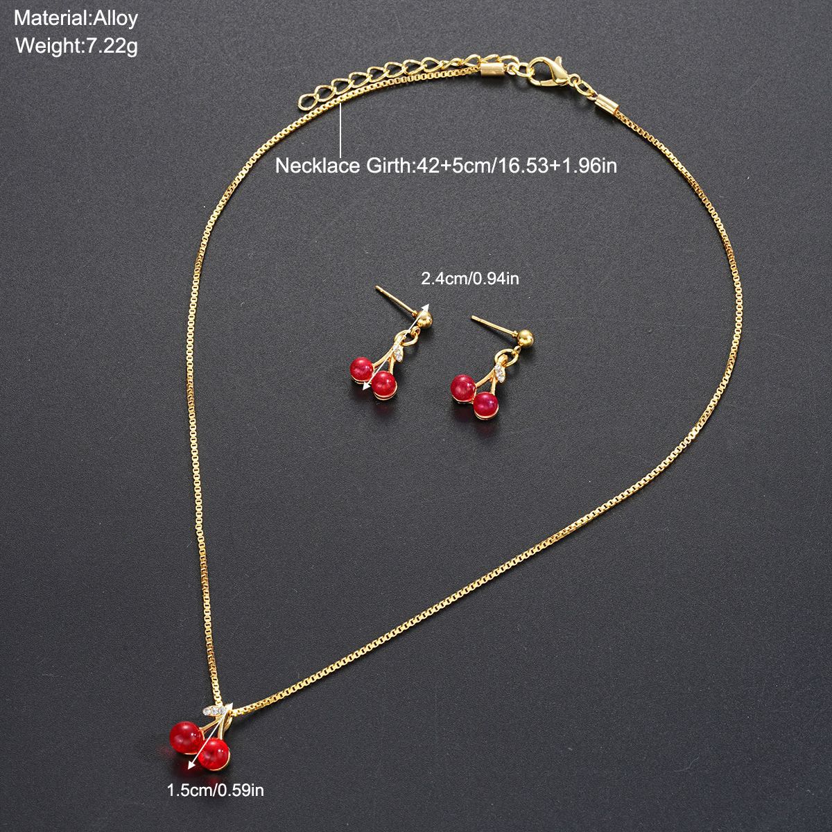 Cross-Border New Product Niche Design Diamond-Encrusted Red Cherry Pendant Necklace Earrings Set Fashion Versatile Accessories Wholesale