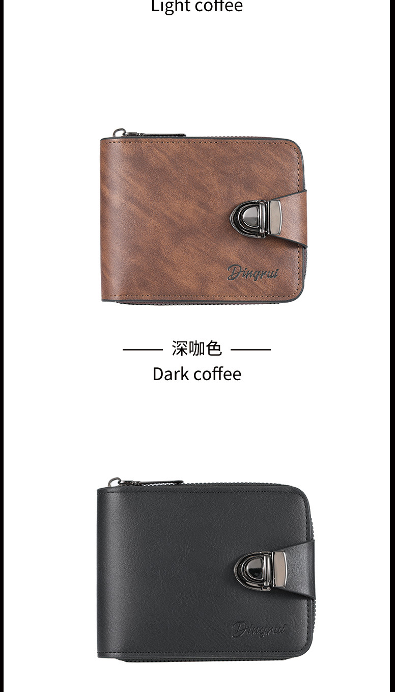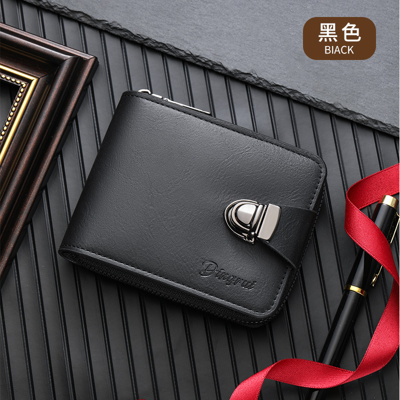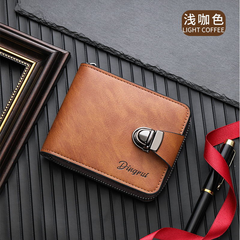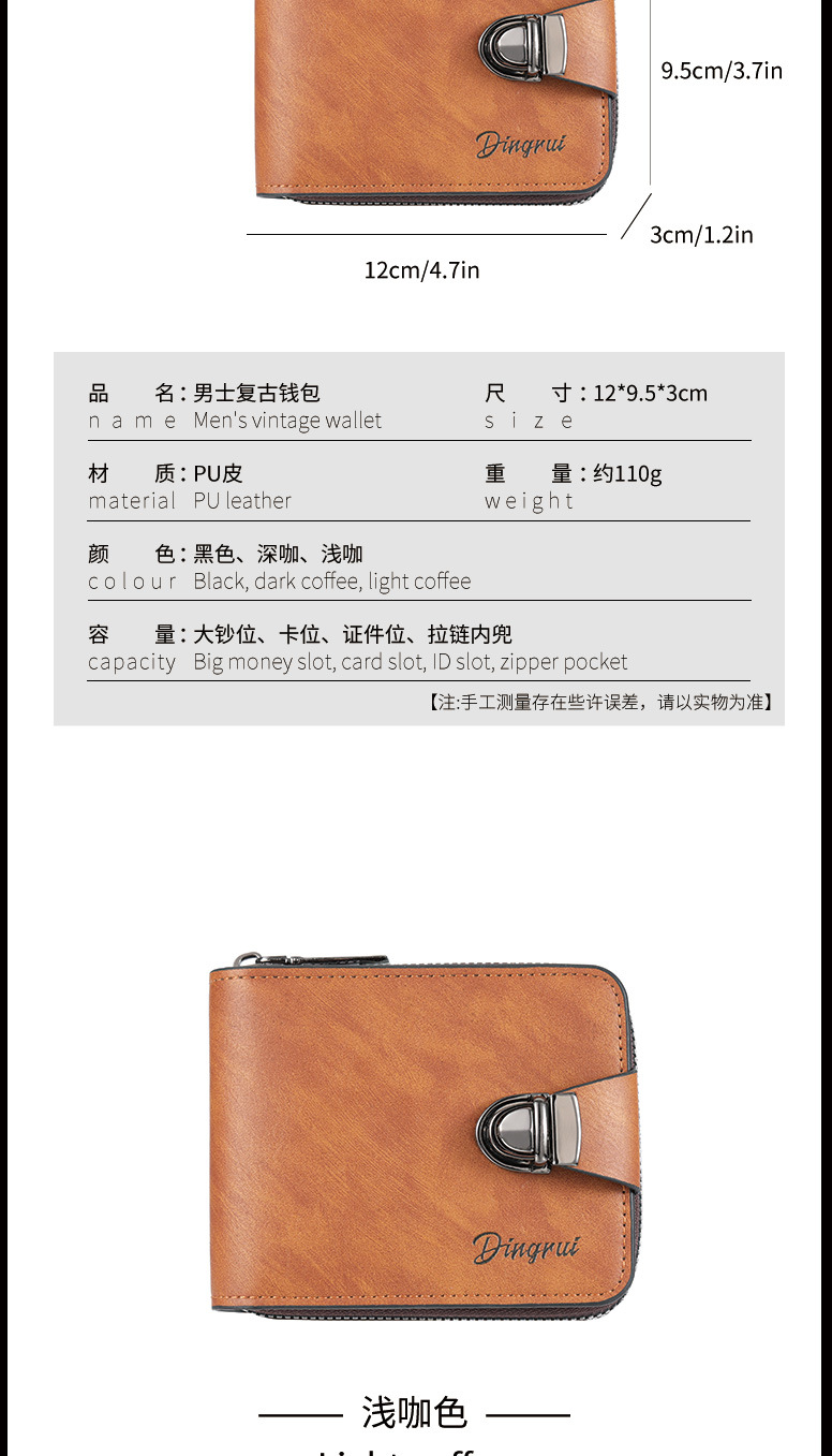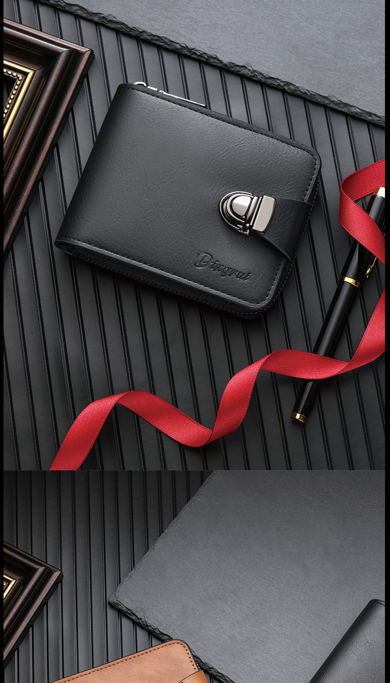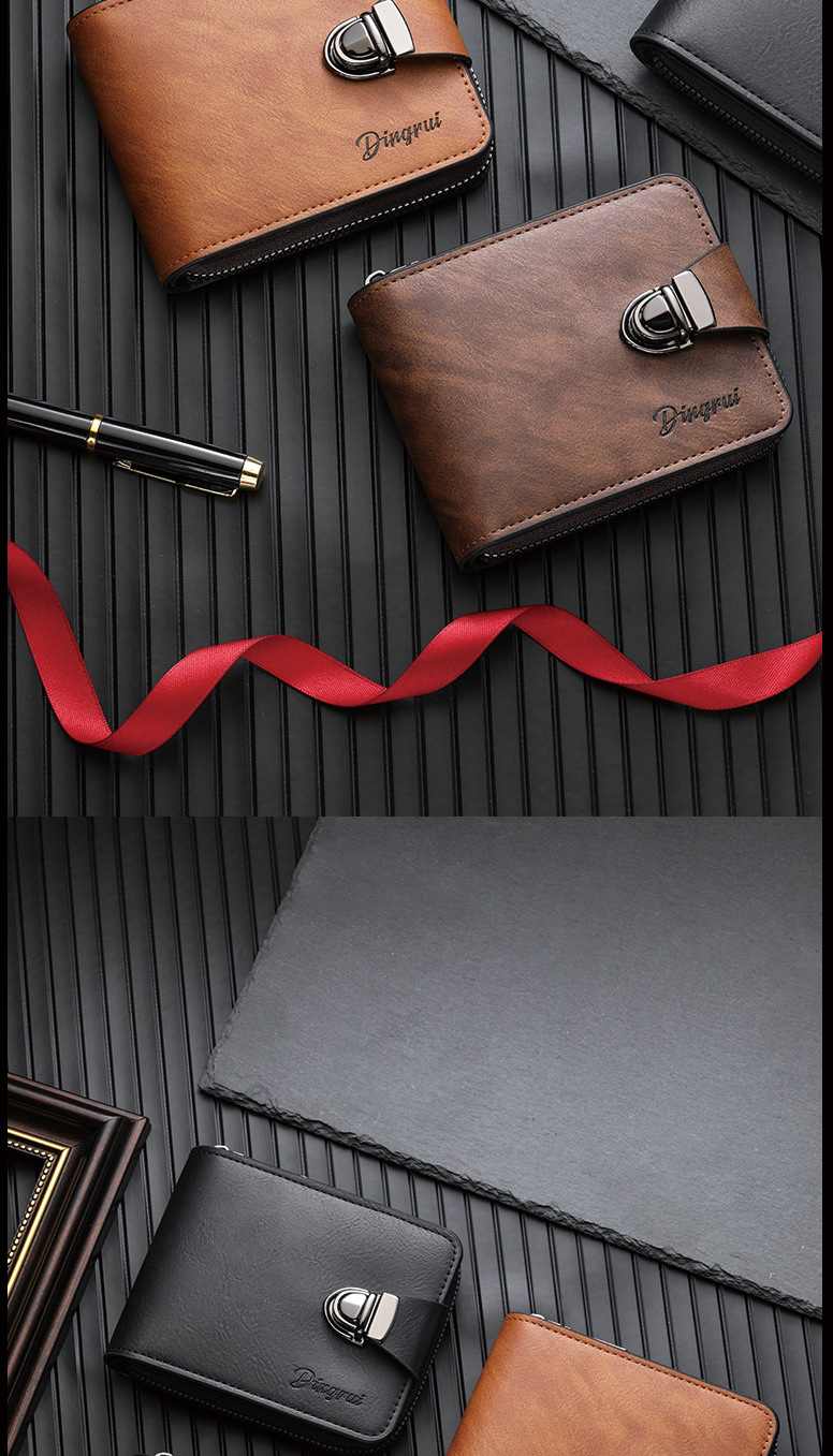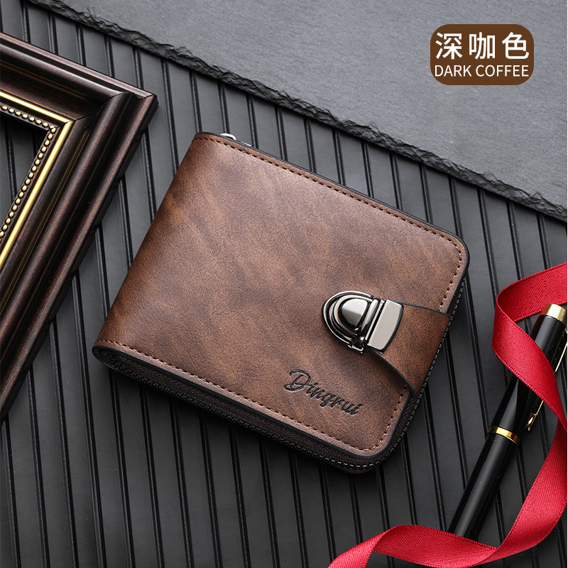 New Lock Pu Short Wallet Fashion Large Capacity Business Retro Coin Purse Manufacturer Ready Stock Wholesale