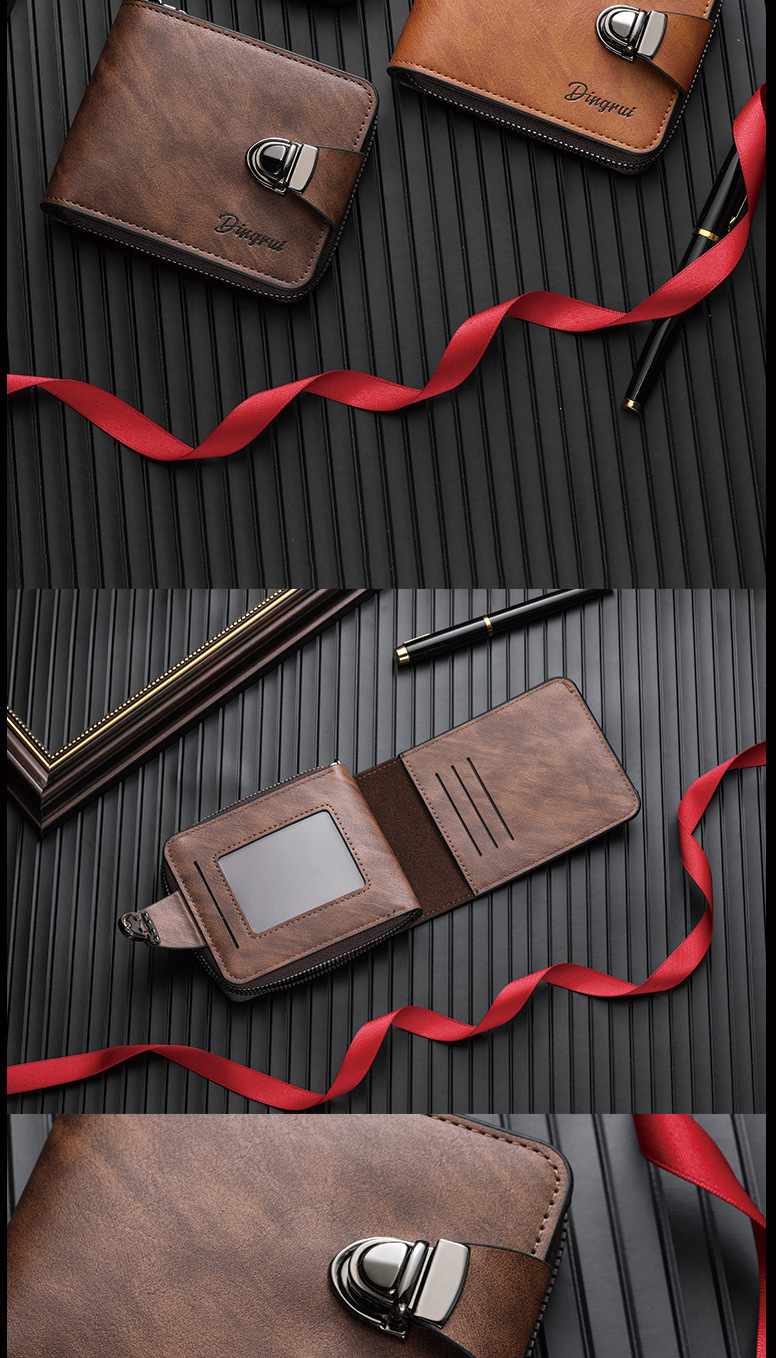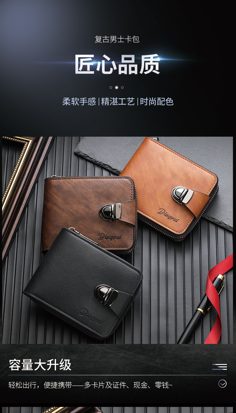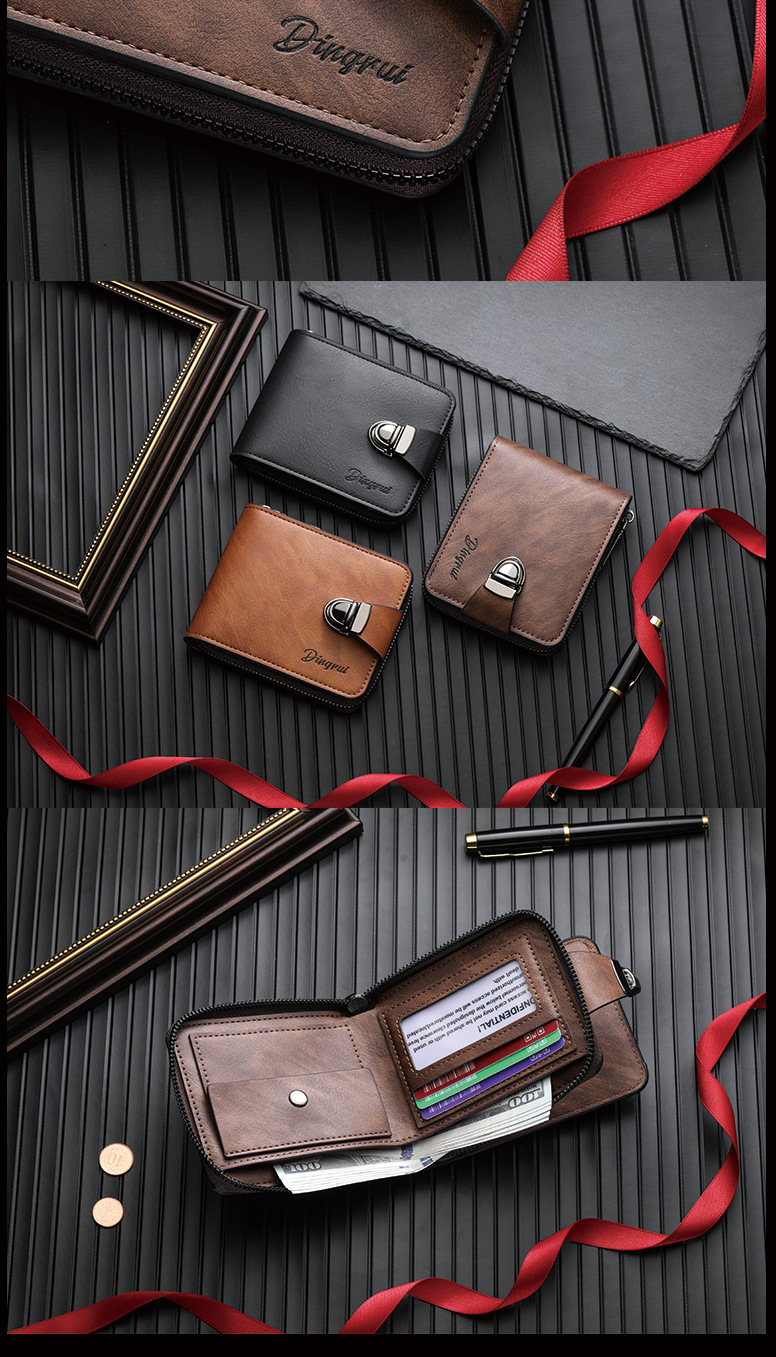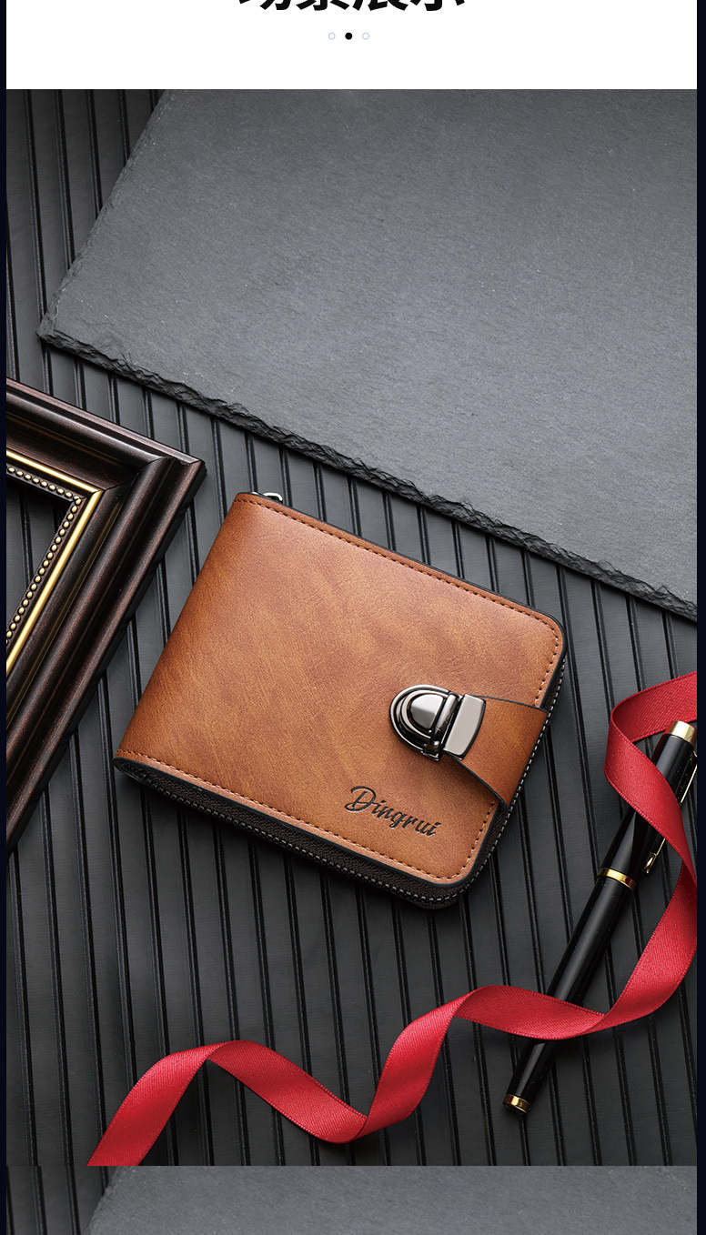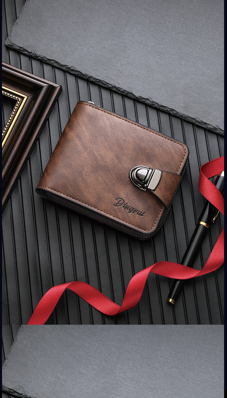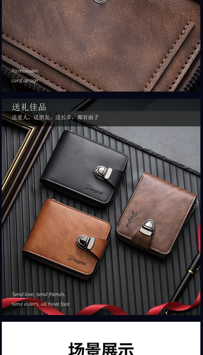 New Lock Pu Short Wallet Fashion Large Capacity Business Retro Coin Purse Manufacturer Ready Stock Wholesale