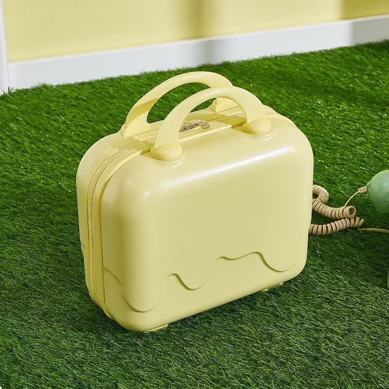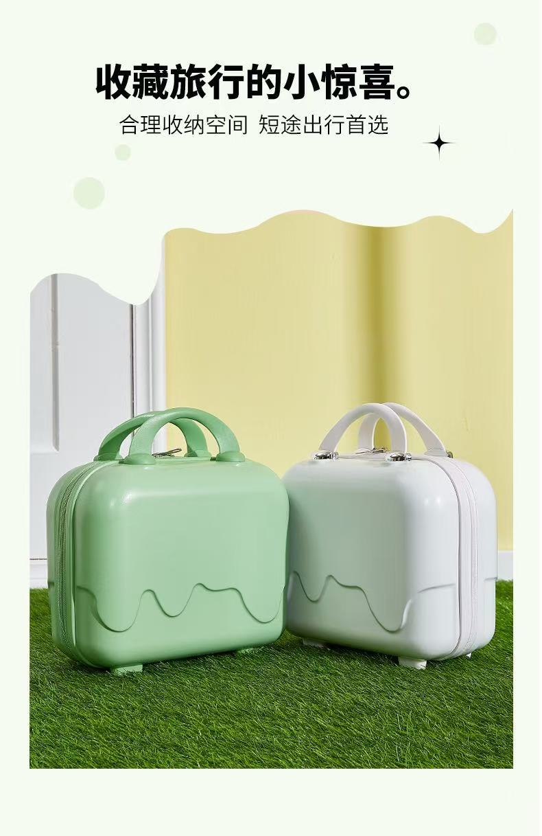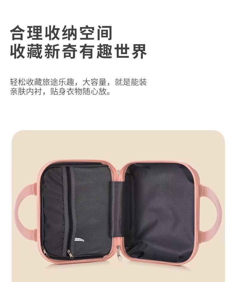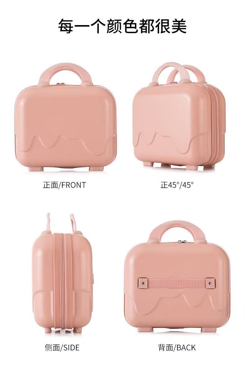 New 14inch Suitcase, Portable Suitcase, Simple Cosmetic Case, Macaron Color Zipper Storage Box, Suitcase