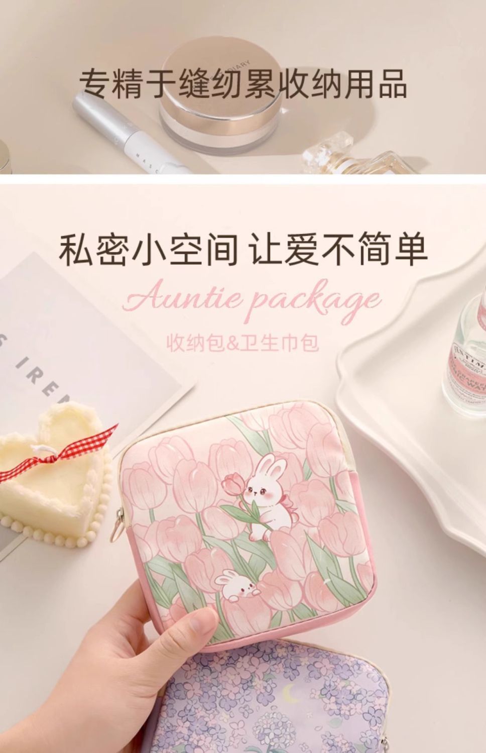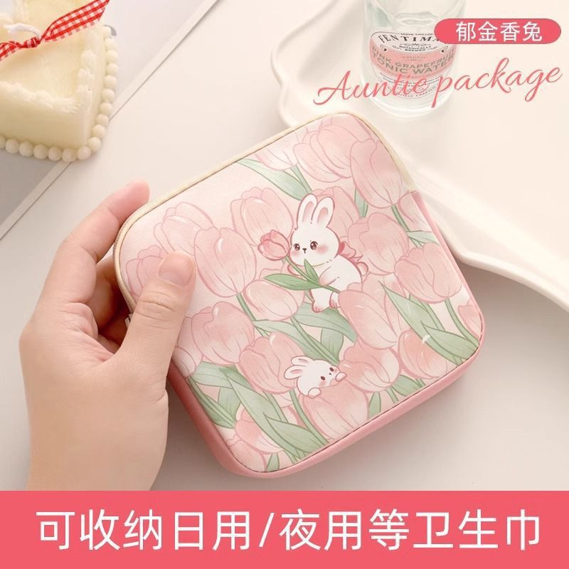 Sanitary Napkin Cosmetics Bag, Student Aunt Napkin Portable Bag, Small Large Capacity, Cute Style Menstrual Sanitary Napkin Menstrual Bag