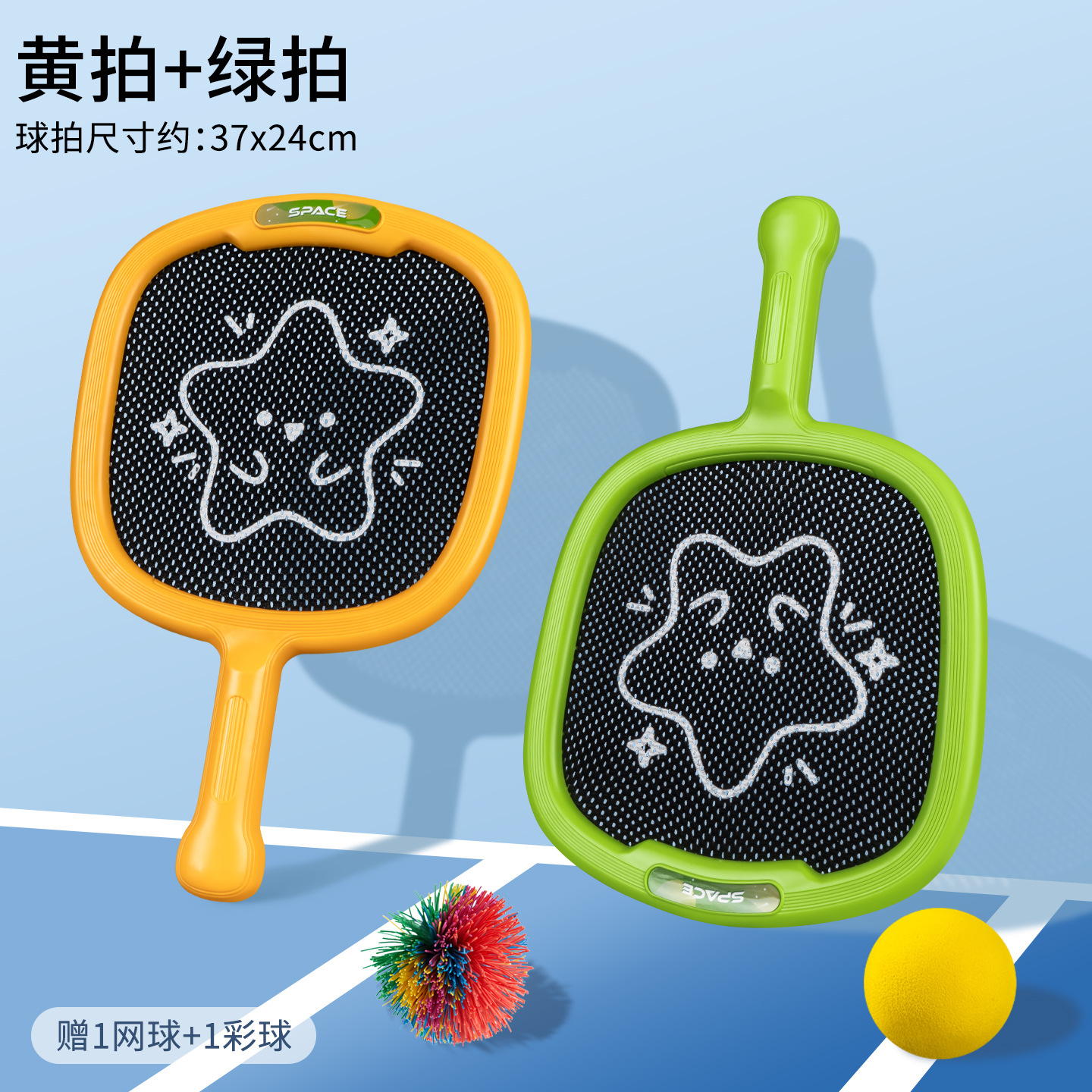 | Color | 899-608 [blue racket + orange racket] large elastic racket | Color | 899-608 [yellow racket + green racket] large elastic racket |
