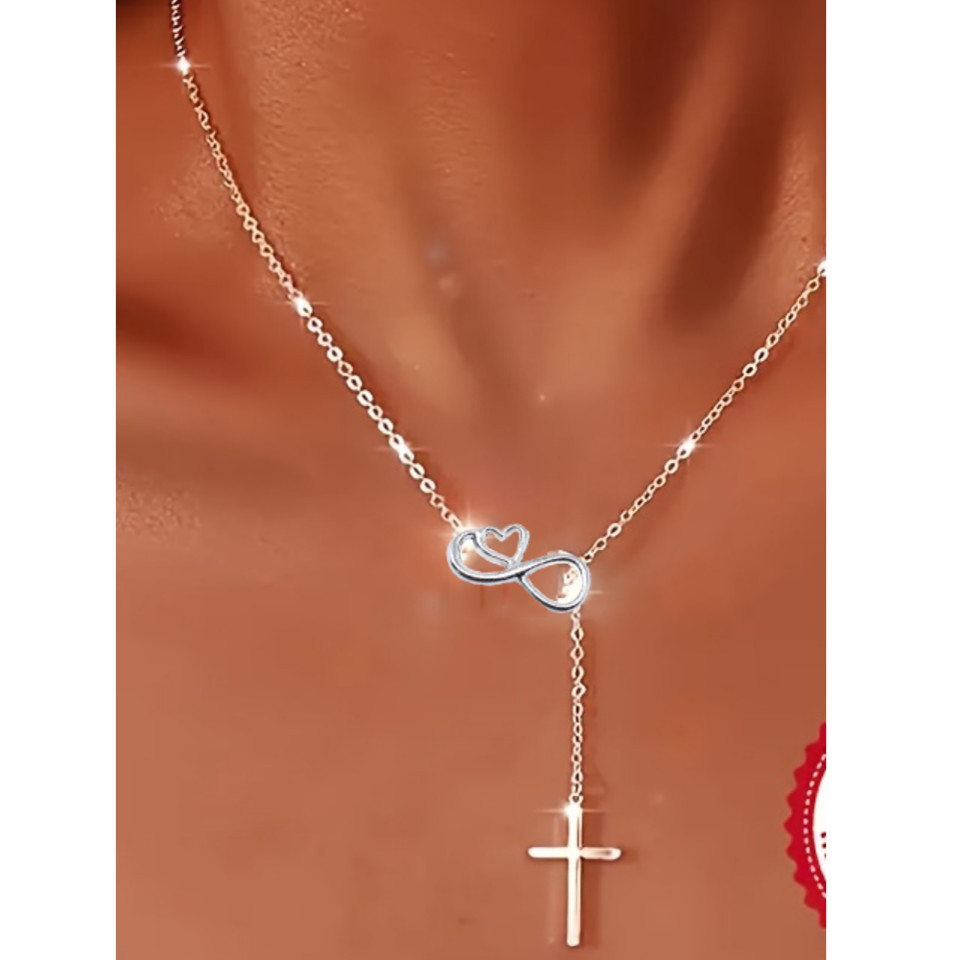 C124 European and American Export Necklace Aliexpress Hot Selling Simple Lucky Number 8 Cross Short Necklace Jewelry
