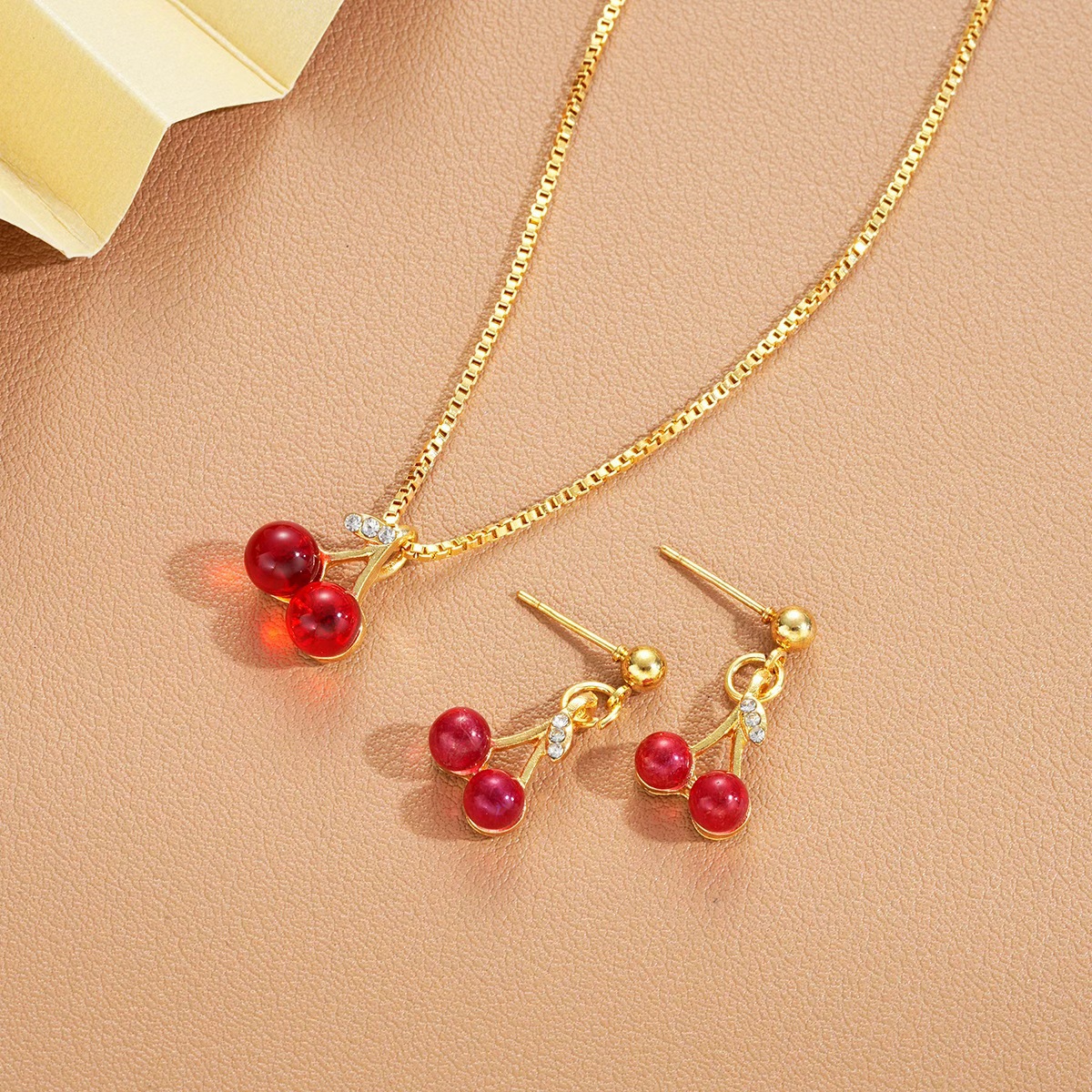 Japanese and Korean Simple Ins Style Cherry Necklace Accessible Luxury Elegant Niche Sweet Clavicle Chain Girl Bestie Elegant Jewelry