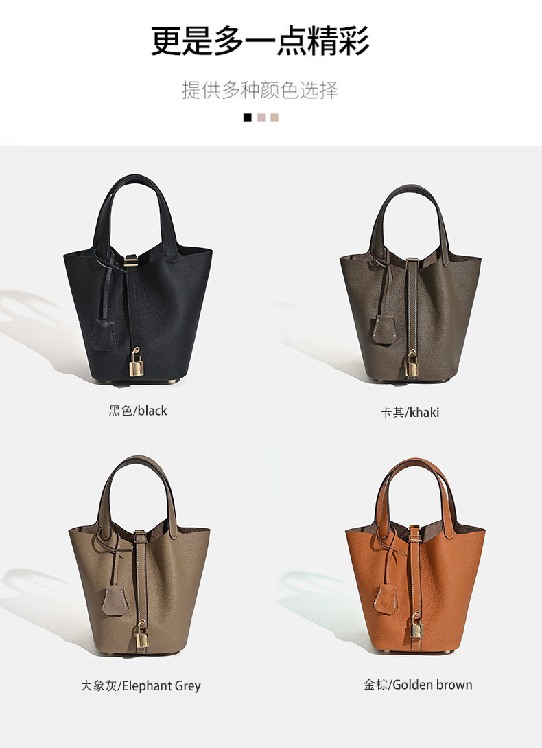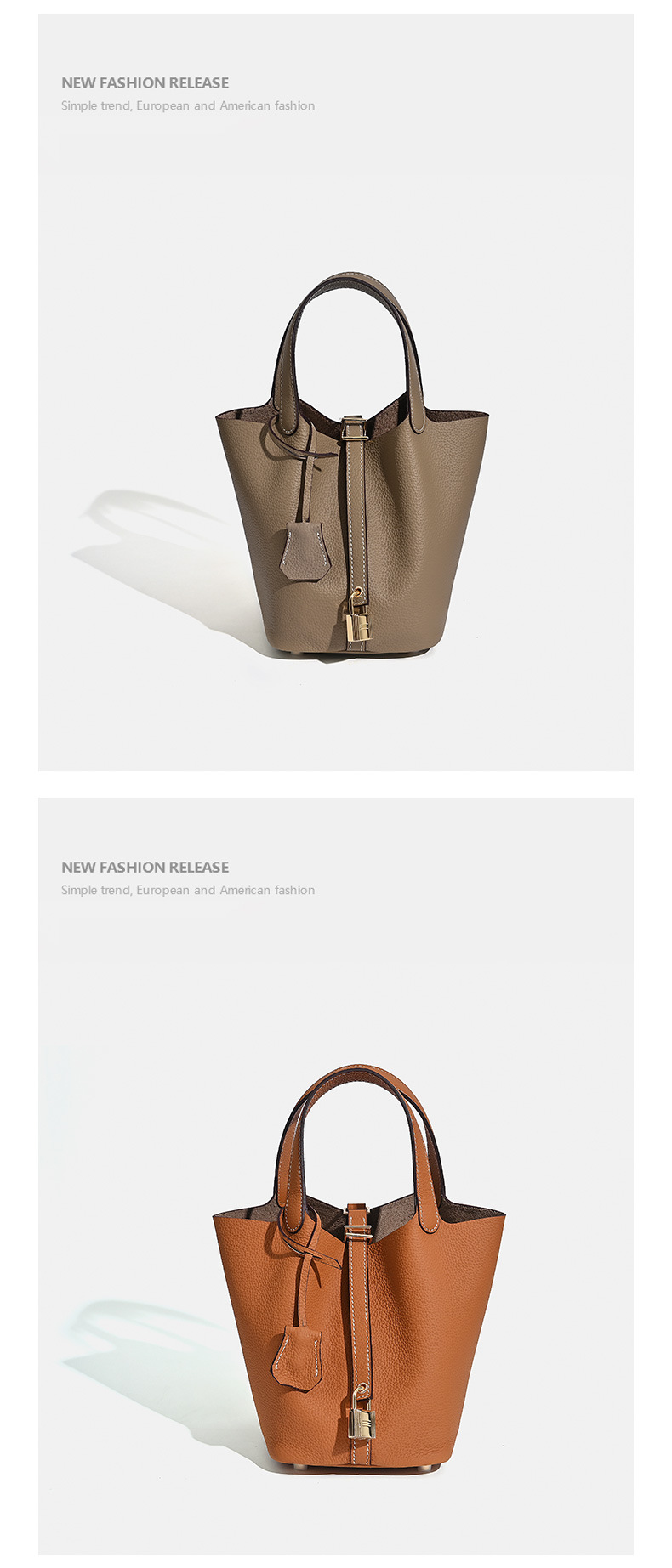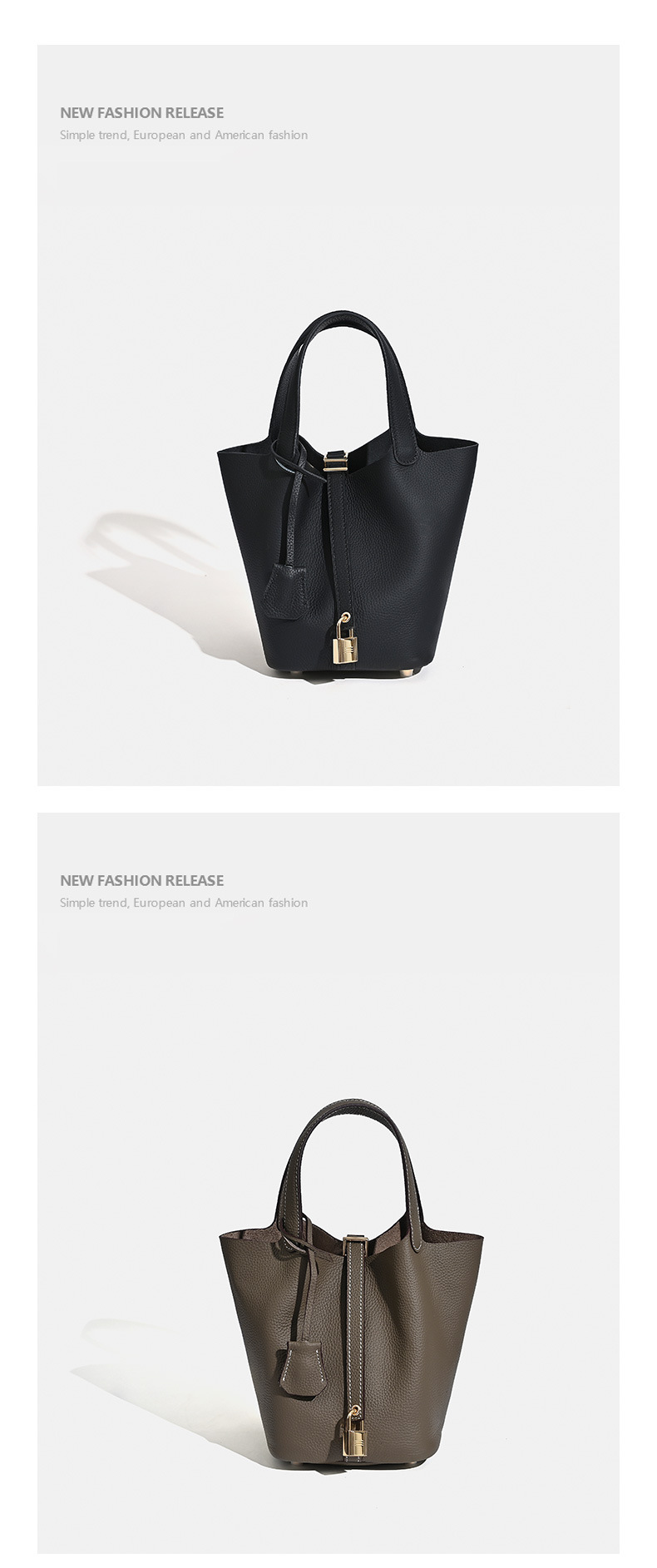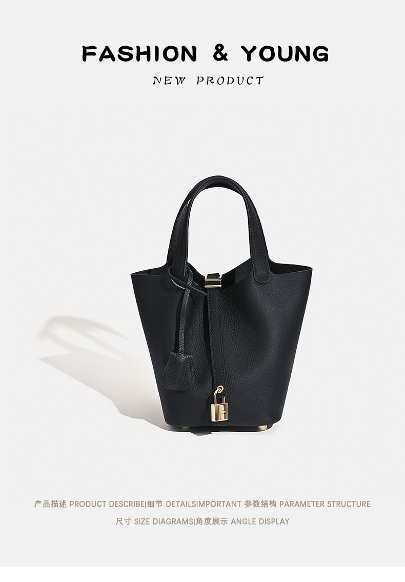 High-End Genuine Leather Women's Bucket Bag Versatile Classic Basket Top Layer Cowhide Women's 2025 New Handbag