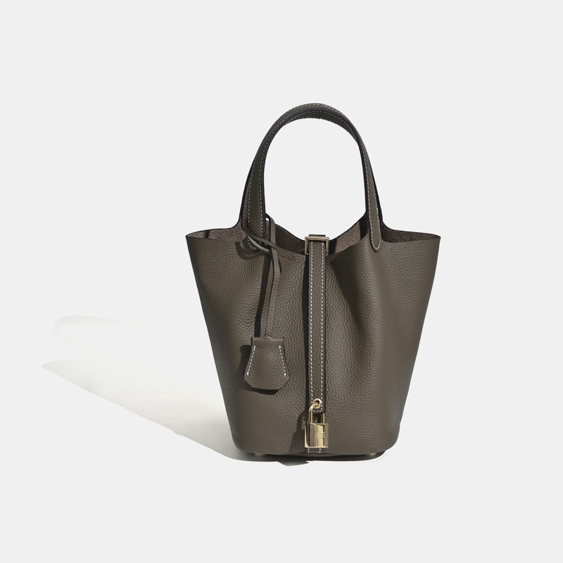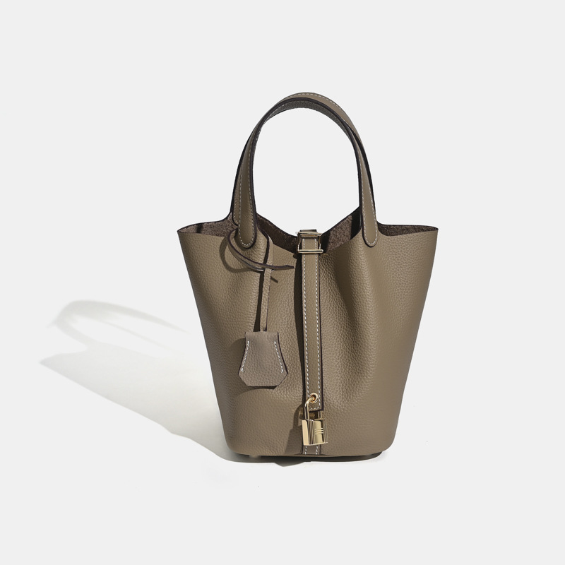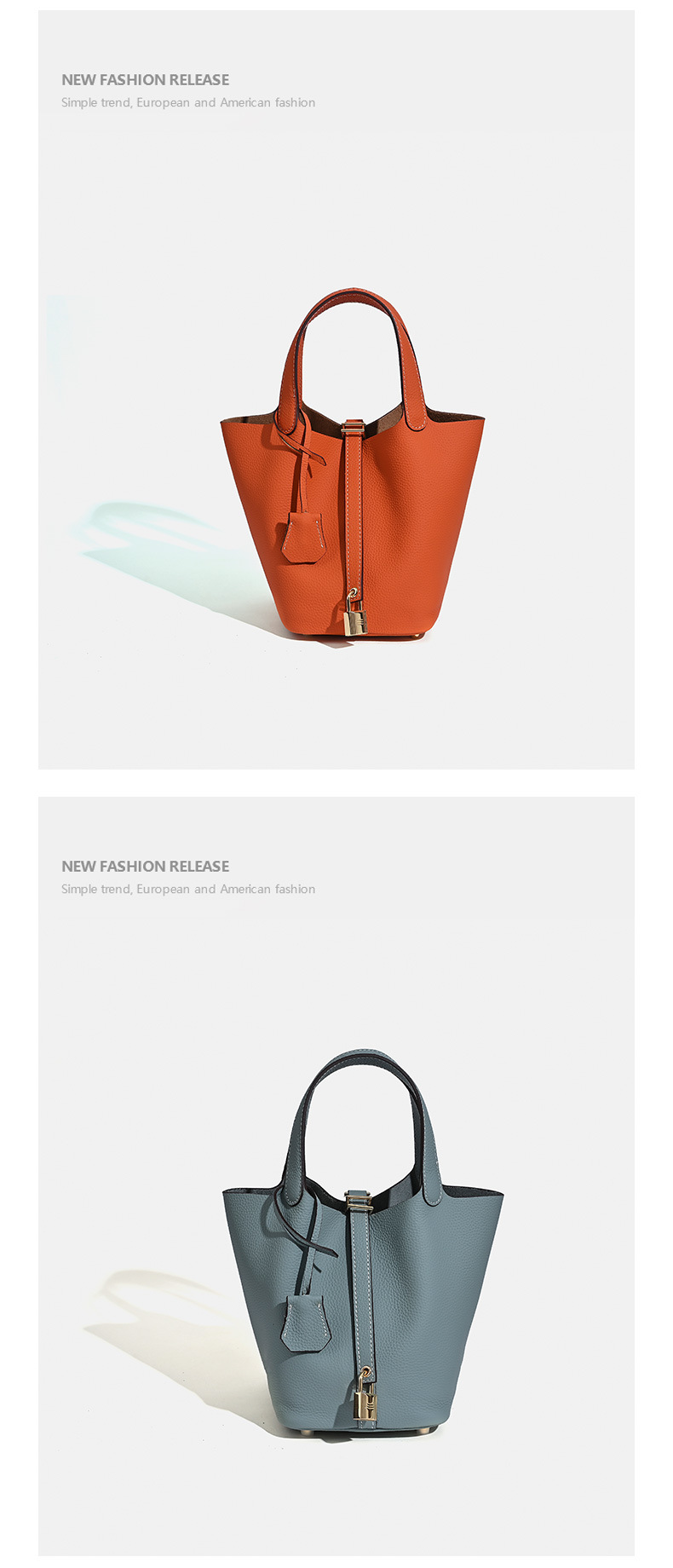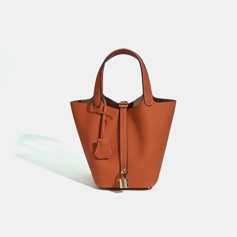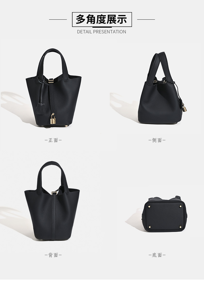 High-End Genuine Leather Women's Bucket Bag Versatile Classic Basket Top Layer Cowhide Women's 2025 New Handbag