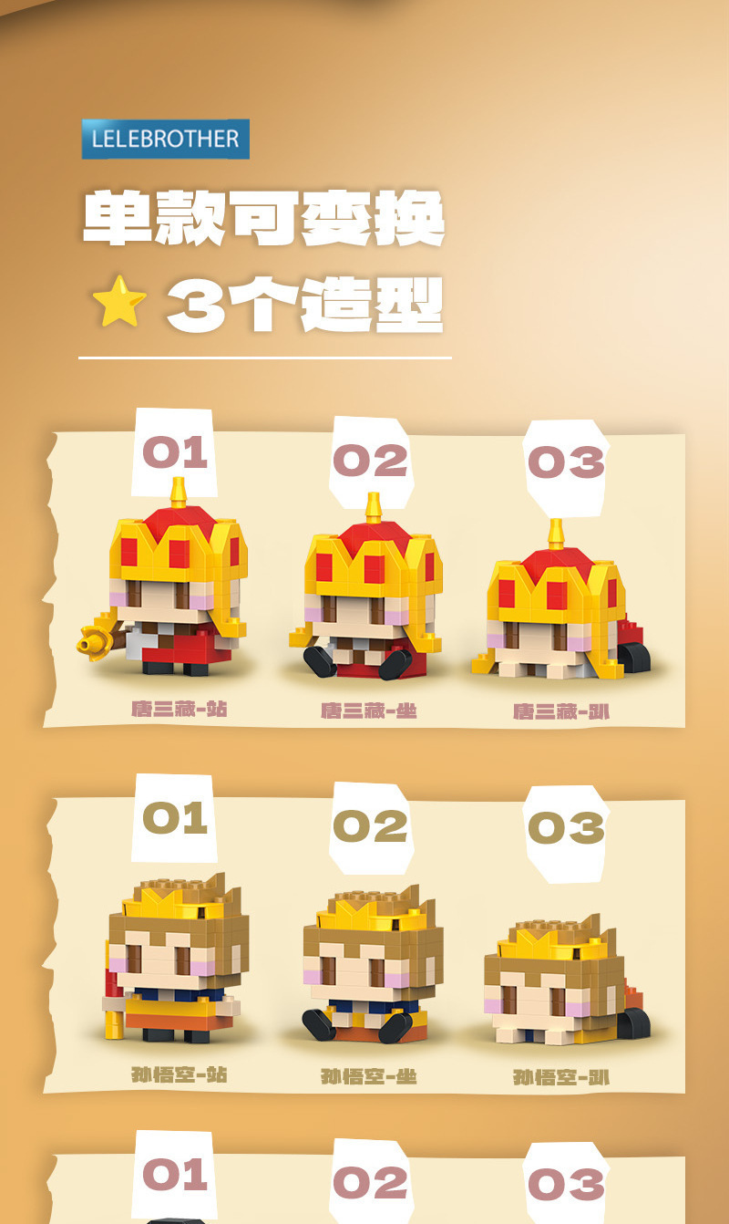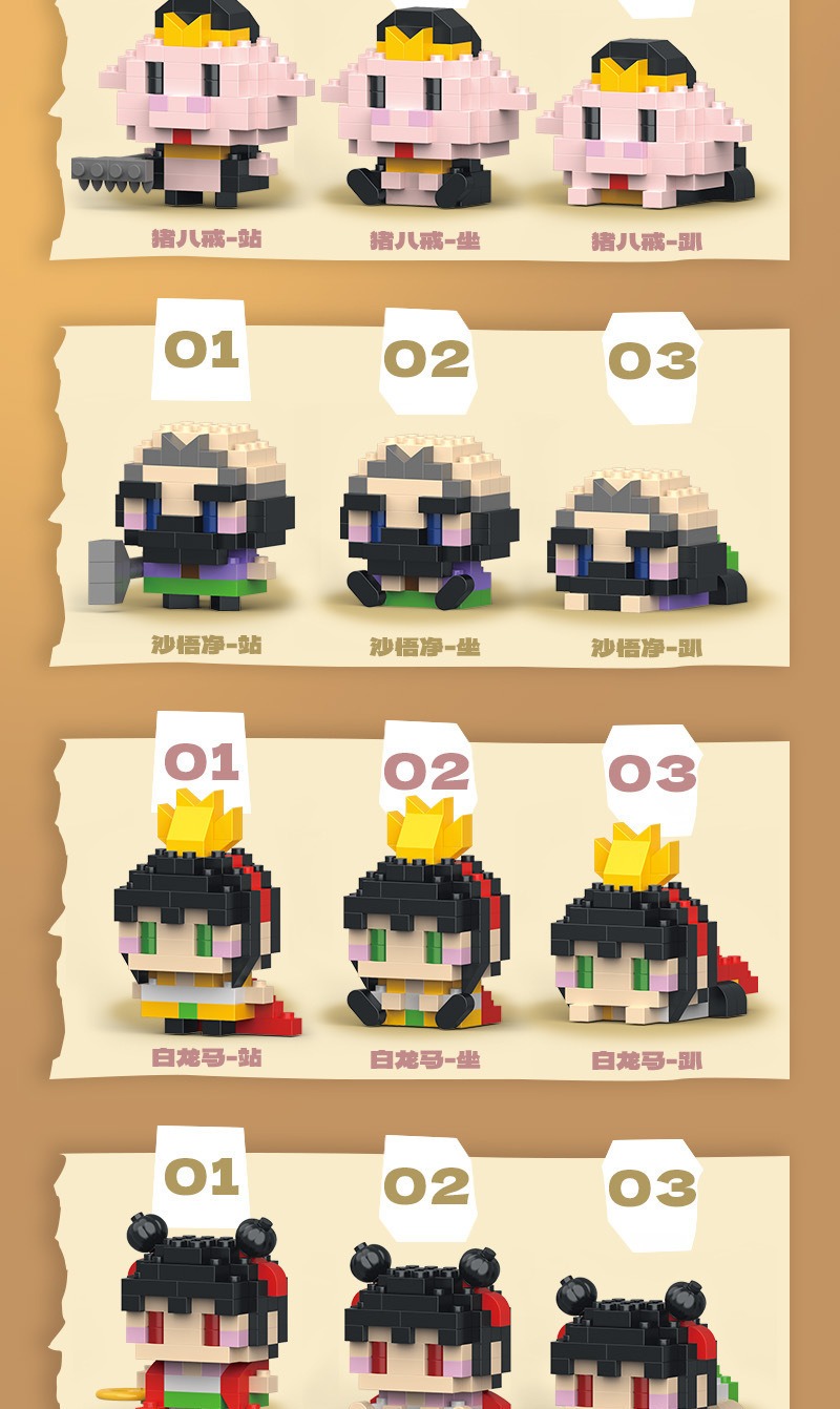 | Color | W1701-2 sun wukong 111pcs [3 shapes switchable] | Color | W1701-3 zhubajie 118pcs [3 shapes switchable] |