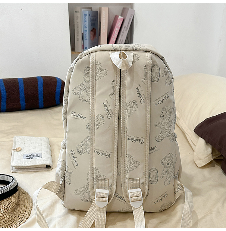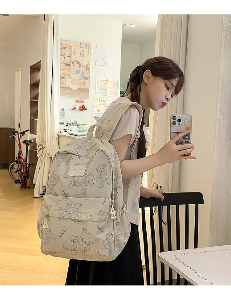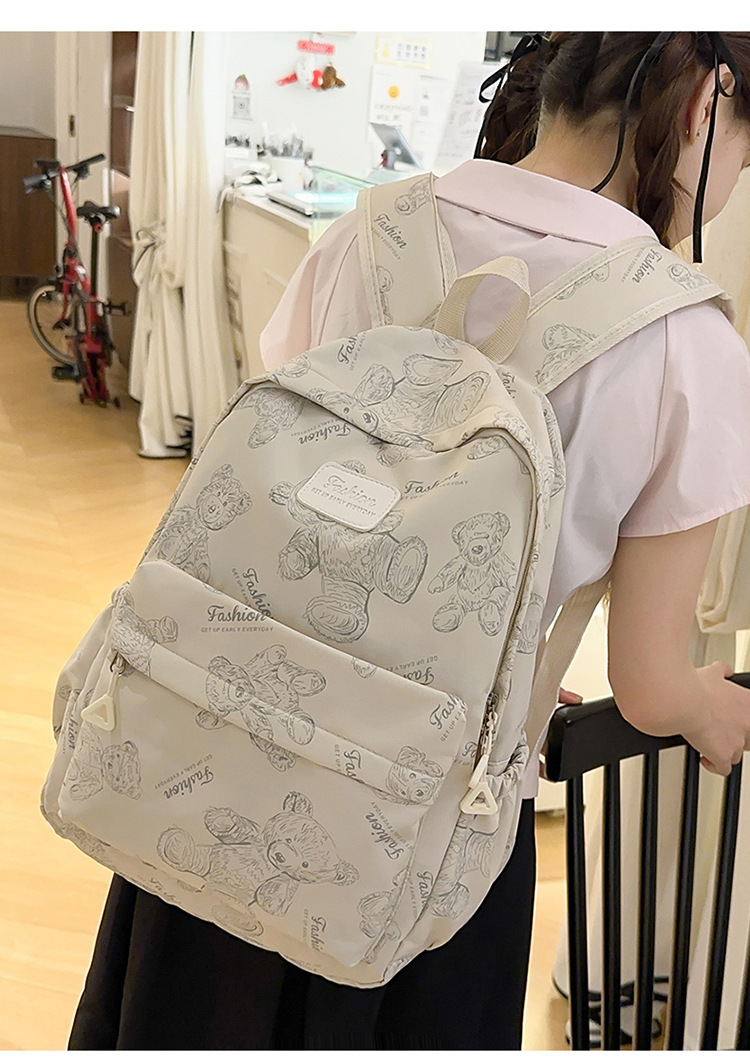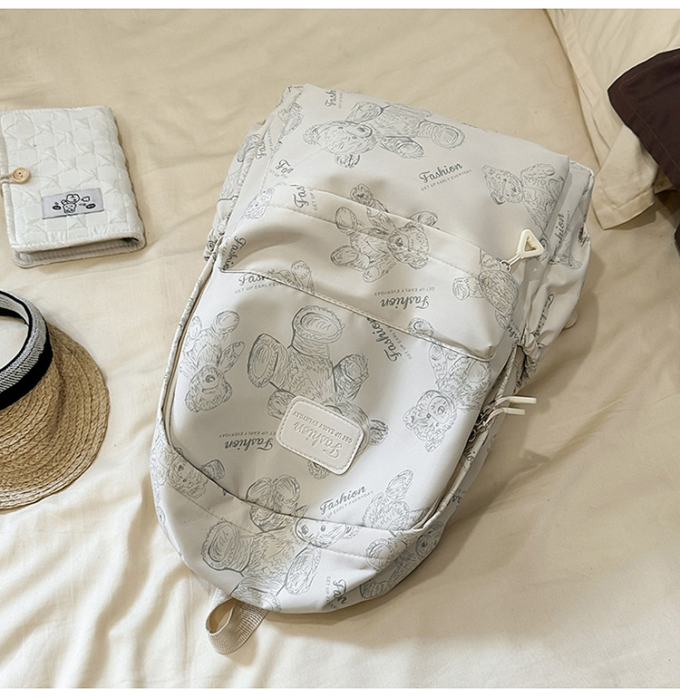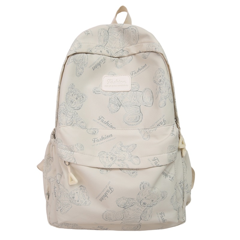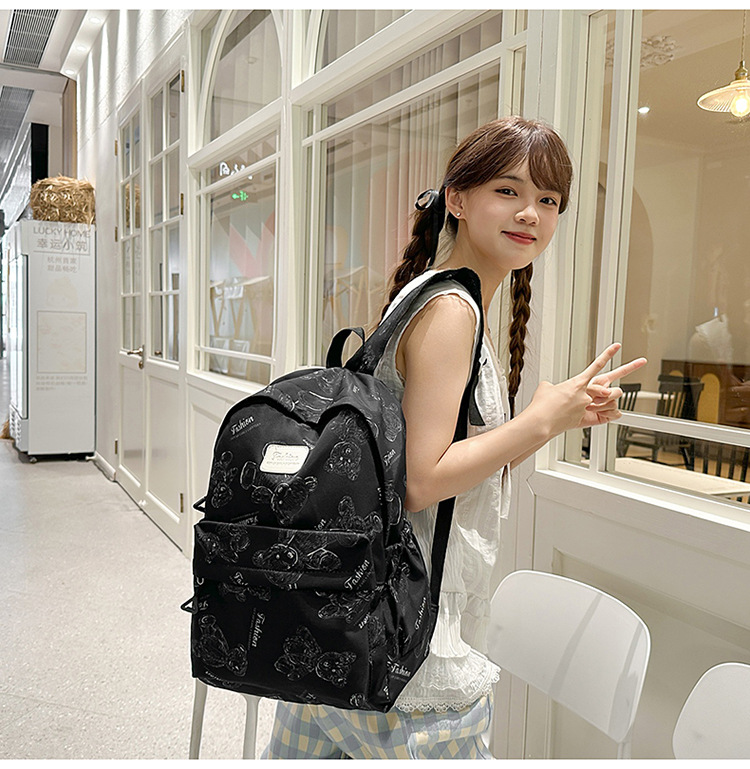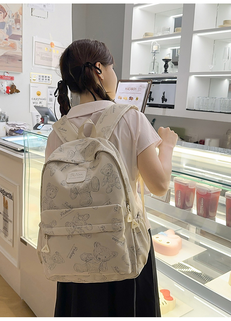 Cute Bear Graffiti School Bag Female College Student Computer Backpack Lightweight Junior High School Student High School Student Travel Backpack Trendy