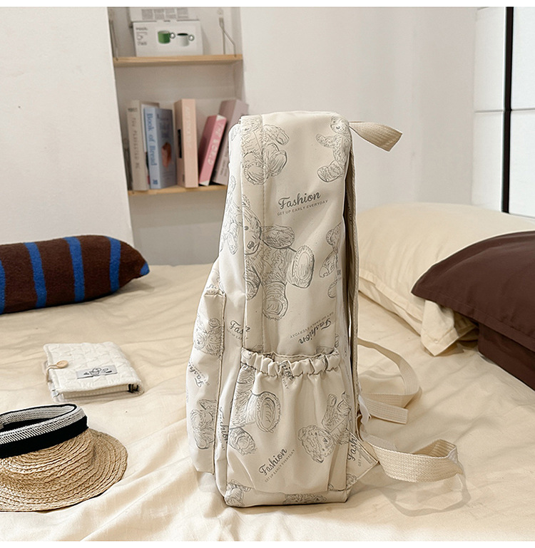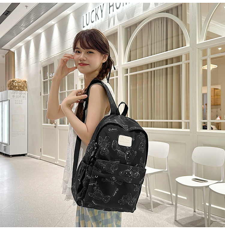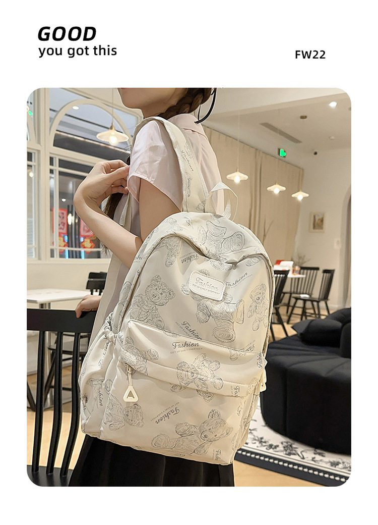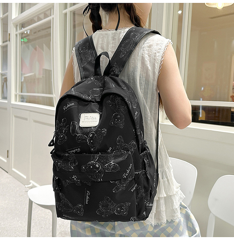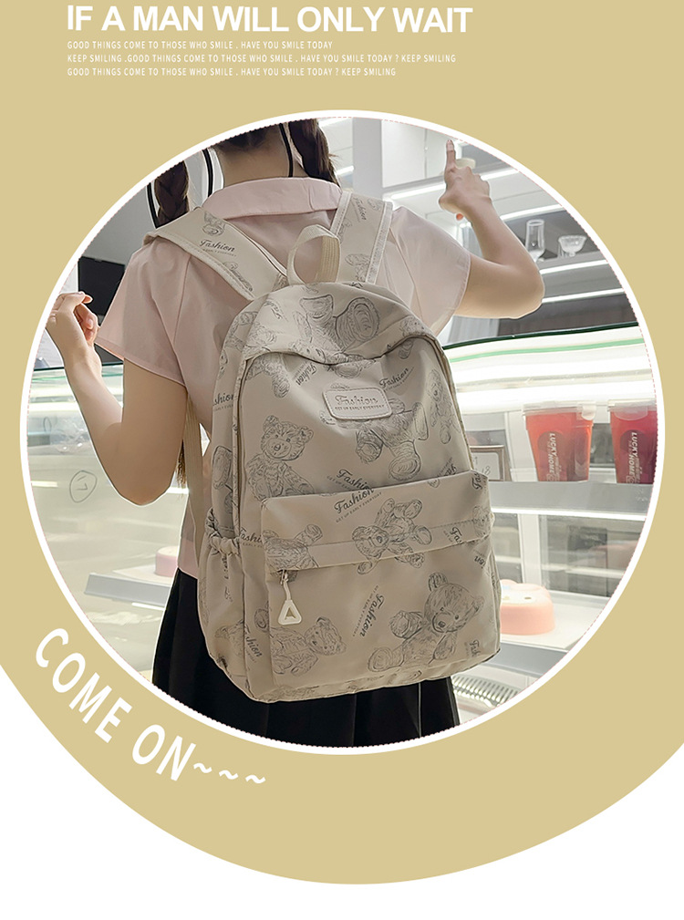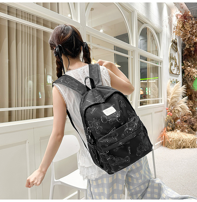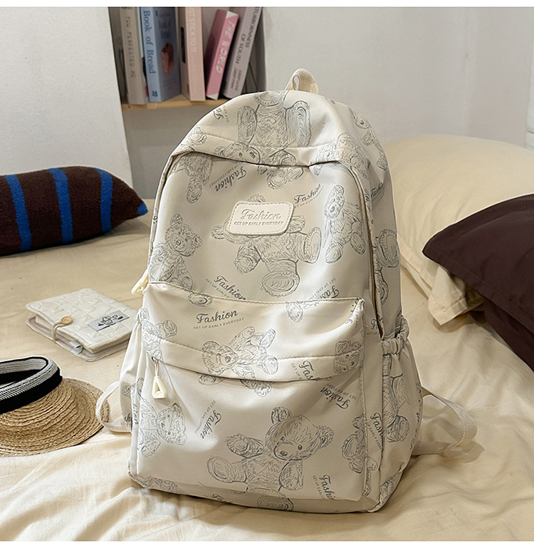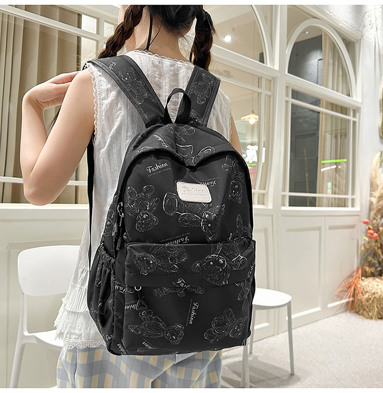 Cute Bear Graffiti School Bag Female College Student Computer Backpack Lightweight Junior High School Student High School Student Travel Backpack Trendy