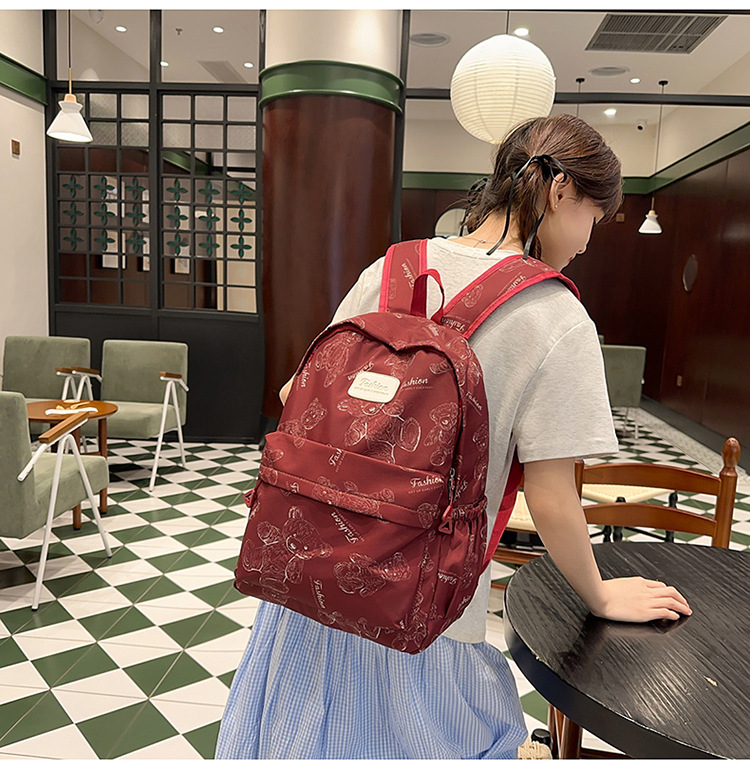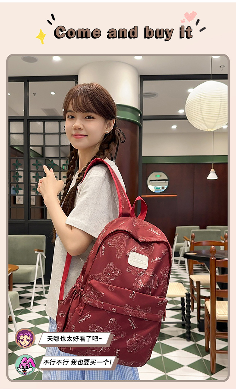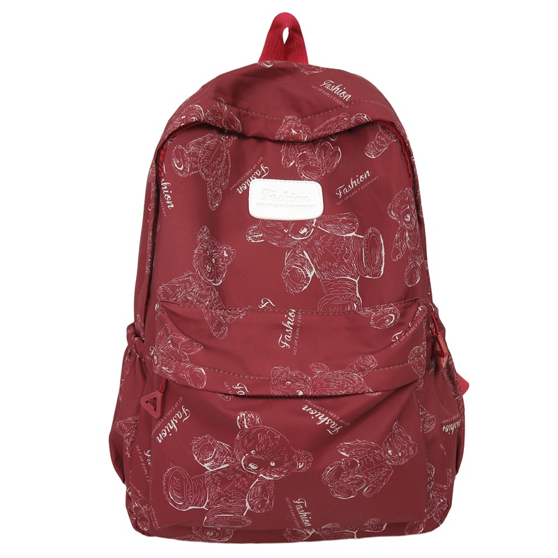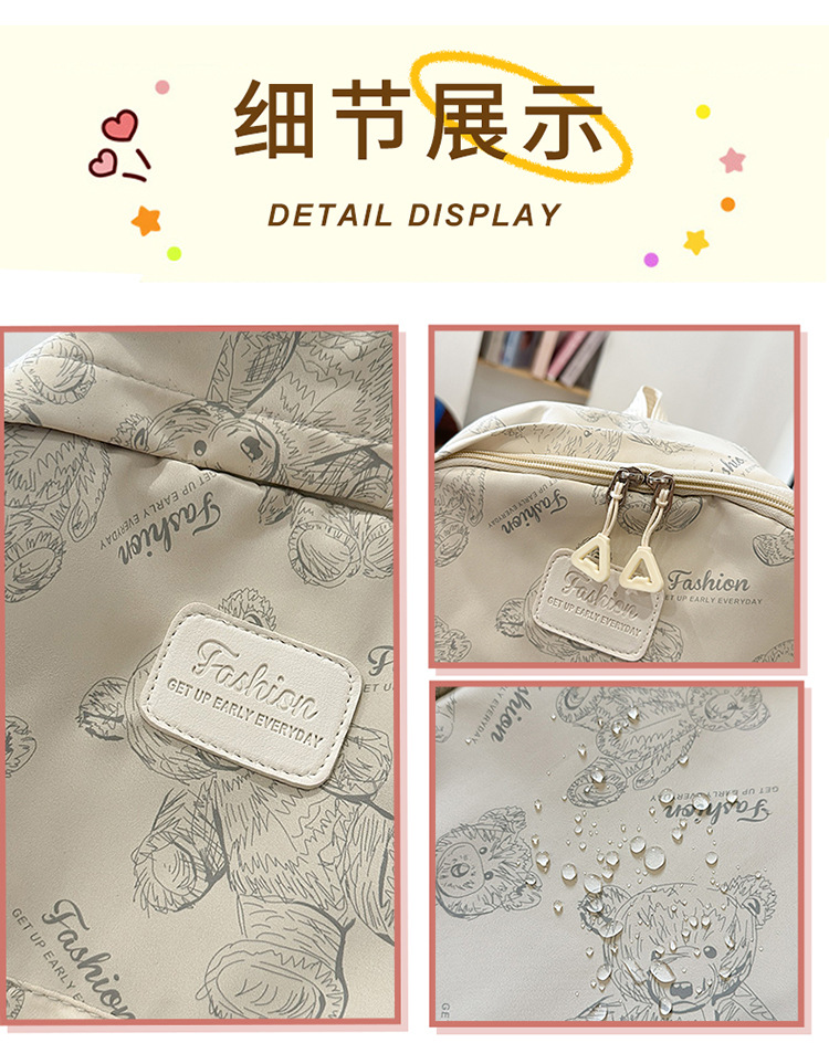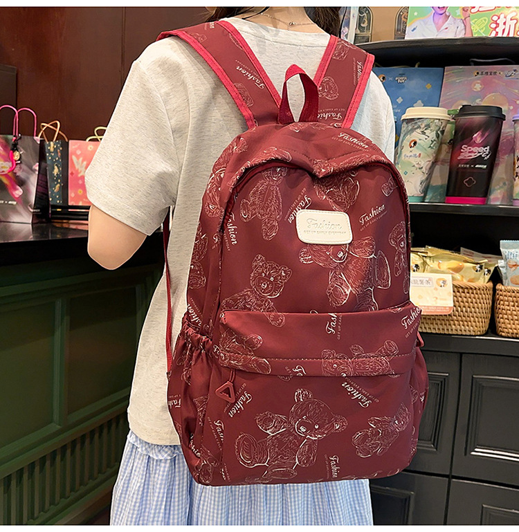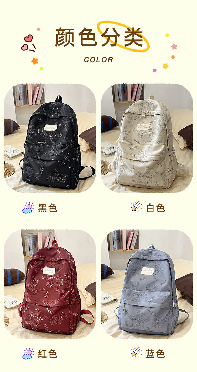 Cute Bear Graffiti School Bag Female College Student Computer Backpack Lightweight Junior High School Student High School Student Travel Backpack Trendy