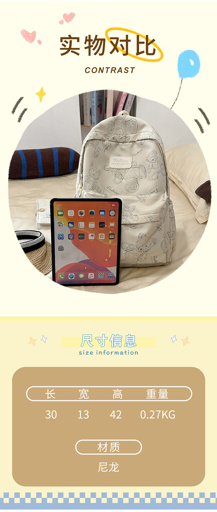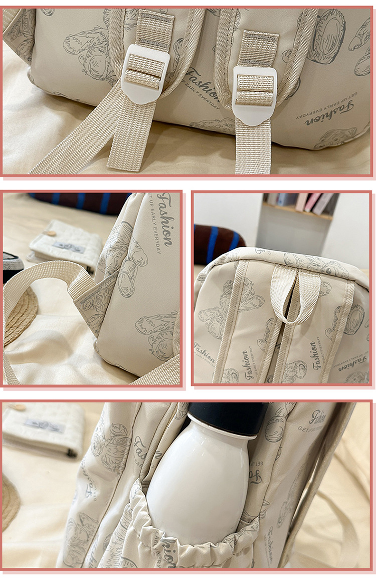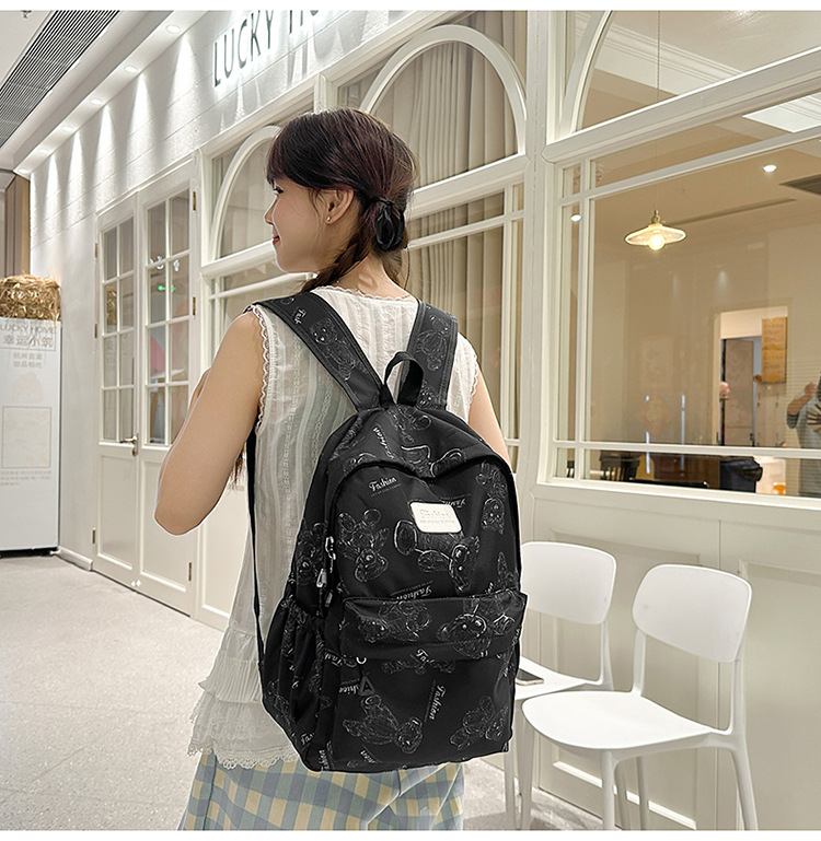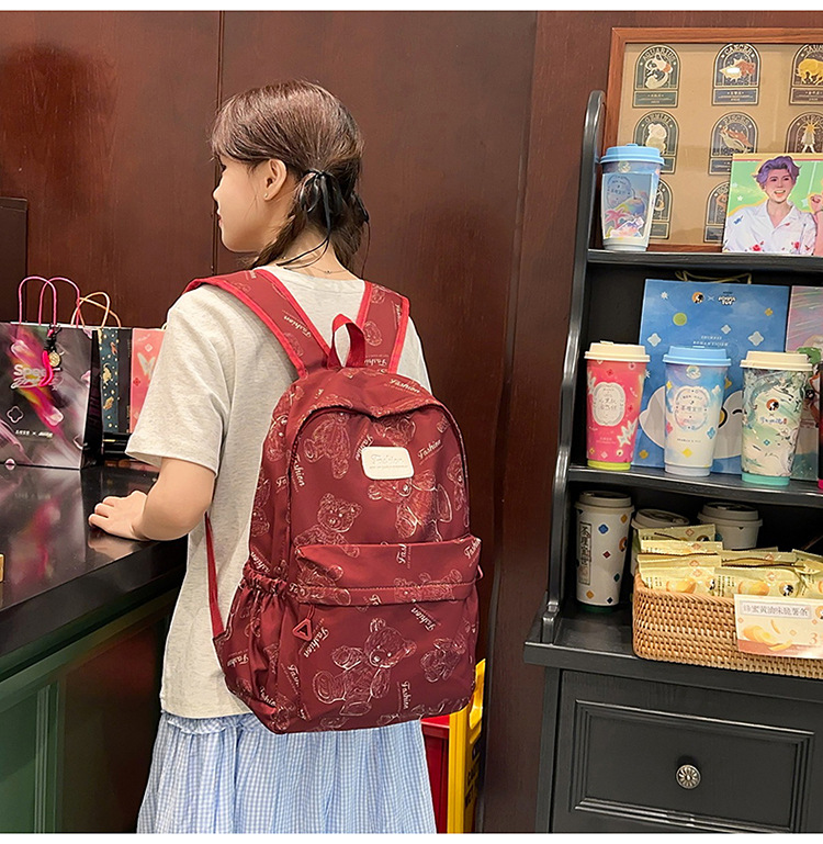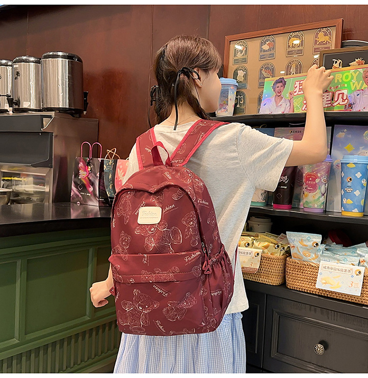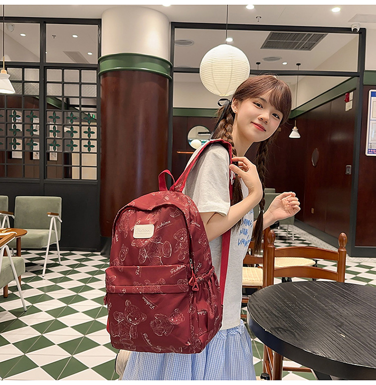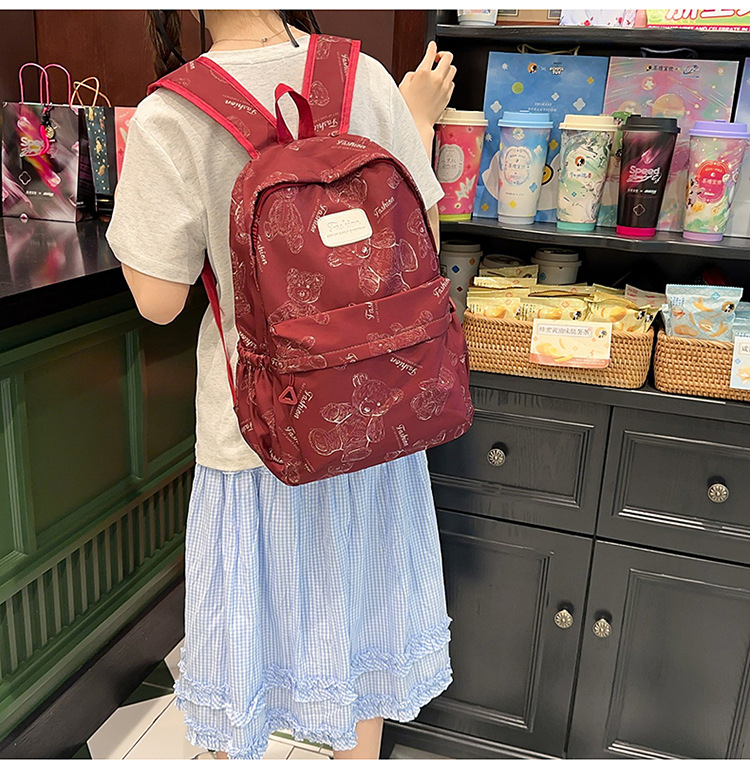 Cute Bear Graffiti School Bag Female College Student Computer Backpack Lightweight Junior High School Student High School Student Travel Backpack Trendy