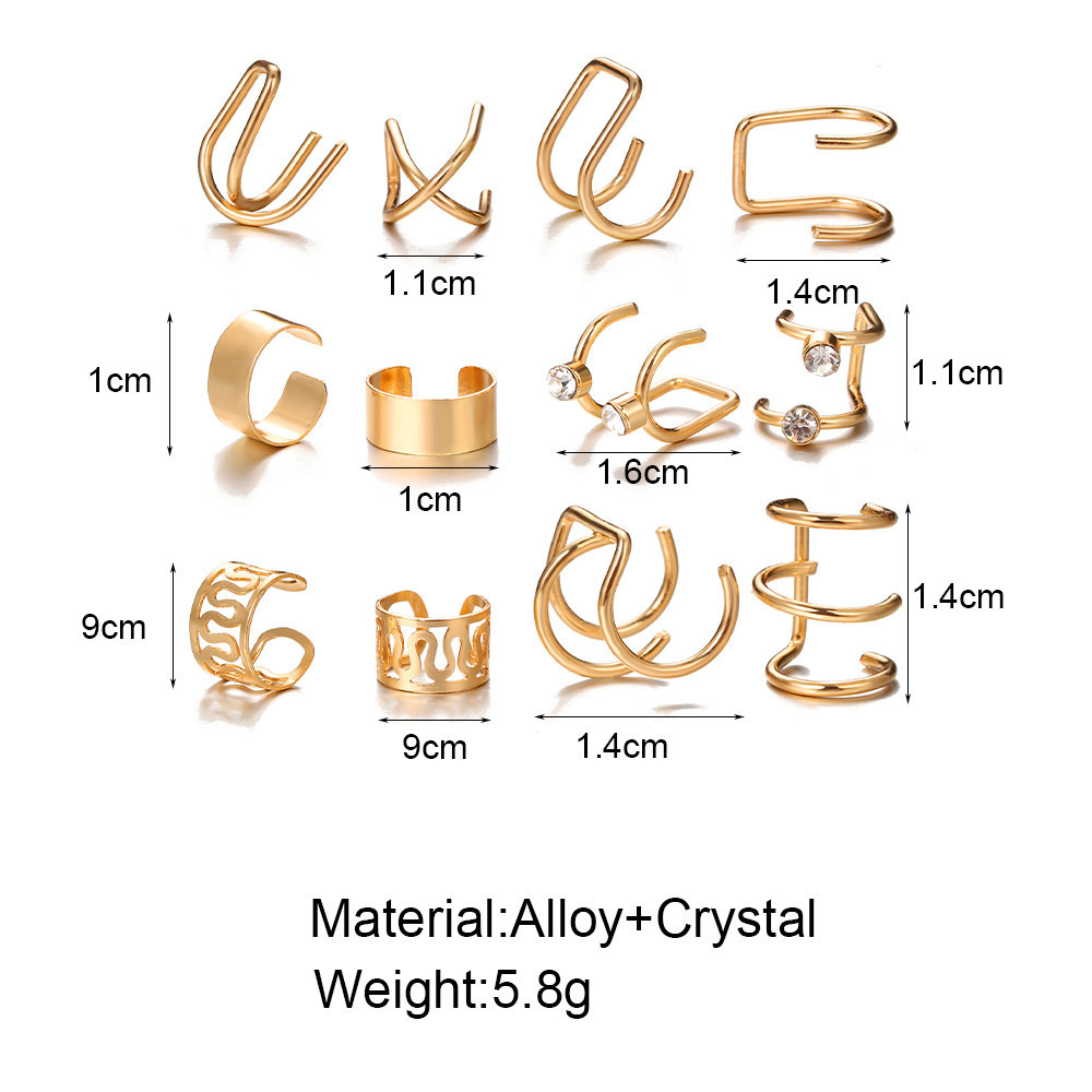 European and American Cross-Border New Ear Clip Set Creative Simple C-Type Ins Non-Pierced Ear Clip Women's 12-Piece Set of Earrings Wholesale