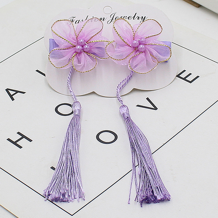 [Gold Edge Tassel] Chinese Style Han Dynasty Accessories Girls Ribbon Hairpins Children's Ancient Style Hair Accessories Headwear