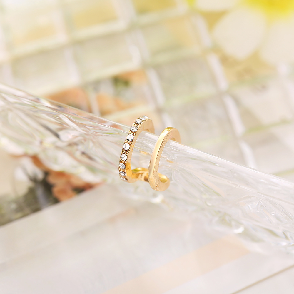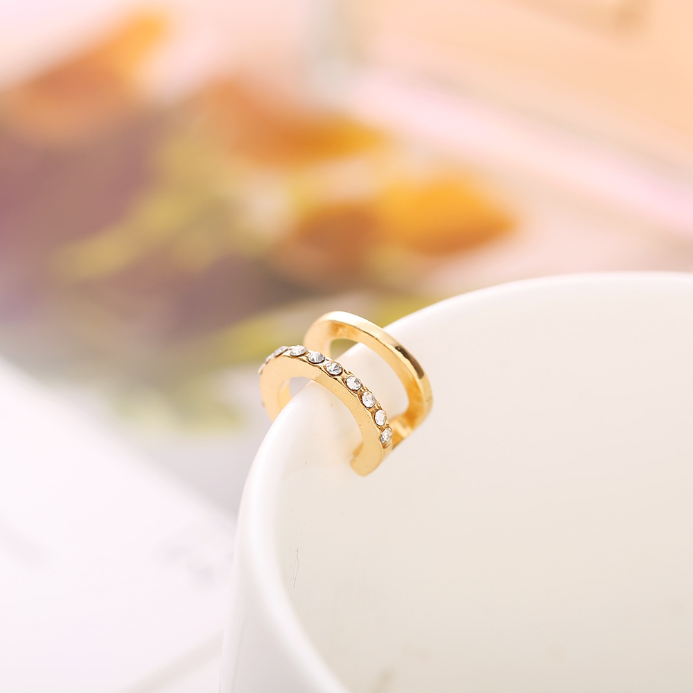 European and American Cross-Border New Style Simple Dot Diamond Double C Ear Bone Clip Female Stylish Double Layer U-Shaped Non-Pierced Ear Clip Jewelry Wholesale
