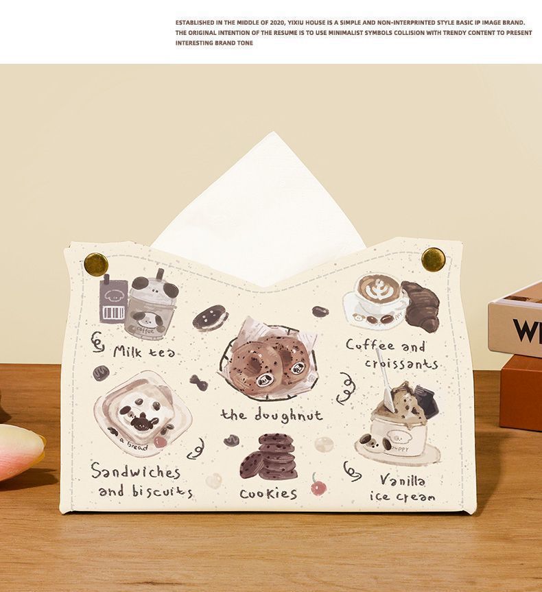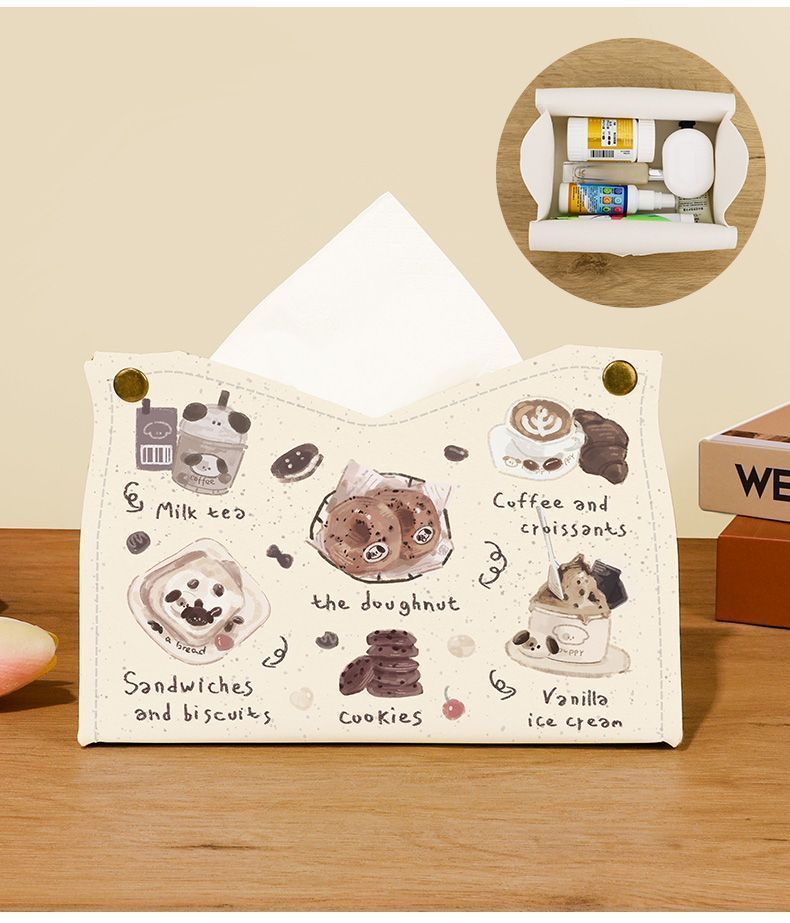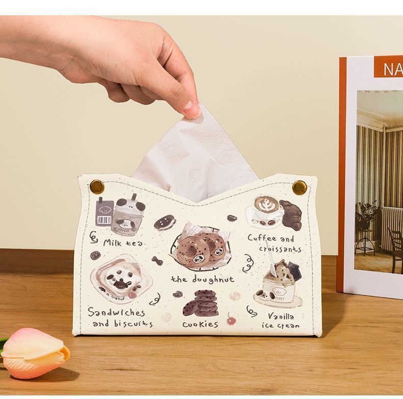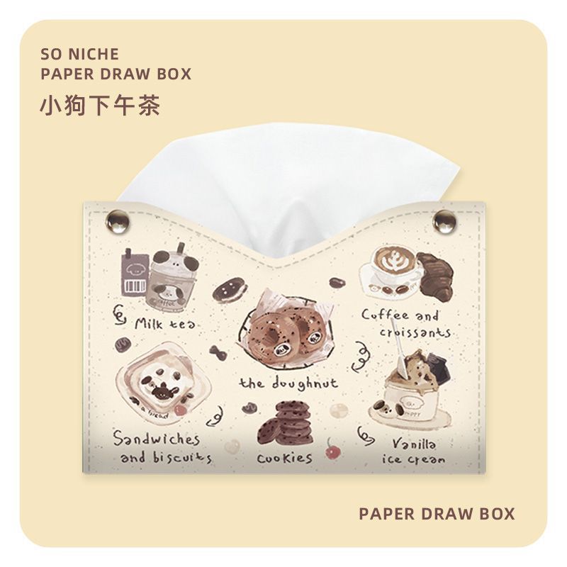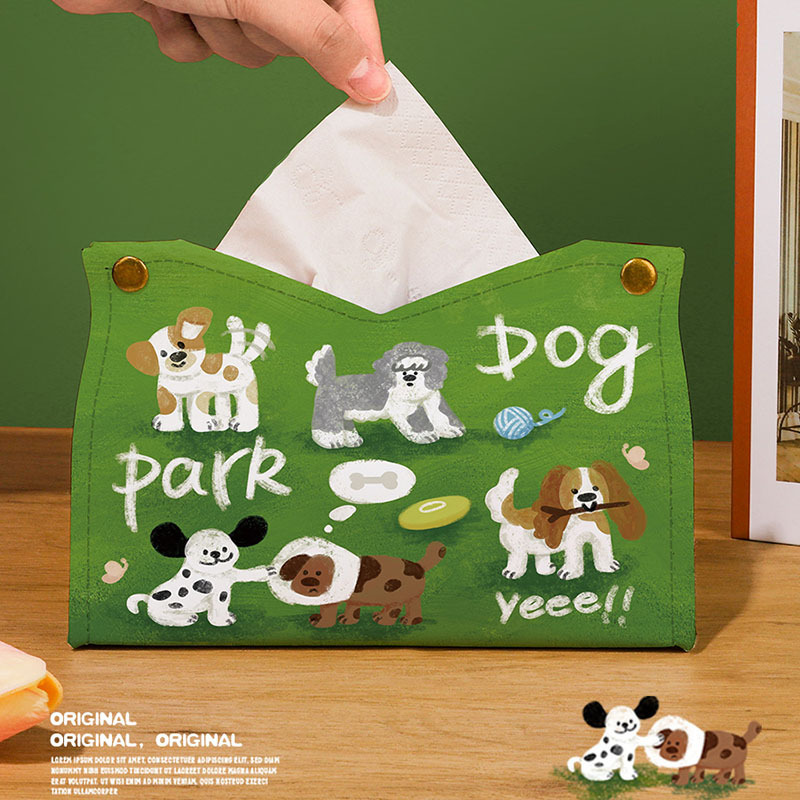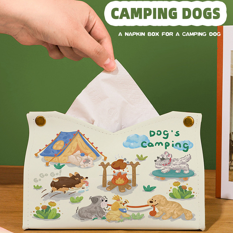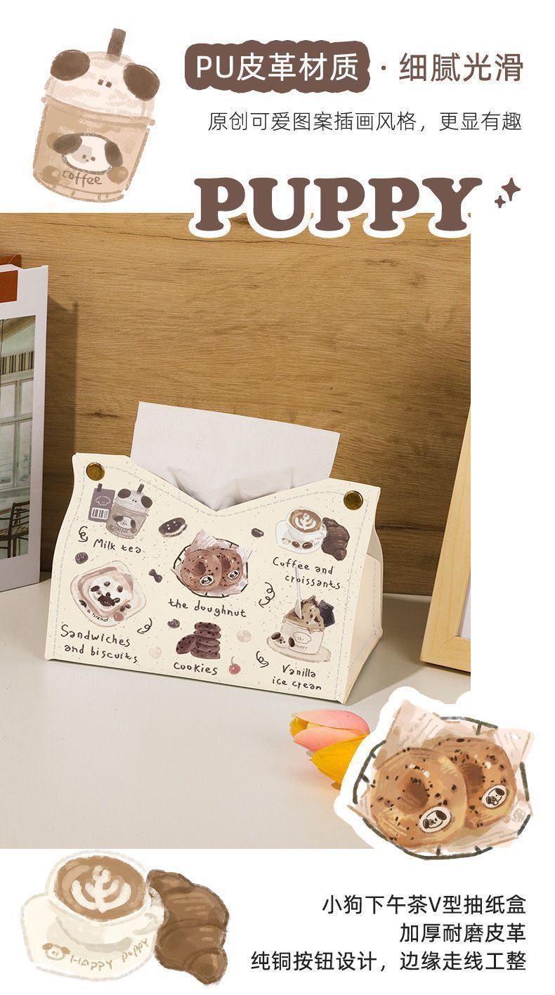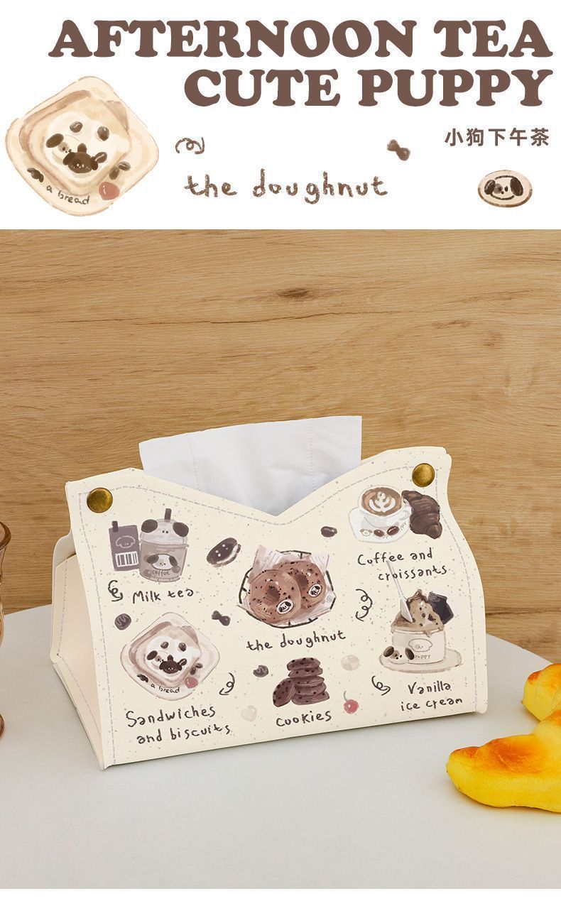 Puppy Afternoon Tea Tissue Box Home Living Room Creative Tissue Box Accessible Luxury Leather High-End Paper Tissue Box Napkin Toilet