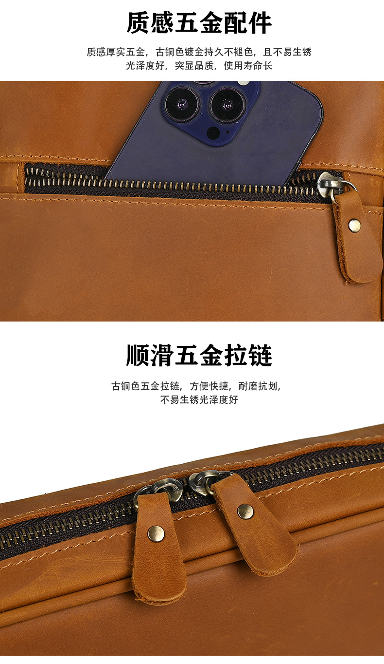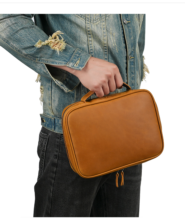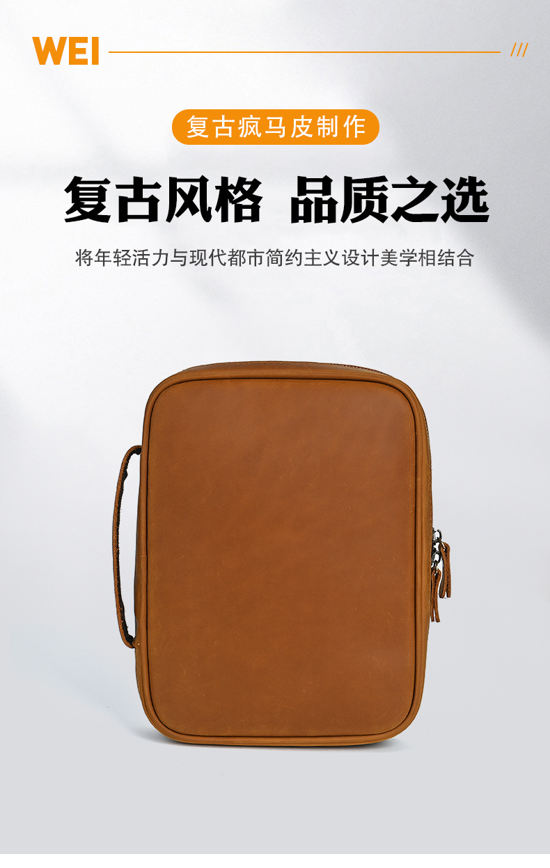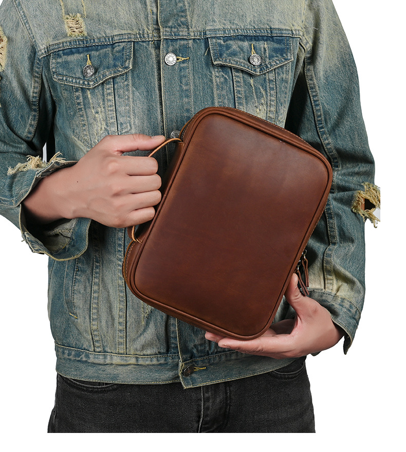 Cross-Border New Crazy Horse Leather Bag Book Storage Bag Retro Japanese Men's Business Travel Large Capacity Handbag for Men