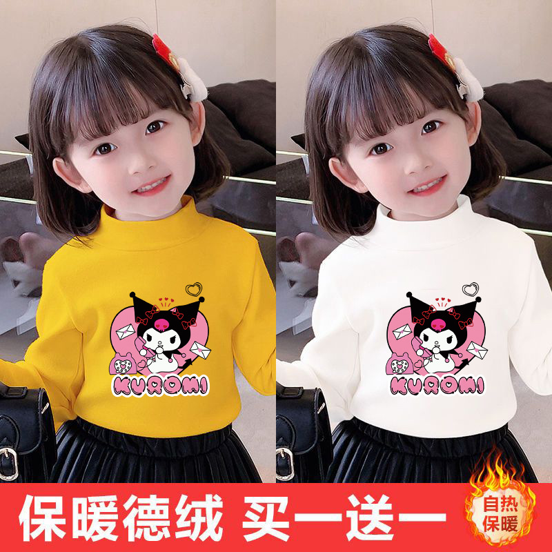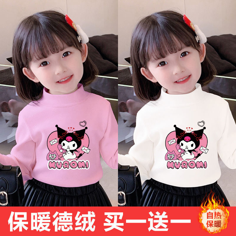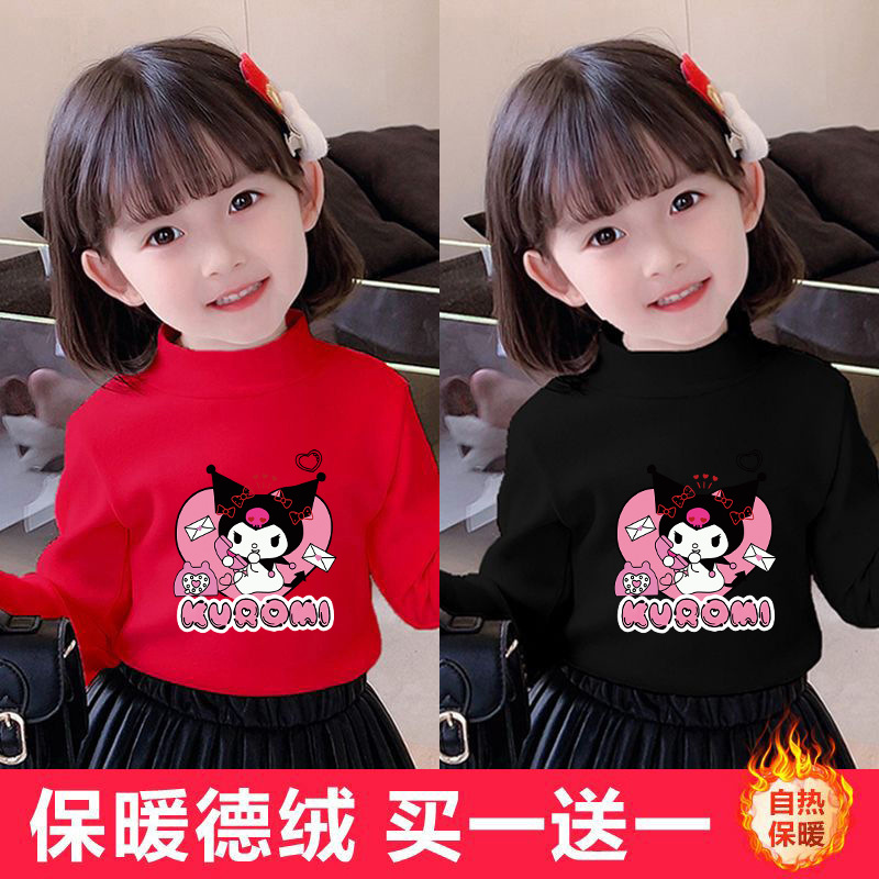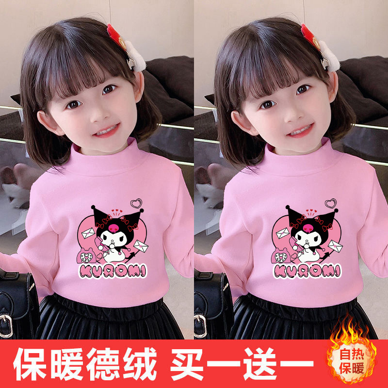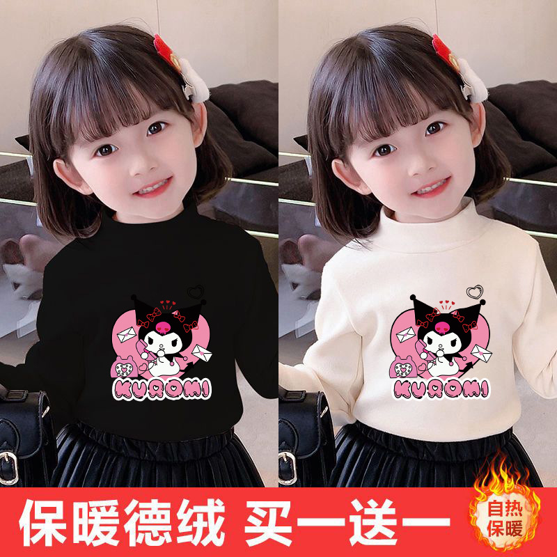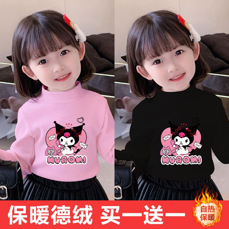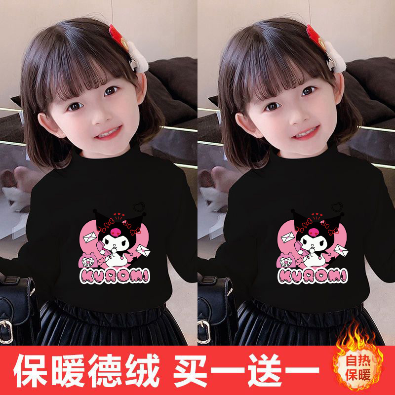 Y2332 # 2025 New Girls' Kuromi Half Turtleneck Velvet Bottoming Shirt Autumn and Winter Big Children's Inner Children's Tops