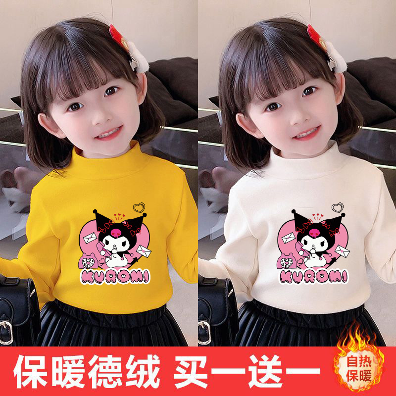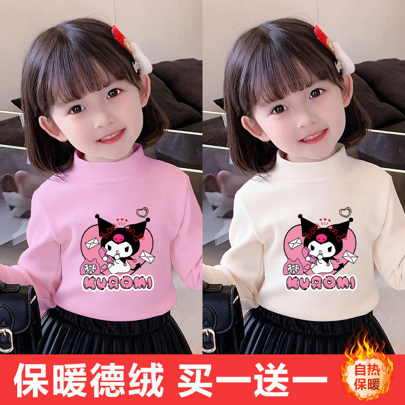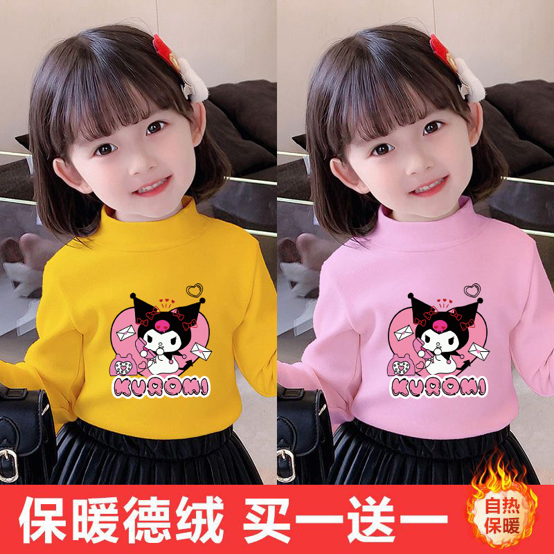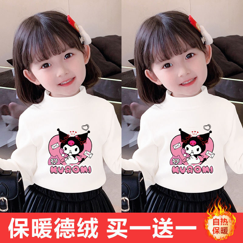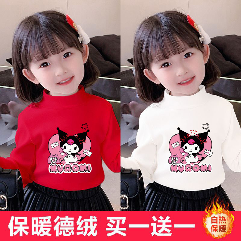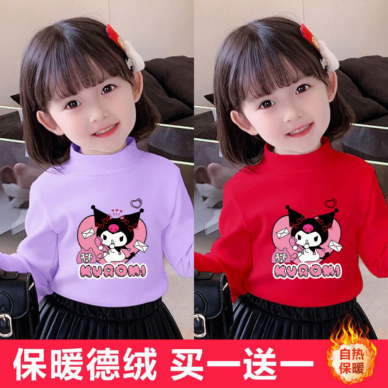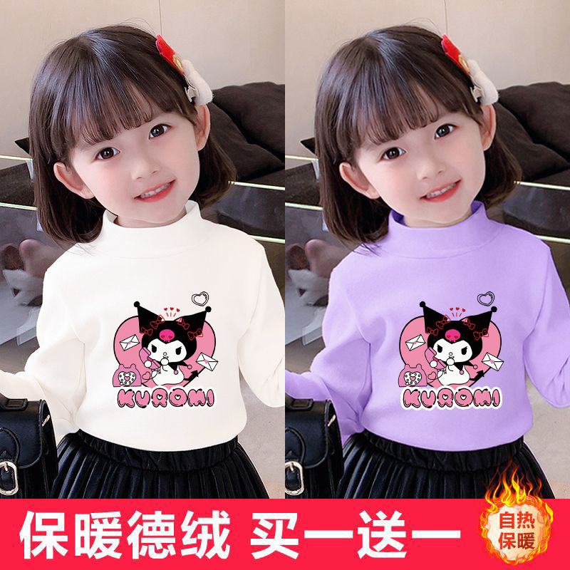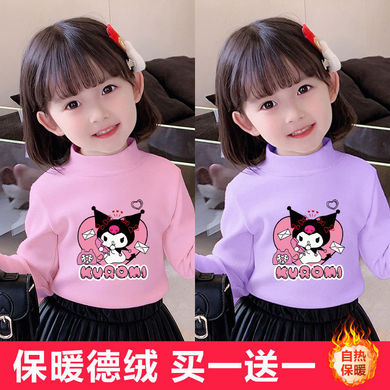 Y2332 # 2025 New Girls' Kuromi Half Turtleneck Velvet Bottoming Shirt Autumn and Winter Big Children's Inner Children's Tops