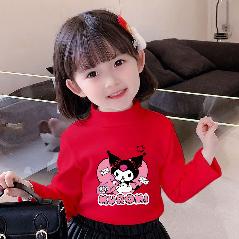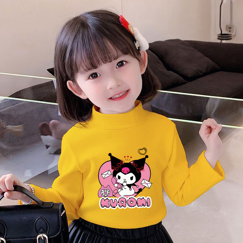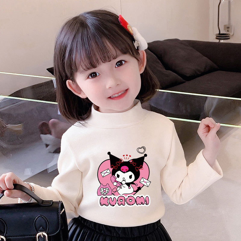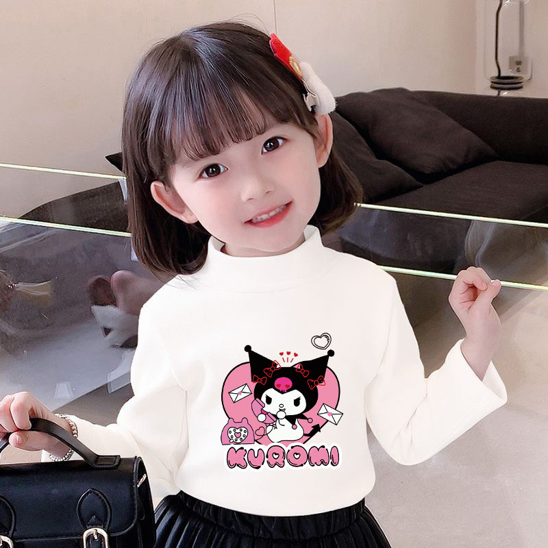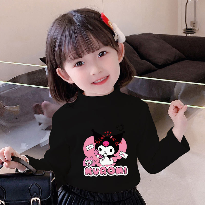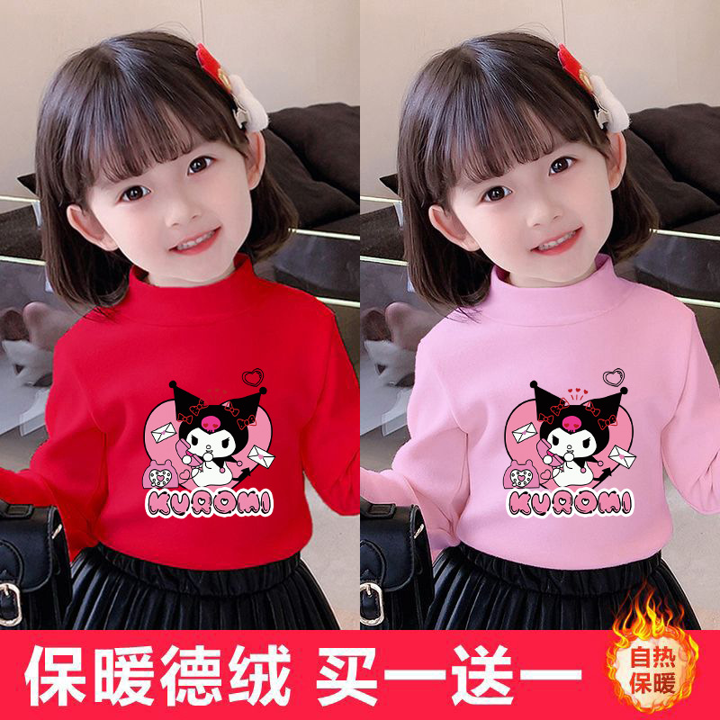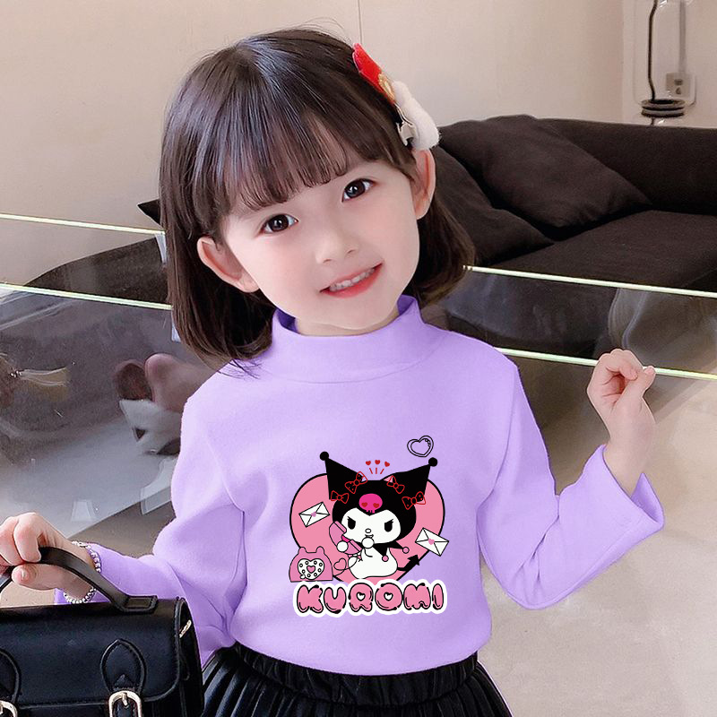 Y2332 # 2025 New Girls' Kuromi Half Turtleneck Velvet Bottoming Shirt Autumn and Winter Big Children's Inner Children's Tops