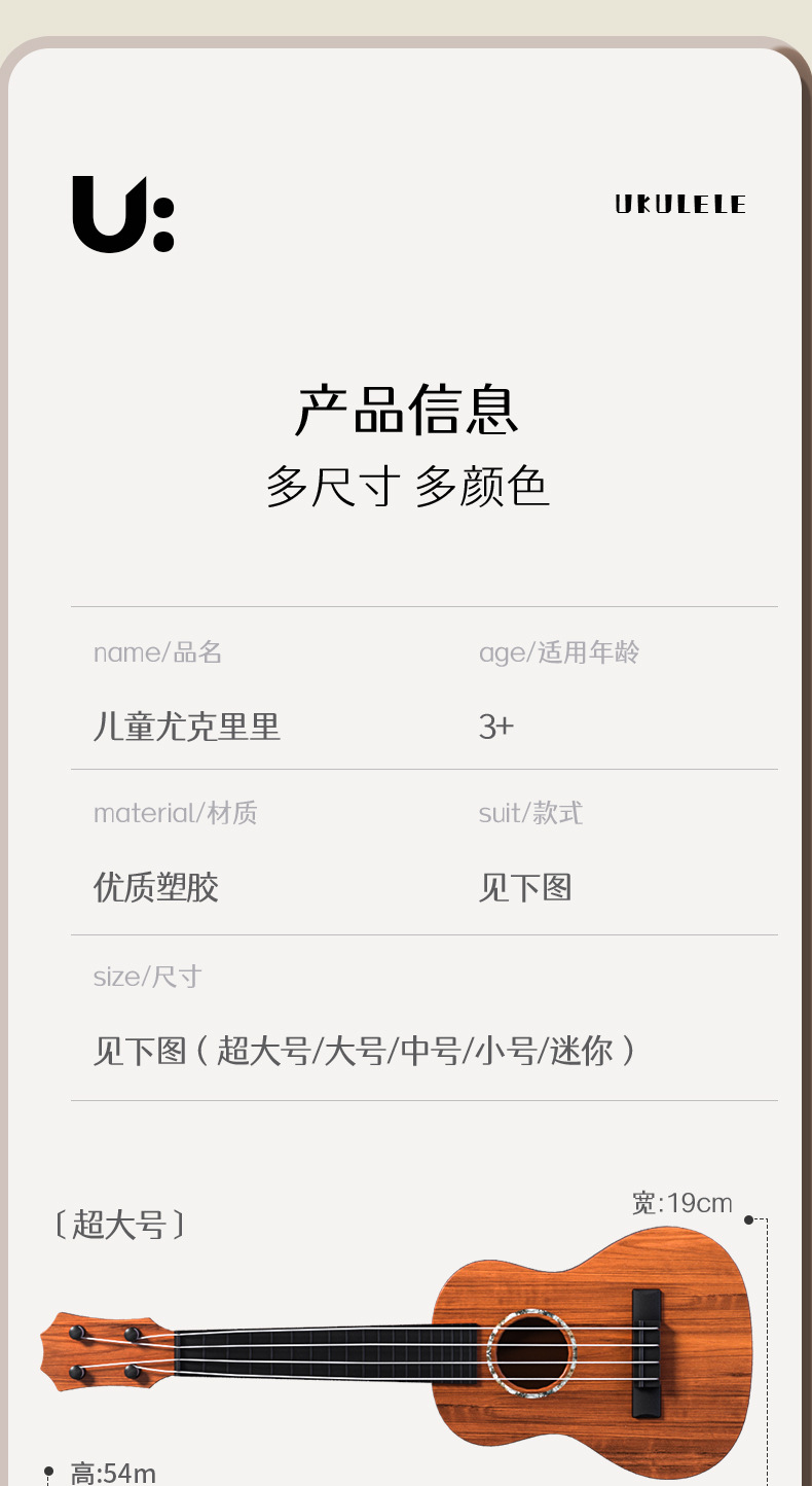 | Color | 38cm [color box] heart-shaped khaki - playable ukulele | Color | 44cm [color box] nezha model b - playable ukulele |