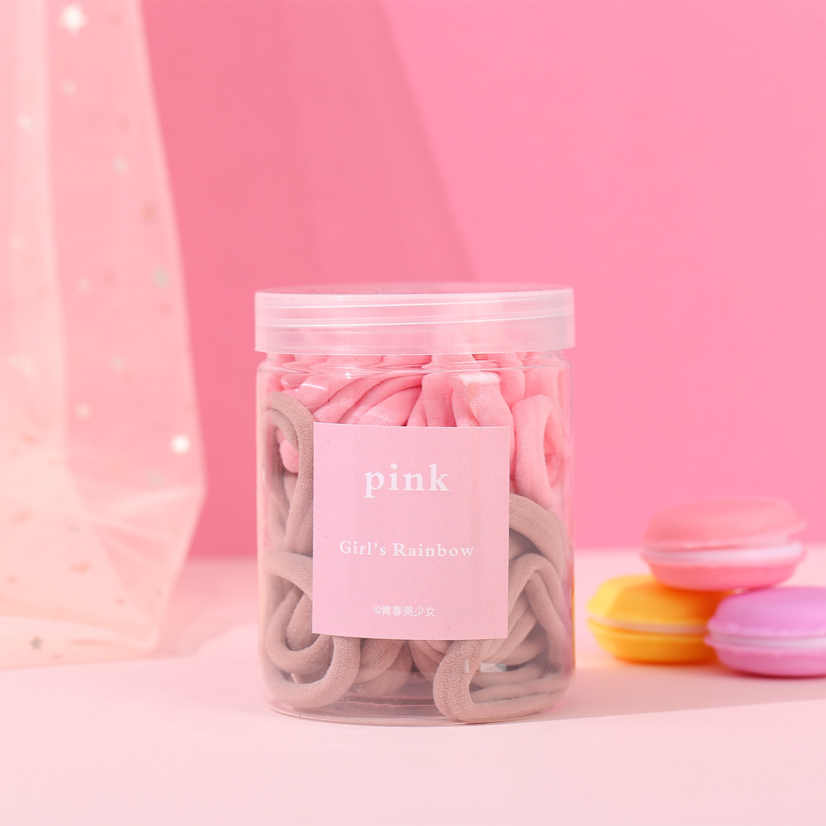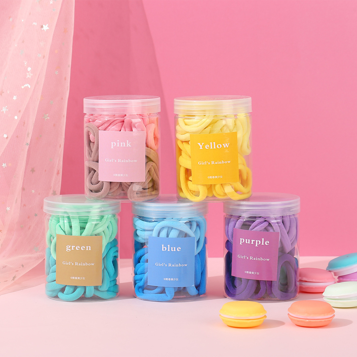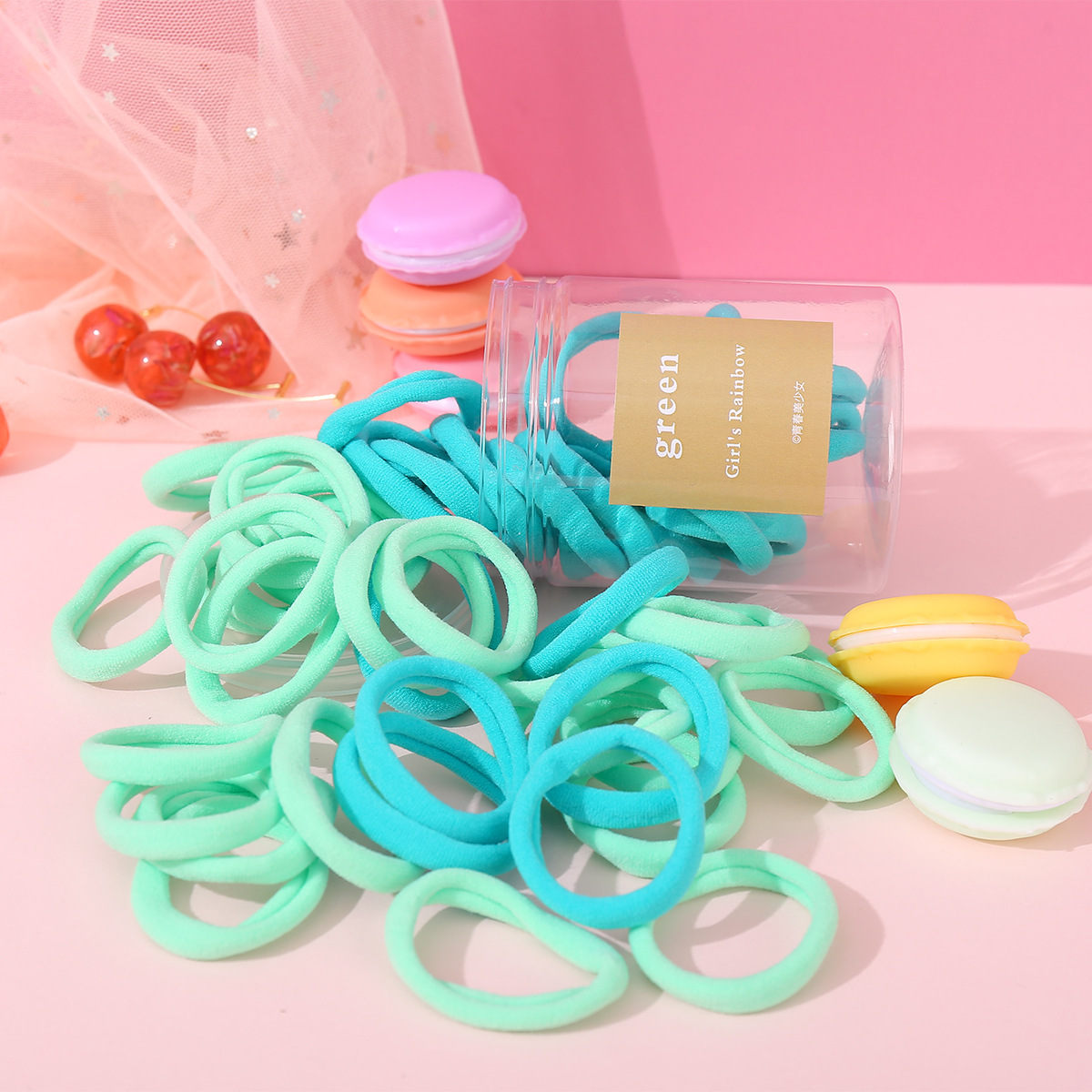 European and American Cross-Border Popular Candy-Colored 50-Piece Canned Hair Ties, Towel Rings, High-Elasticity Hair Ropes, High-End Headwear Wholesale