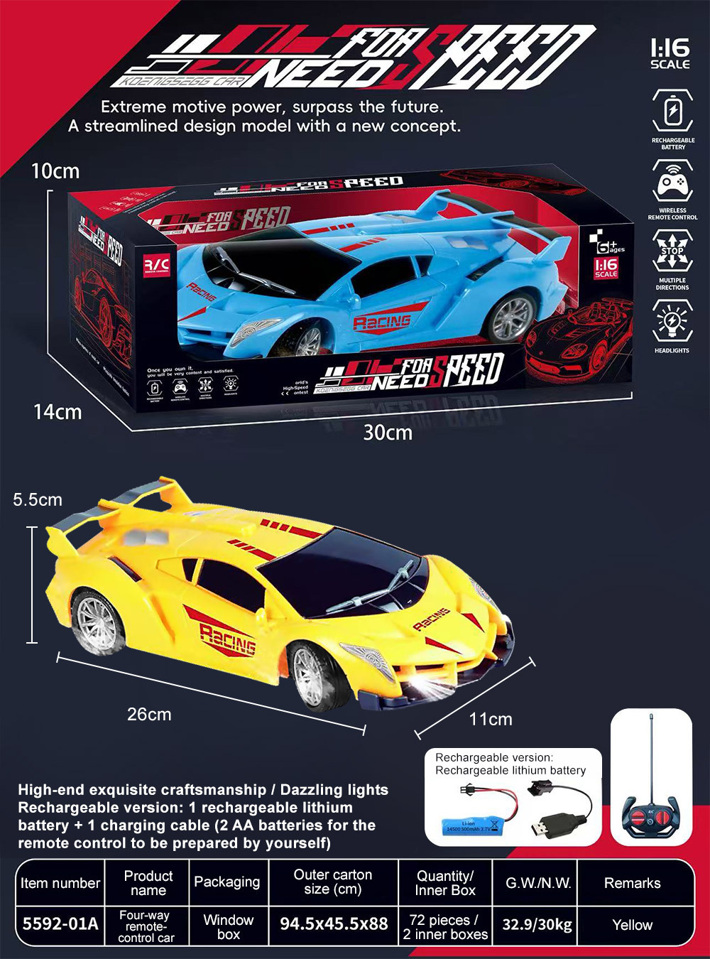 | Color | 5592-01-four-way remote control car-red [battery model] window box | Color | 5592-01 four-way remote control car-yellow [battery model] window box |