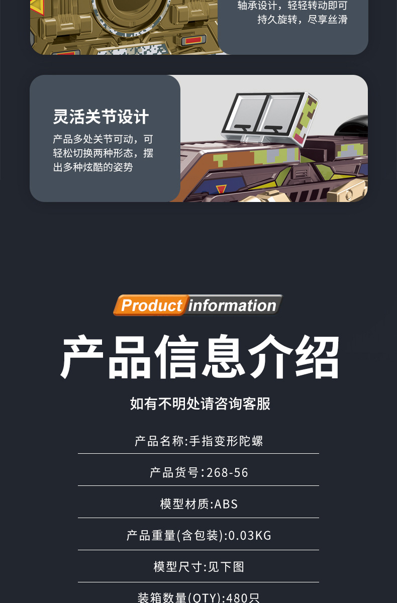 | Color | 268-56 [gold] transforming finger spinner - tank car | Color | 268-51 [gray] transforming robot top |