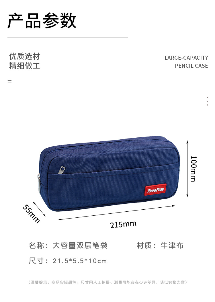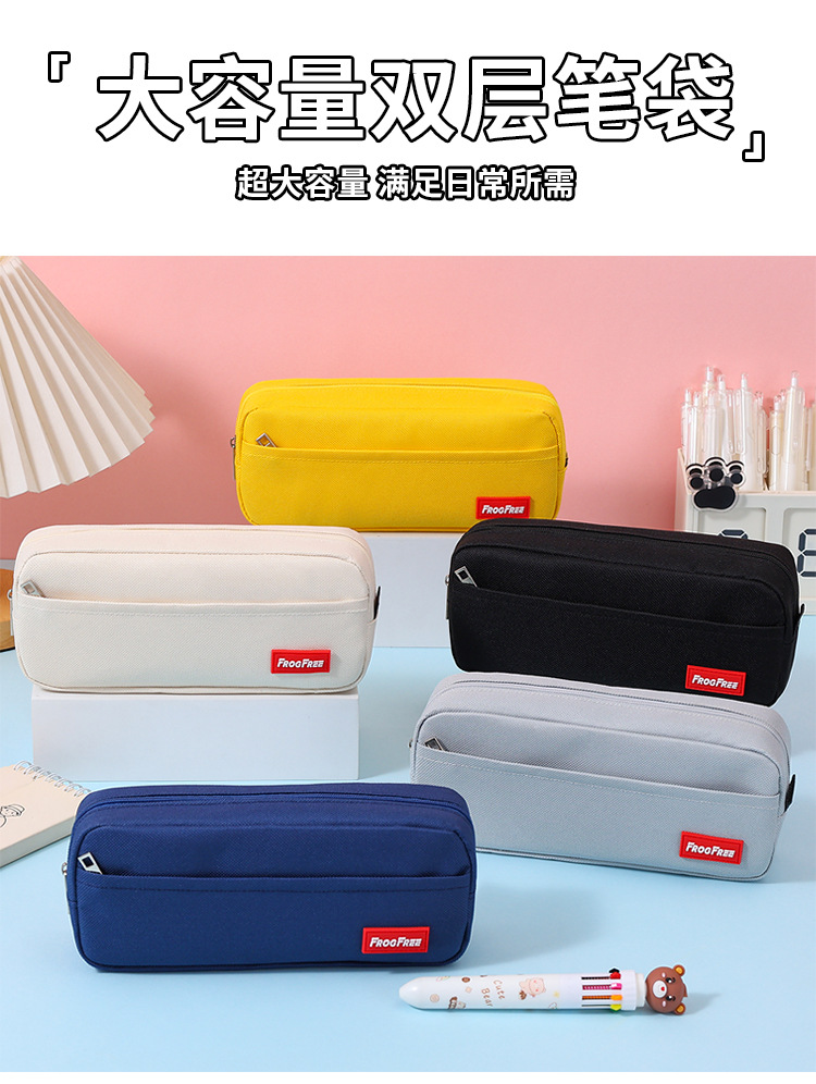 Large-Capacity Pencil Case, Simple and Three-Dimensional, Square-Shaped, Large-Capacity Oxford Cloth Pencil Case for Primary School Students, Wholesale Stationery for Students