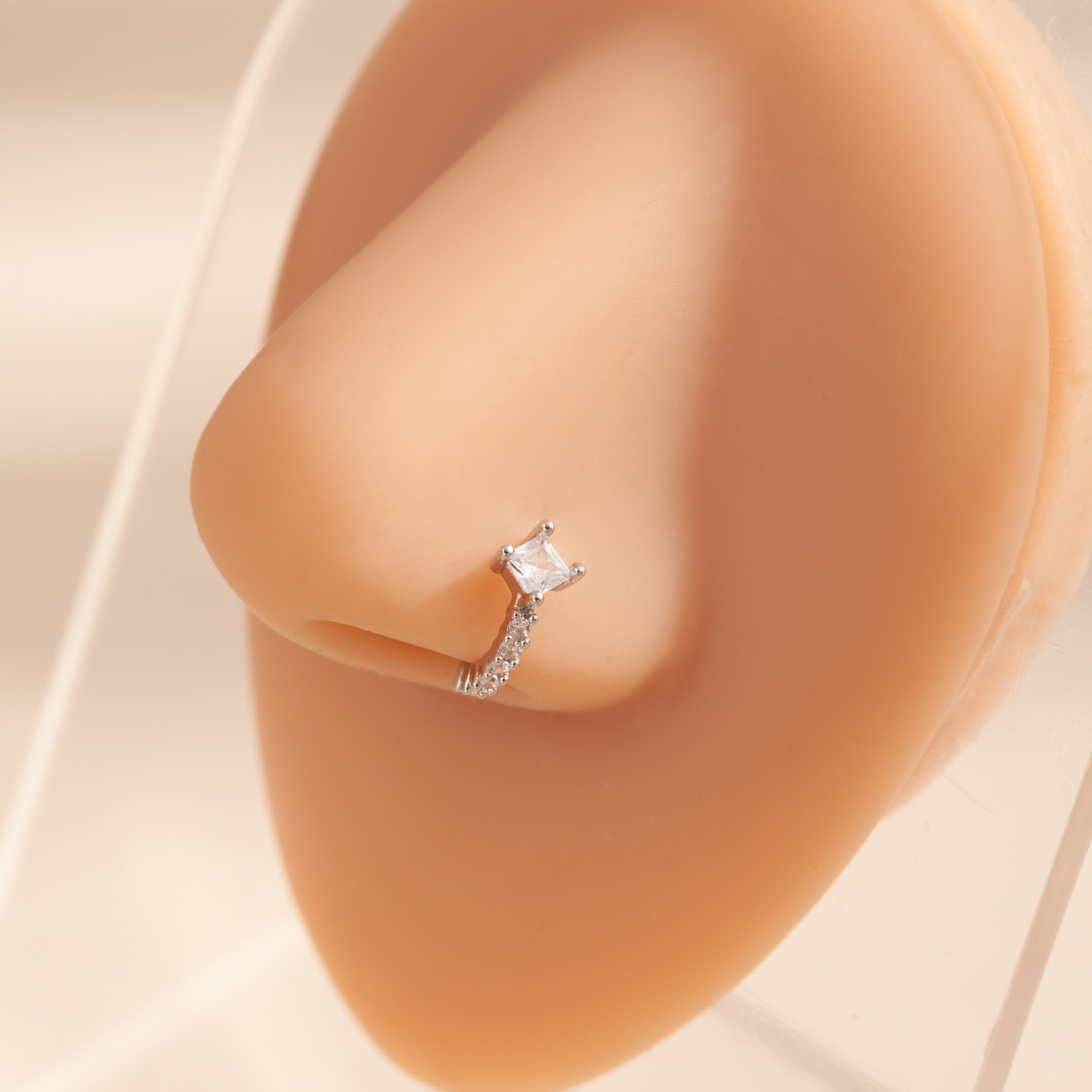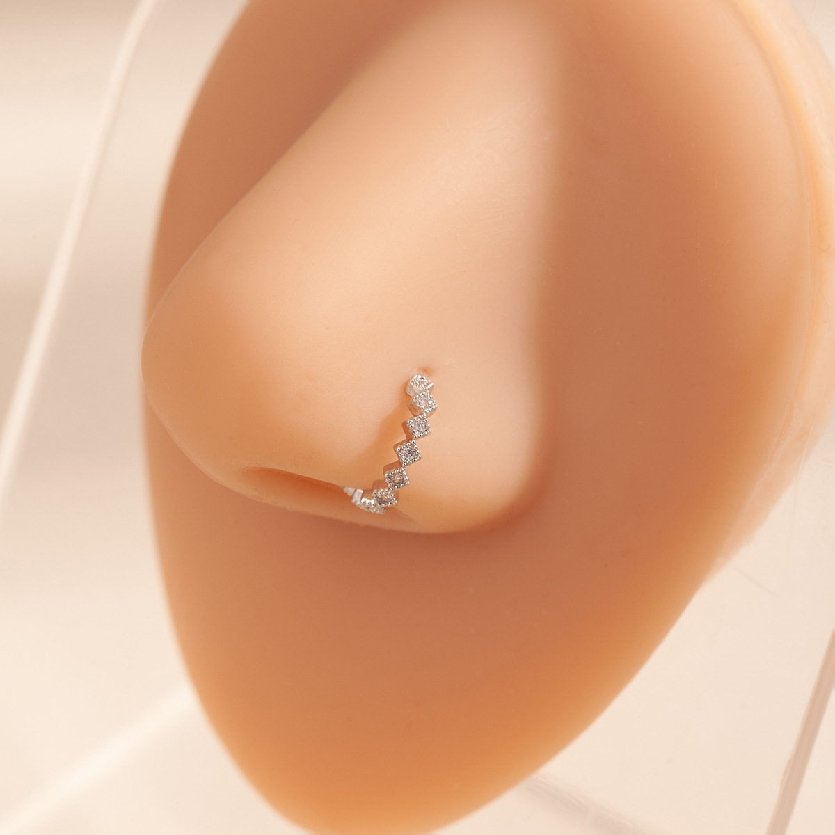 European and American Style Geometric Rhombus Rhinestone Nose Stud Cross-Border New Fashion Metal Square Trendy Versatile Nose Stud for Women