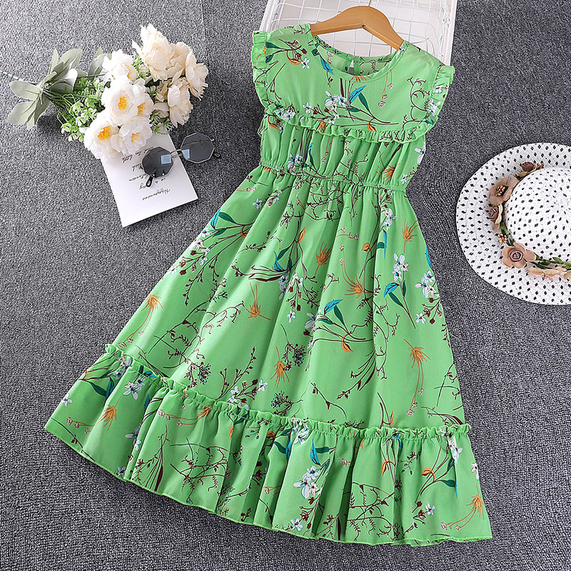 Popular Girls' Dresses Cross-Border Children's Clothing 2025 Summer New Children's Printed Sleeveless Princess Skirts Wholesale