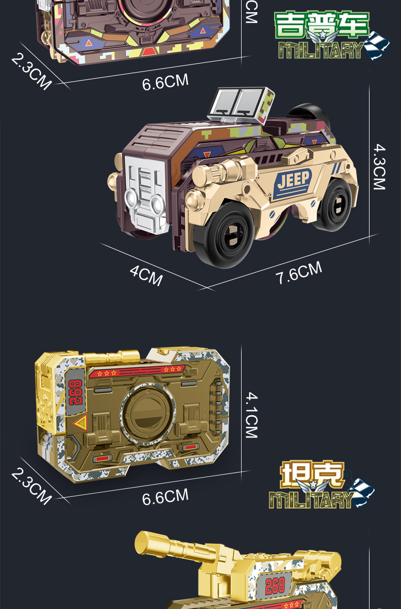 | Color | 268-56 [purple] transformed finger gyro-jeep | Color | 268-56 [golden] transformed finger gyro-tank vehicle |