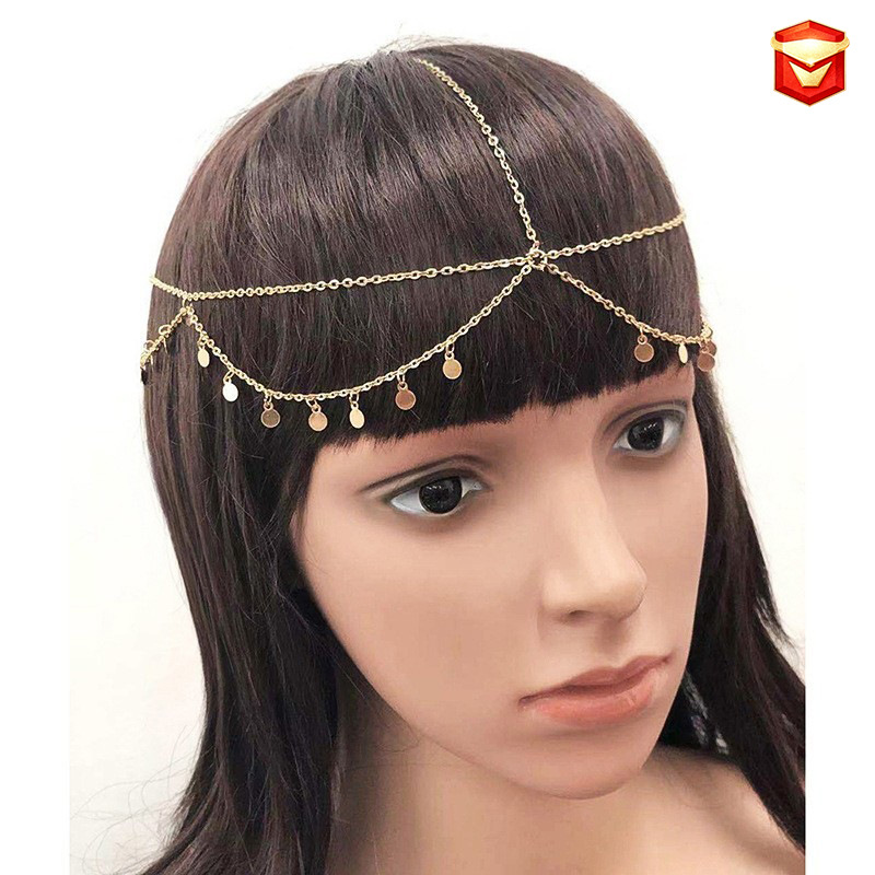 European and American Cross-Border Jewelry Fashion Disc Tassel Exotic Elegant Headwear Chain Bohemian Multi-Layer Hair Accessories Chain