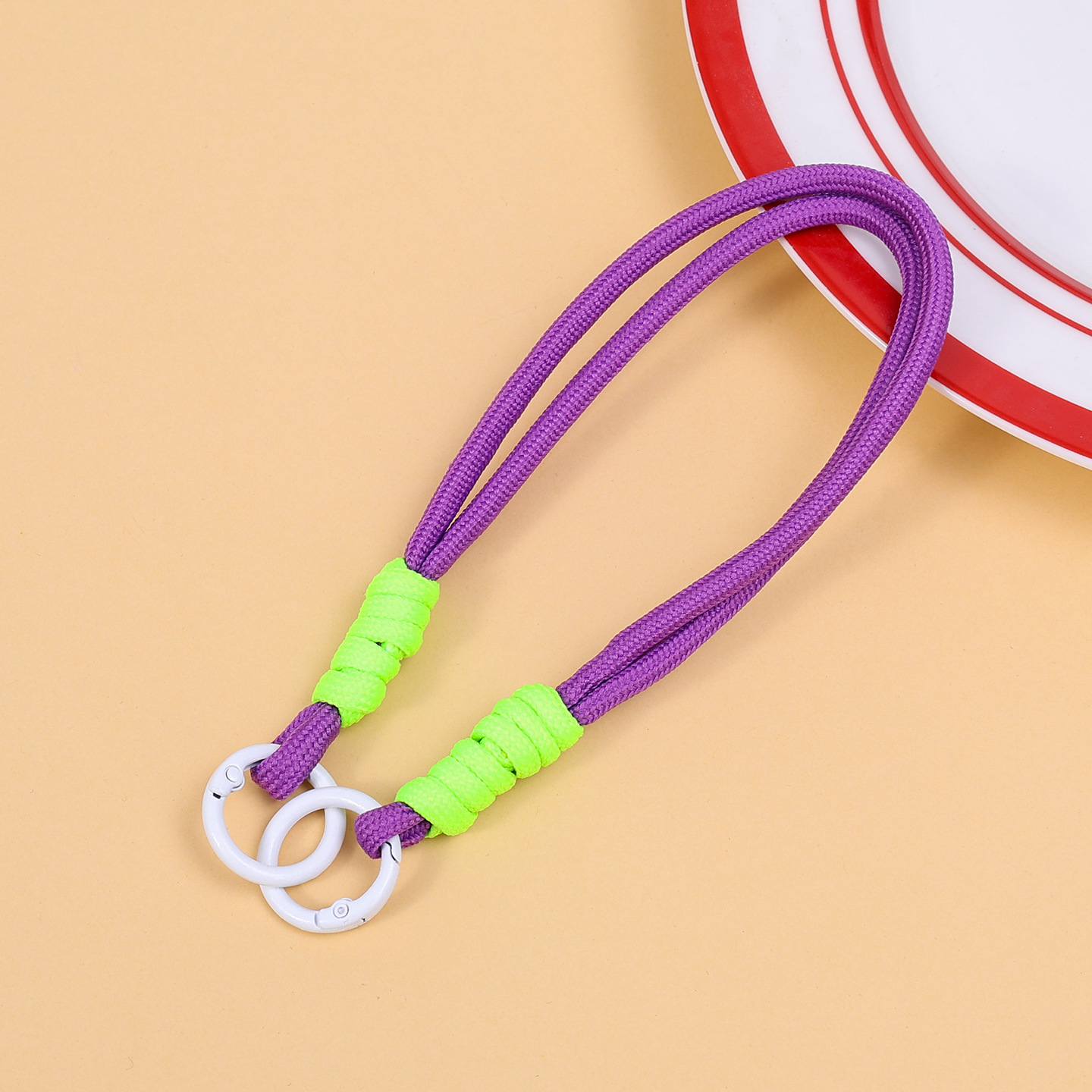 | Color | Double circle bracelet—purple and green | Specifications | Spring buckle+d buckle+woven mark |