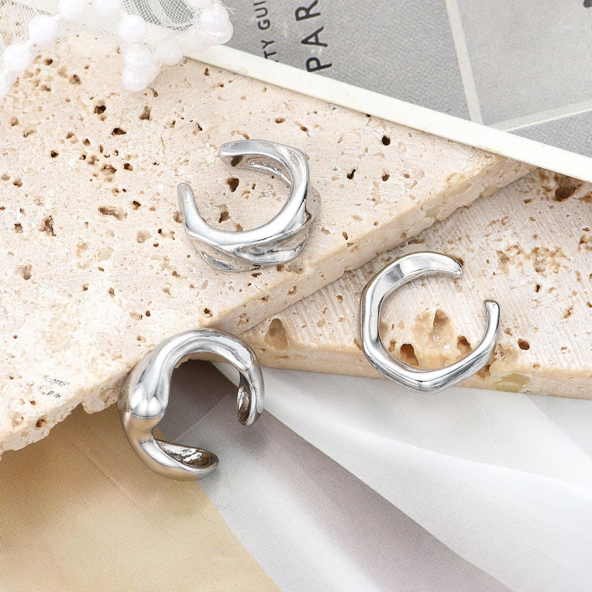 Cross-Border New Style Simple Irregular Line Ear Clip Set Three-Piece Set Fashionable and Versatile Niche Design Earrings Wholesale