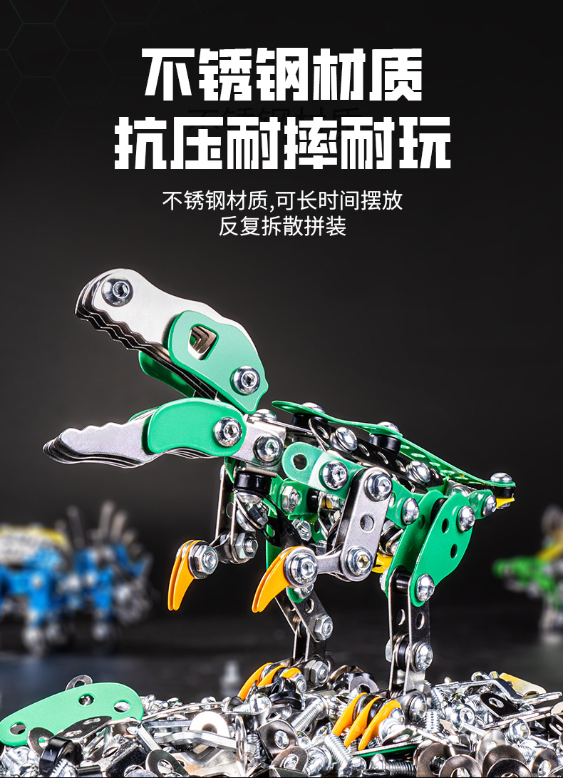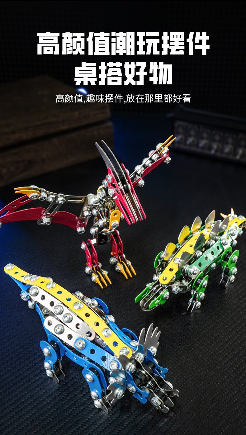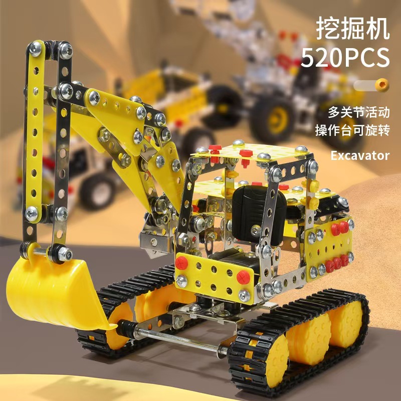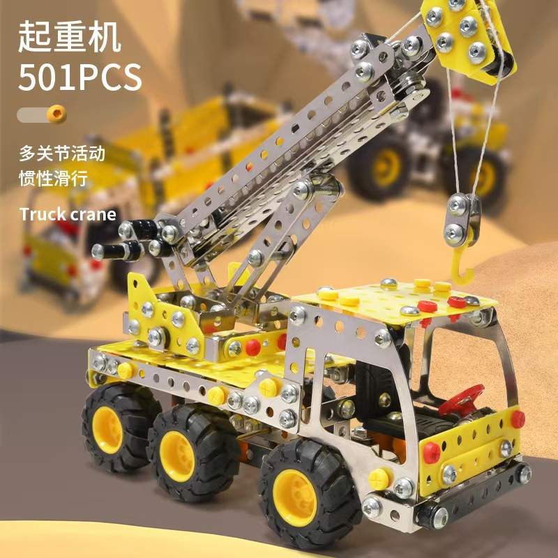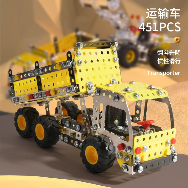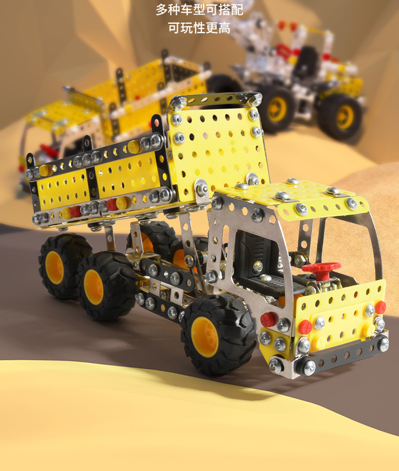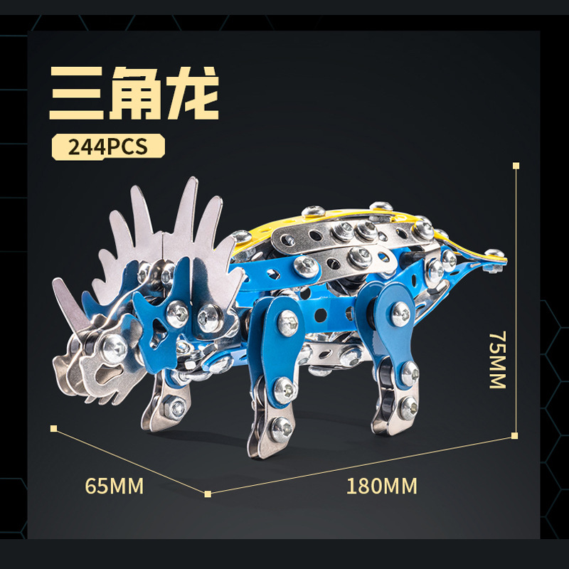Cross-Border 3D Metal Assembled Engineering Vehicle Model Boy Dinosaur Toy DIY Desktop Ornament Nut Assembly Gift