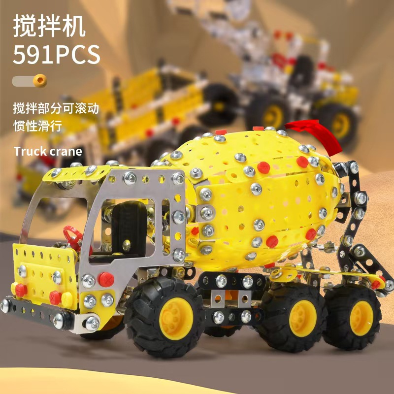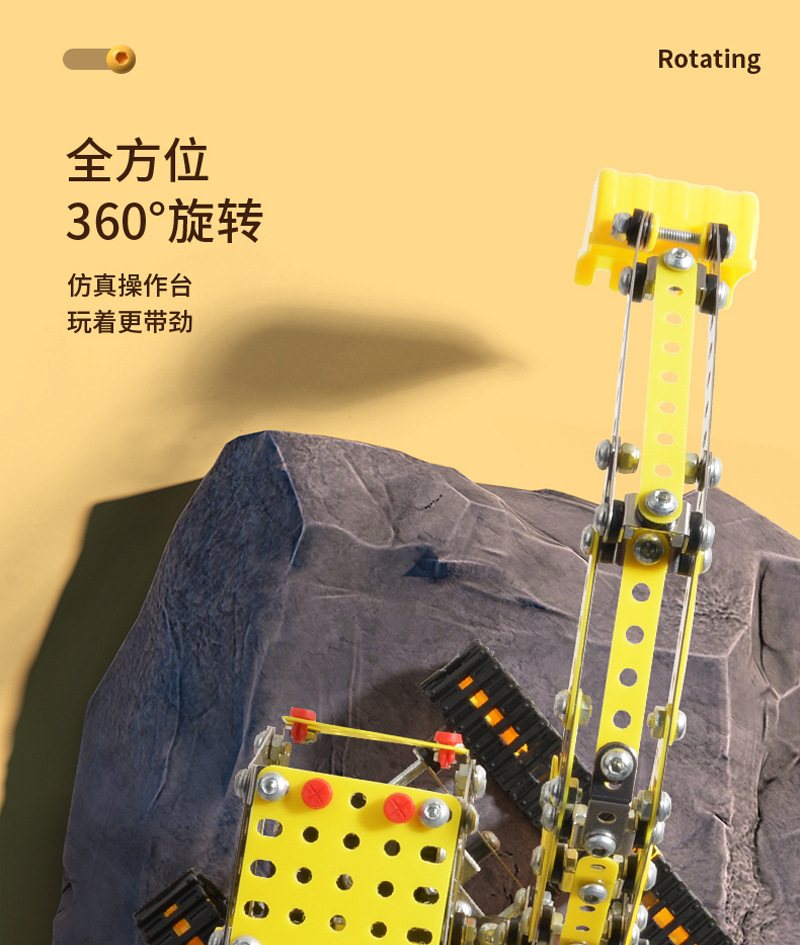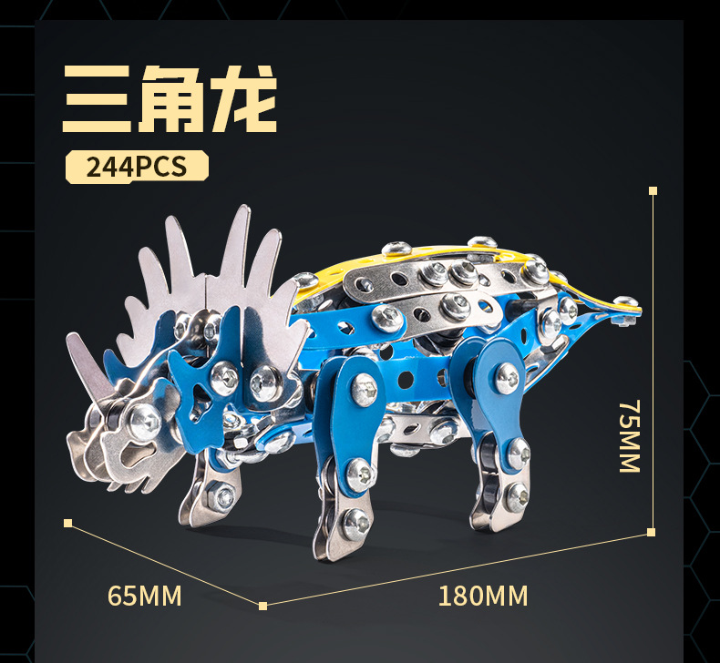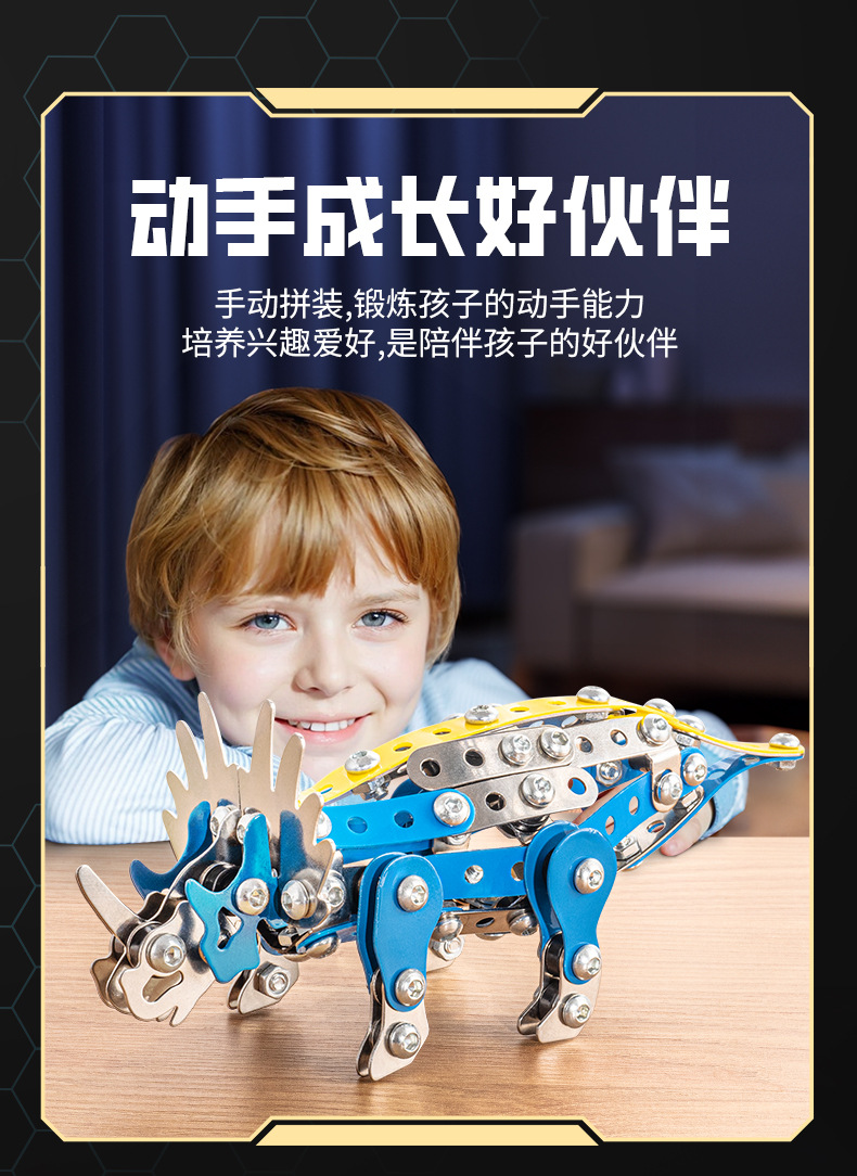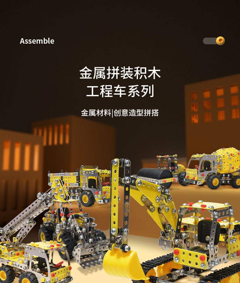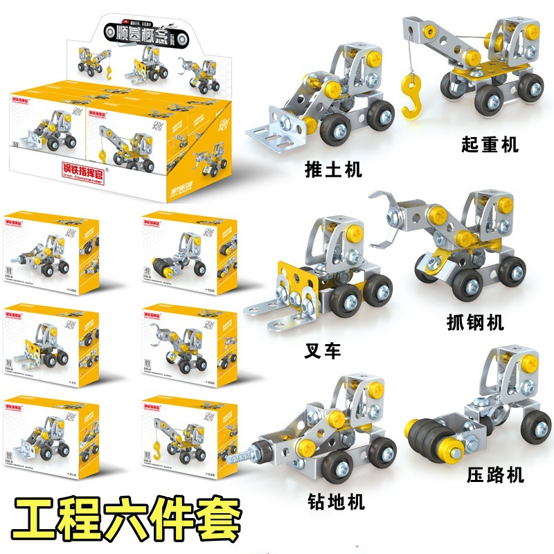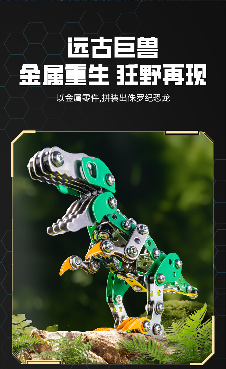 Cross-Border 3D Metal Assembled Engineering Vehicle Model Boy Dinosaur Toy DIY Desktop Ornament Nut Assembly Gift
