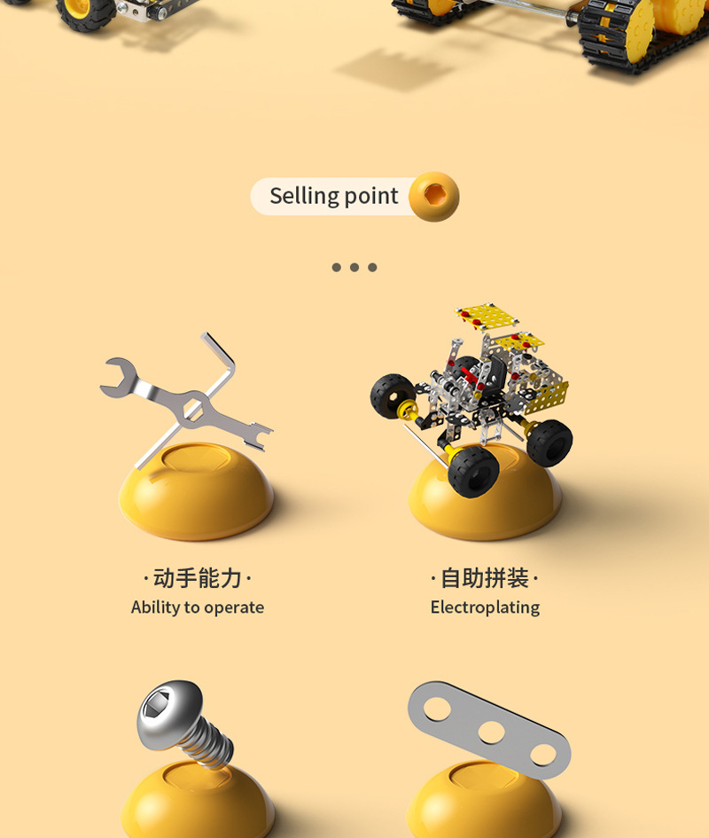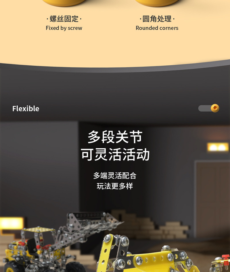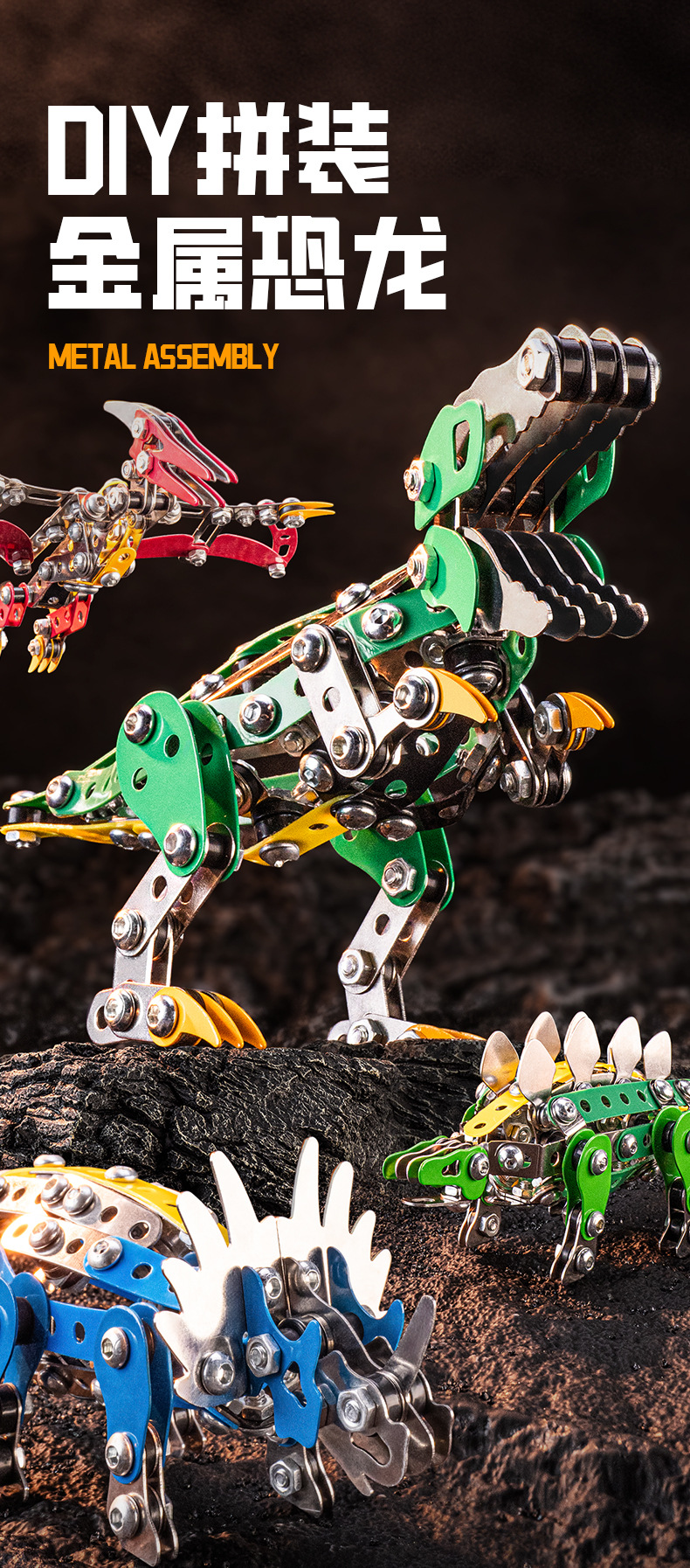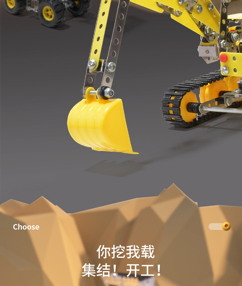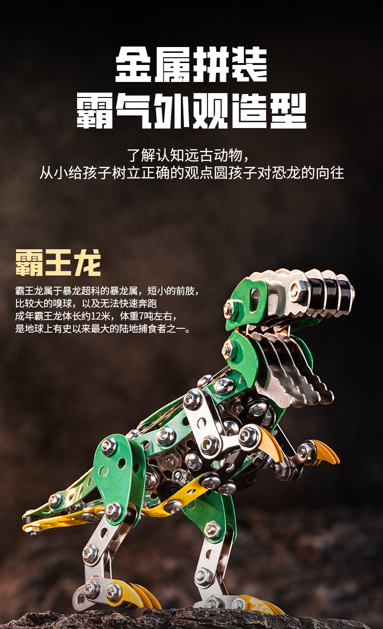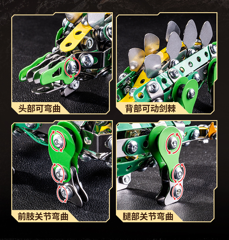 Cross-Border 3D Metal Assembled Engineering Vehicle Model Boy Dinosaur Toy DIY Desktop Ornament Nut Assembly Gift