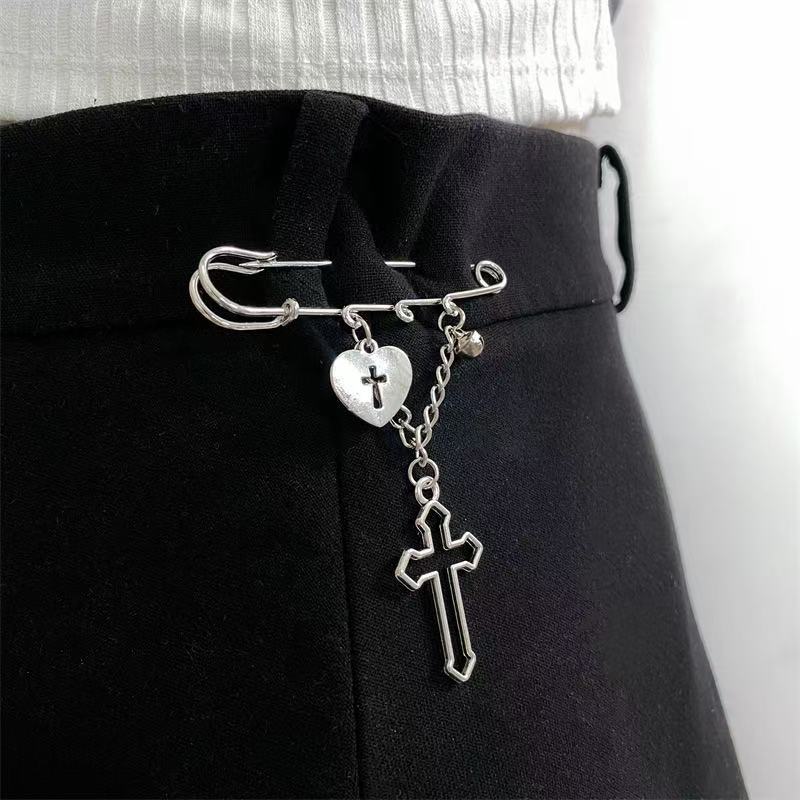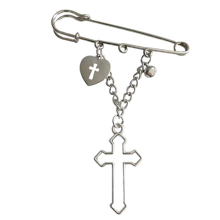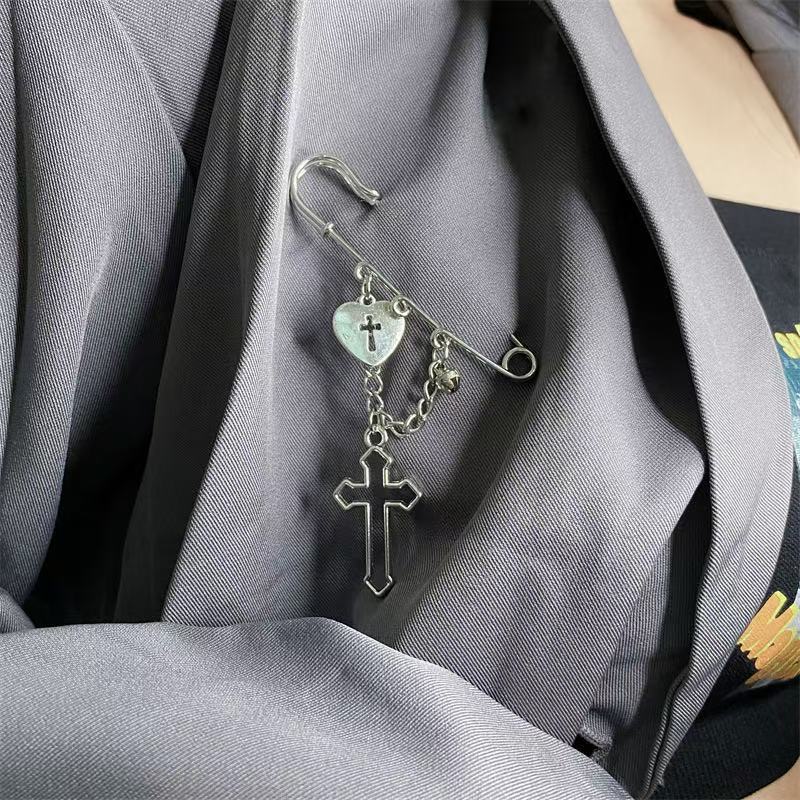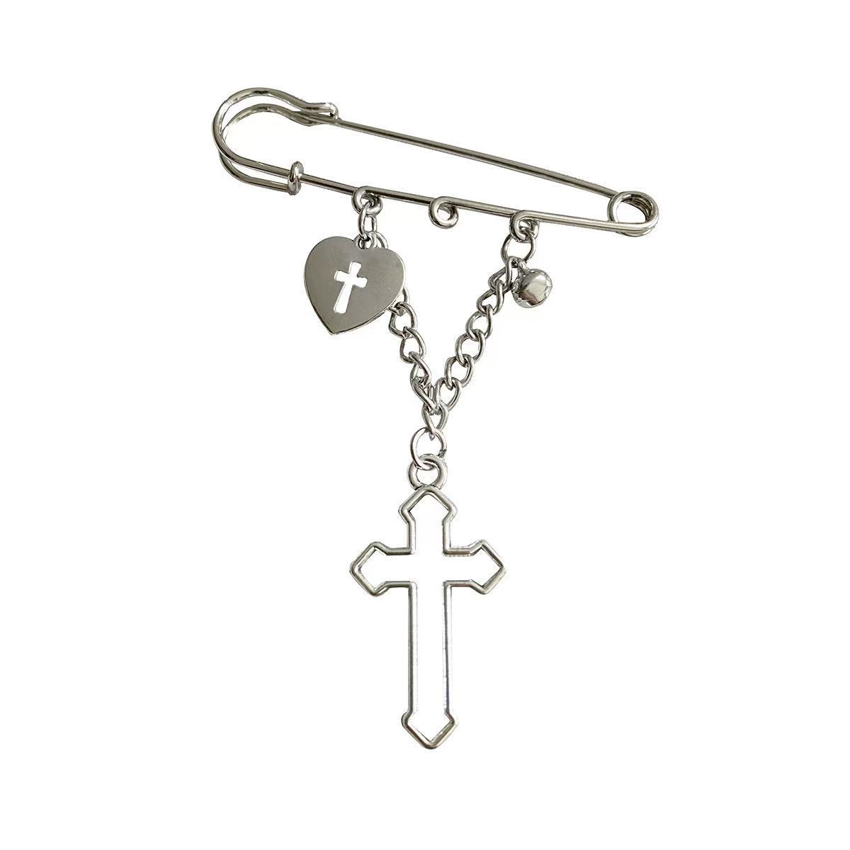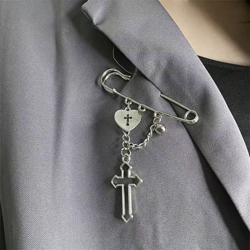 Cross-Border New Chain Love Cross Pendant Hip-Hop Pin Versatile Suit Decorative Brooch Jeans Pin