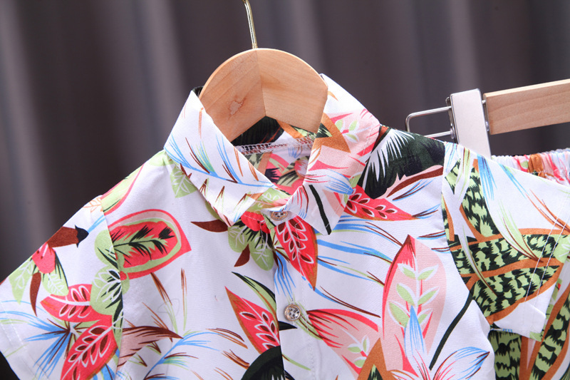 Children's Floral Shirt Suit 0-4 Years Old Boy's All-Printed Short-Sleeved T-Shirt Two-Piece Set Southeast Asian Style Children's Clothing Wholesale
