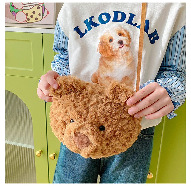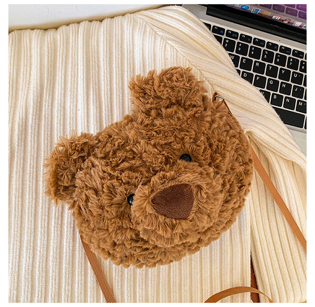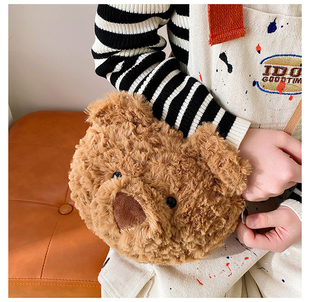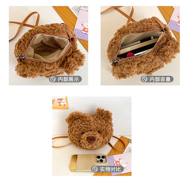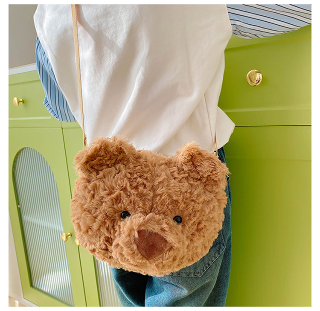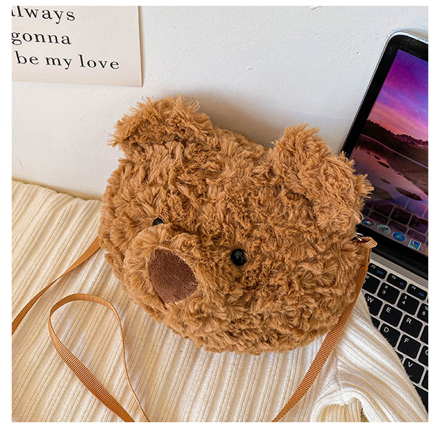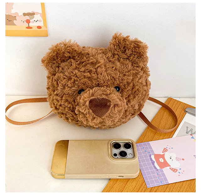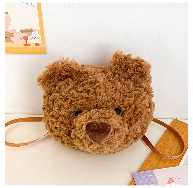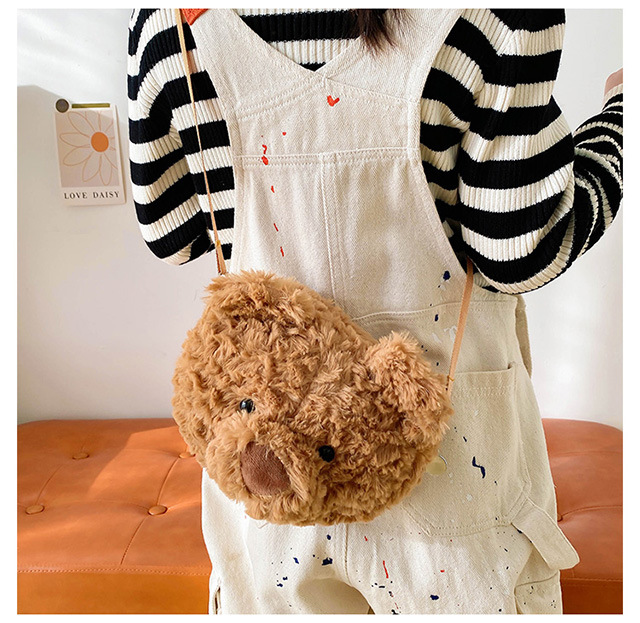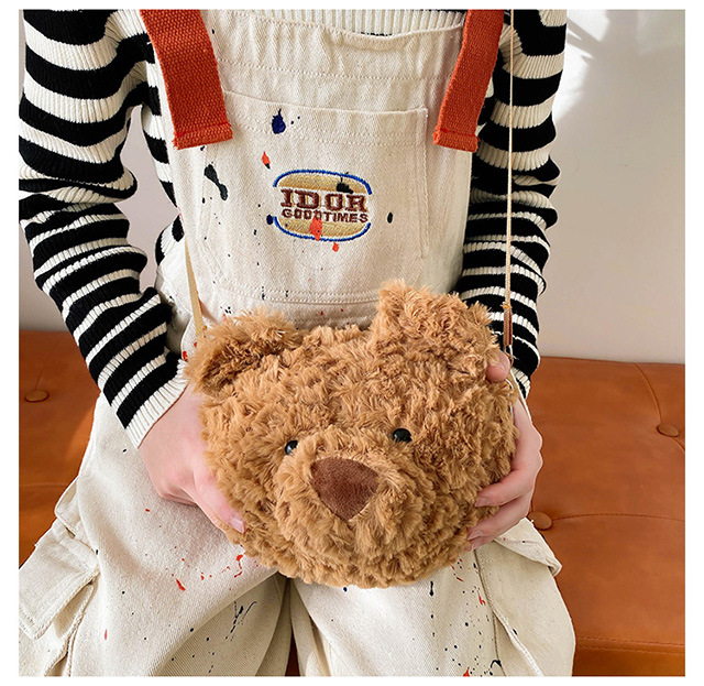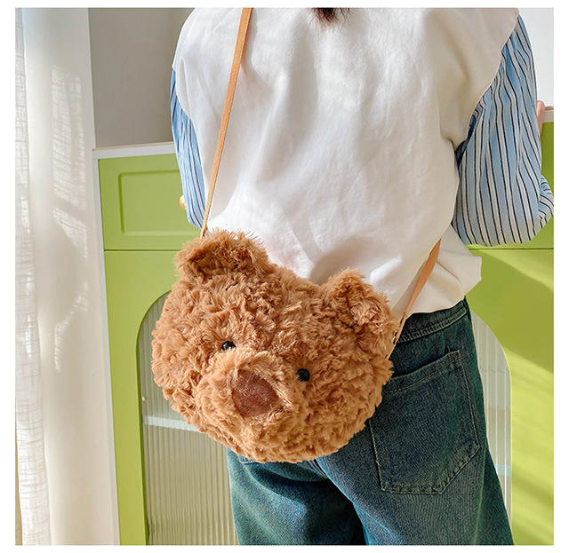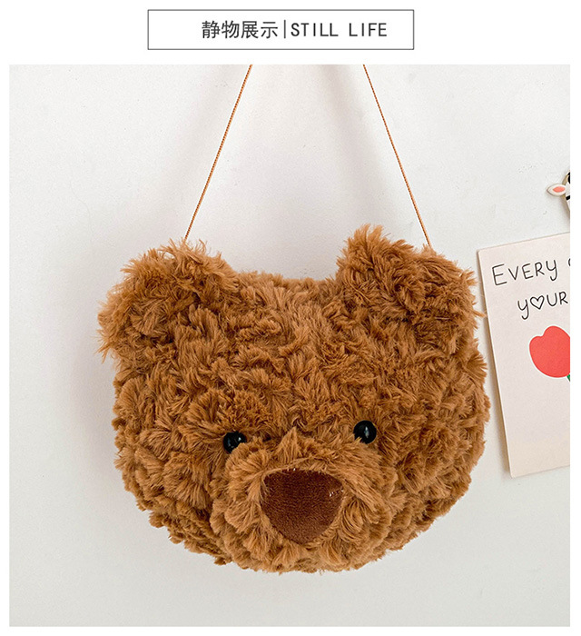 2025 Little Bear Bag Cute Cartoon Plush Doll Bear Head Bag Doll Backpack Women's Crossbody Bag Factory Direct Sales