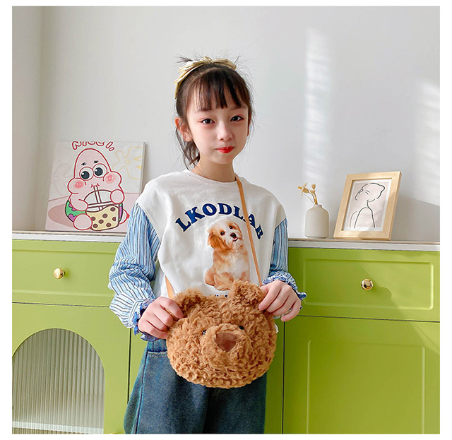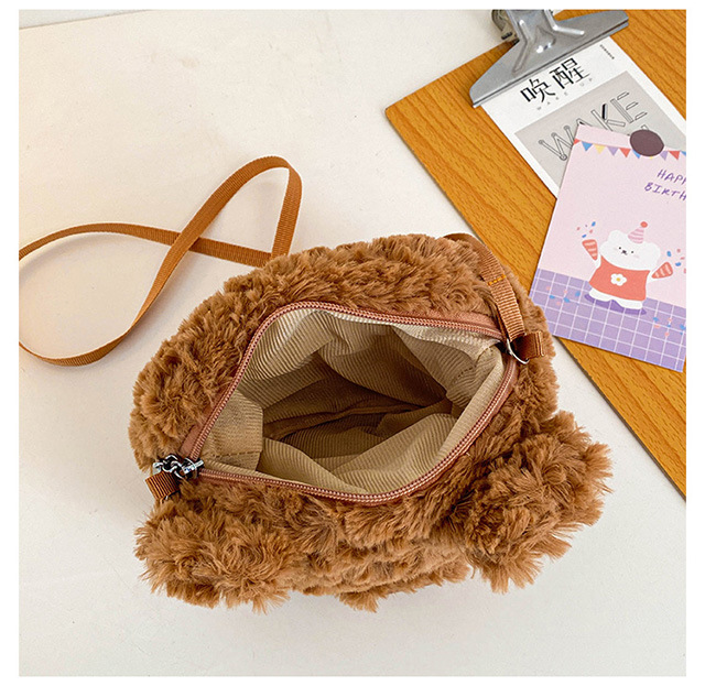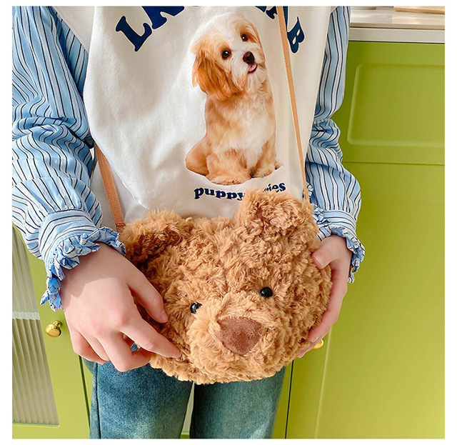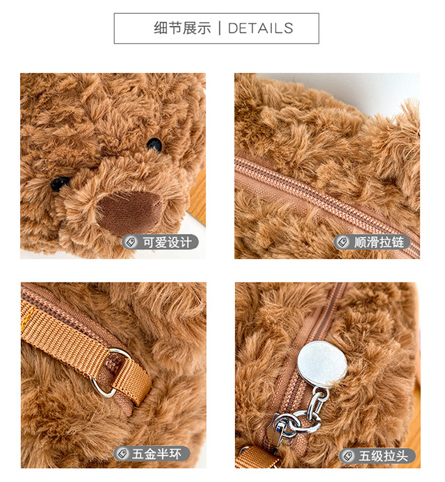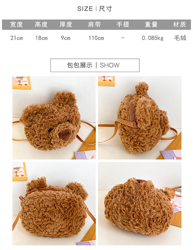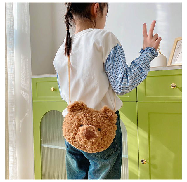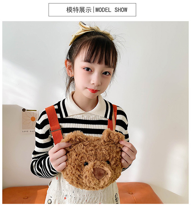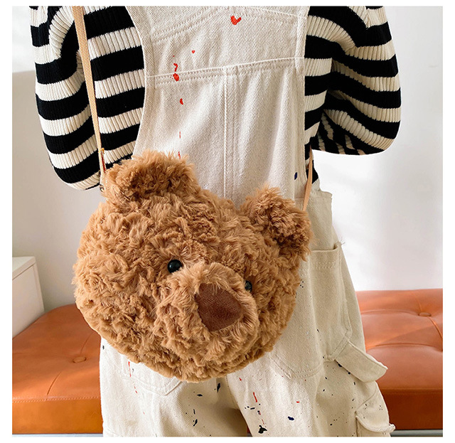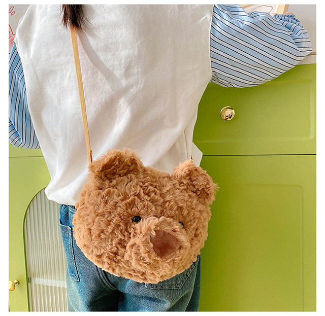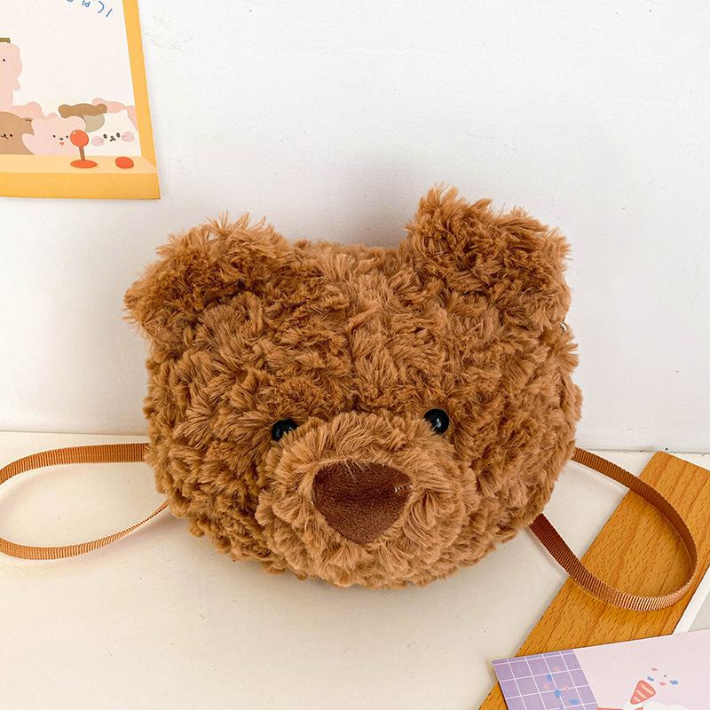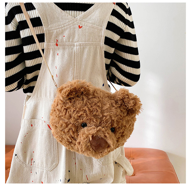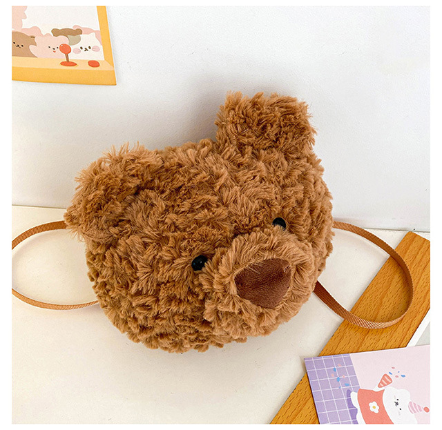 2025 Little Bear Bag Cute Cartoon Plush Doll Bear Head Bag Doll Backpack Women's Crossbody Bag Factory Direct Sales