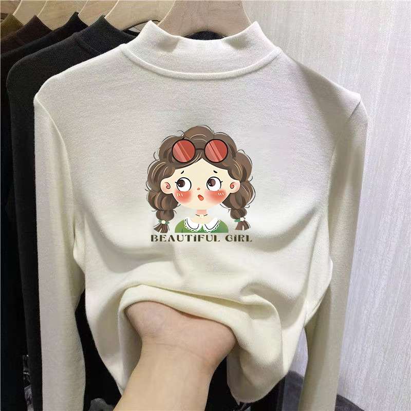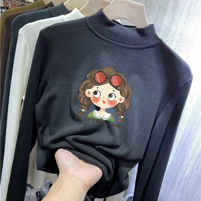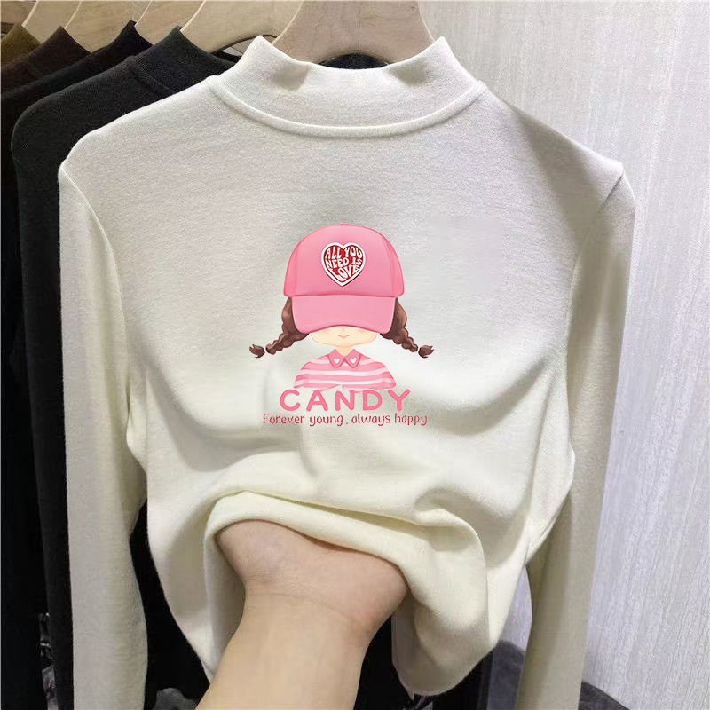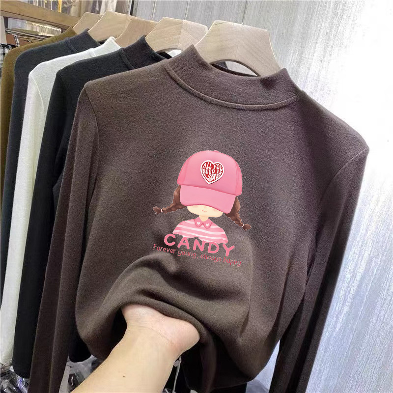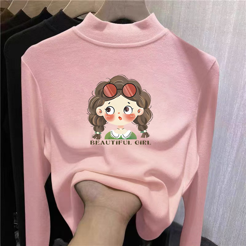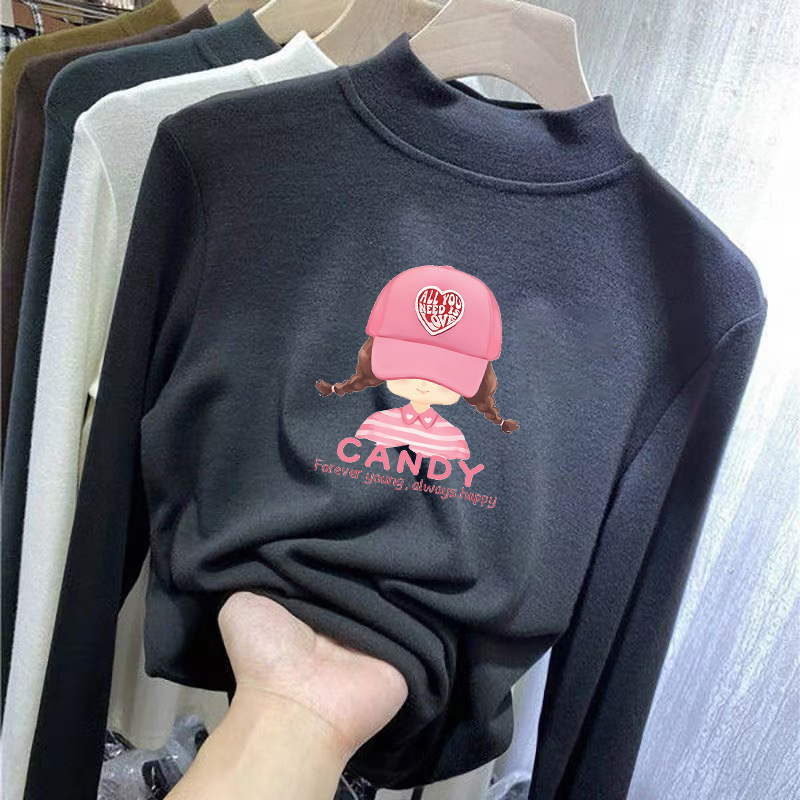 Girls' Thermal Long-Sleeve Base Shirt, New Autumn and Winter Children's Half-High Collar Top, Thickened and Warm Inner Layer, Stylish T-Shirt
